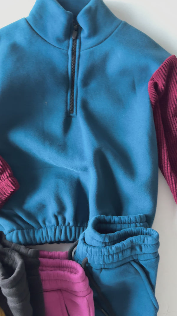 تضمن مجموعة البدلة الرياضية ذات الجيب المخملي للأطفال أن يكون طفلك مرتاحًا وأنيقًا في جميع الأوقات. بفضل قماشها المخملي الناعم وتصميمها العصري، ستكون هذه البدلة الرياضية قطعة لا غنى عنها في خزانة ملابس طفلك. أضفه إلى عربة التسوق الخاصة بك الآن وامنح طفلك الأناقة والراحة معًا!
