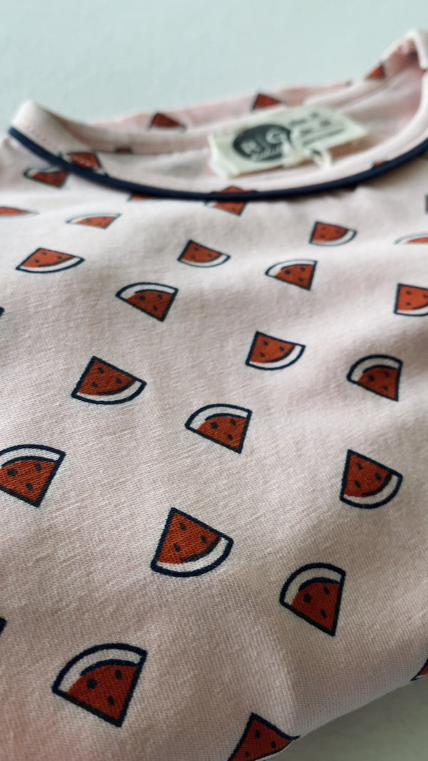 - طبعة البطيخ الموجودة أعلى وأسفل طقم البيجامة تجذب انتباه طفلك وتمنحه مظهرًا ممتعًا.