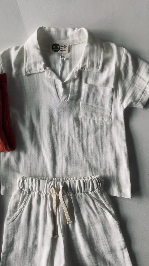 يعد هذا الطقم المكون من تي شيرت وشورت موسلين 100% خيارًا مثاليًا لإضافة الراحة والأناقة إلى خزانة ملابس طفلك. بفضل نسيج الموسلين الطبيعي المسامي، فهو يحافظ على طفلك منتعشًا ومرتاحًا في أشهر الصيف.
