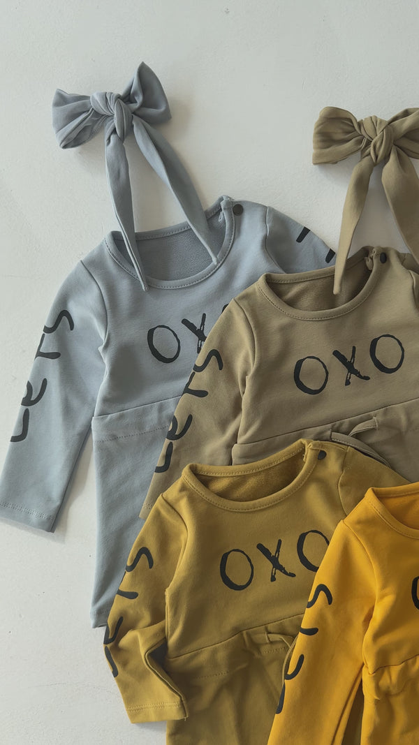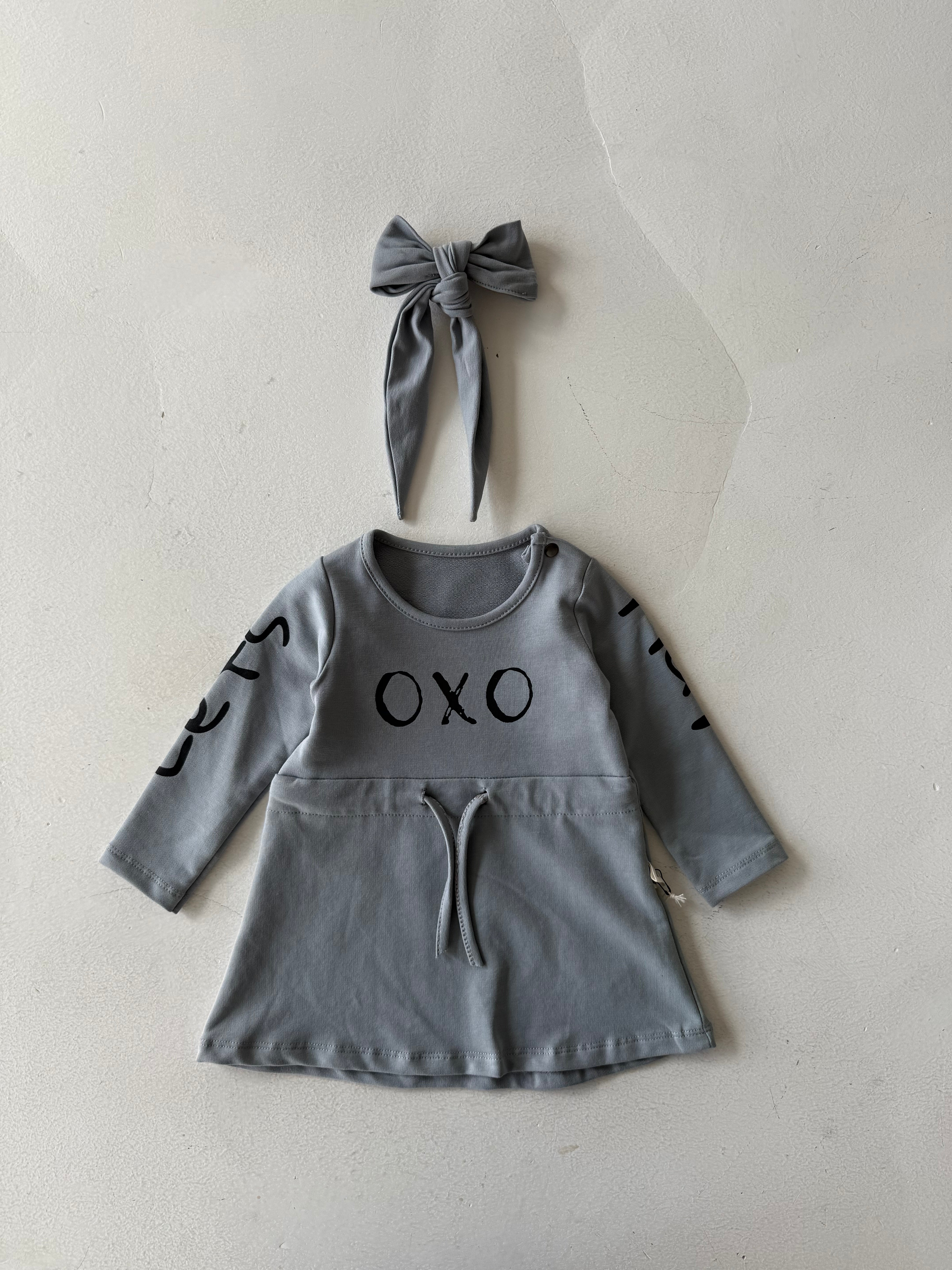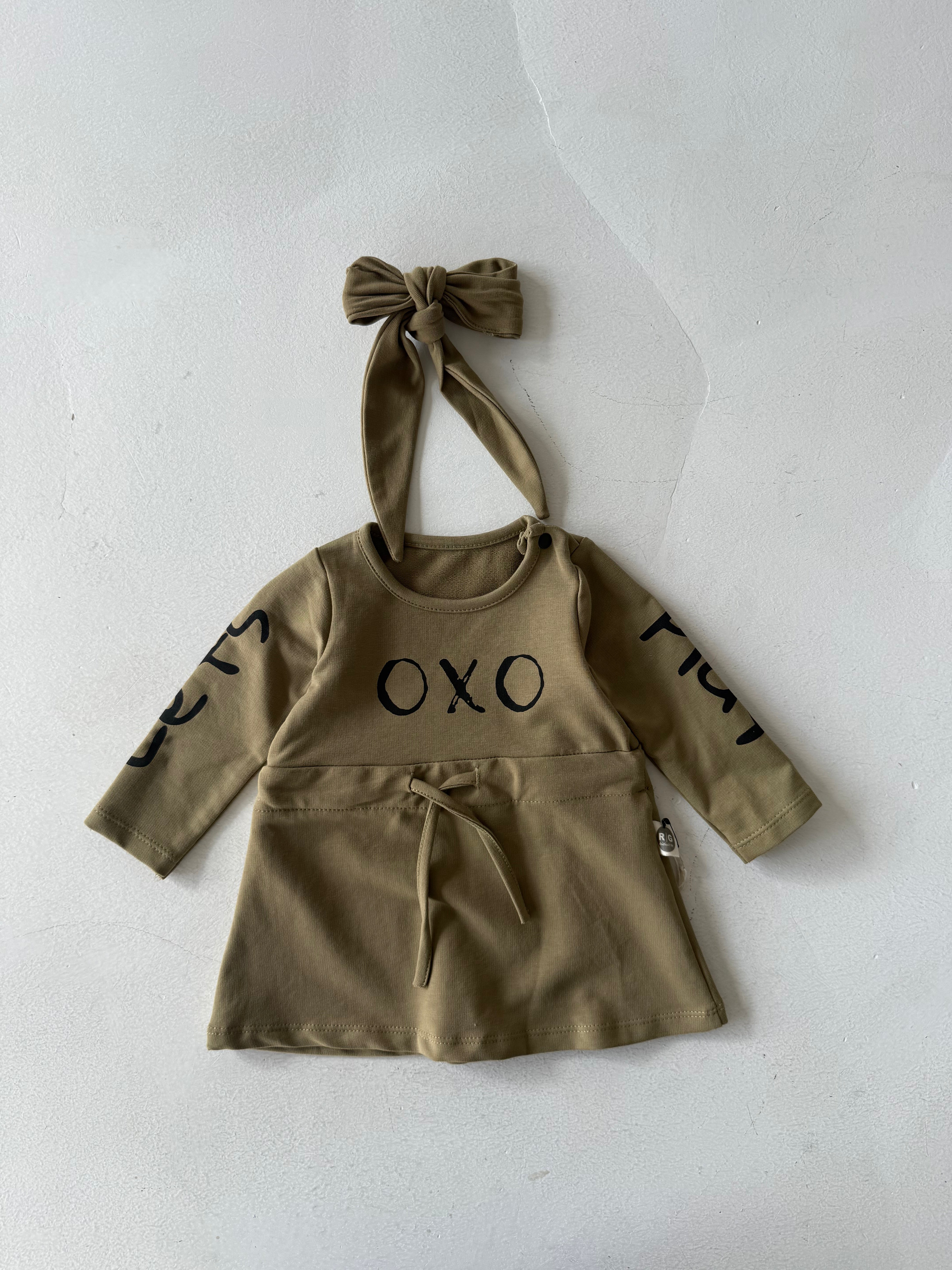 تم تصميم فستان الأطفال اللطيف والمريح والمزين بطبعة "OXO" ليضيف الأناقة والراحة إلى خزانة ملابس طفلك. مصنوع من قماش ناعم وقابل للتنفس، هذا الفستان لطيف على بشرة طفلك الحساسة.