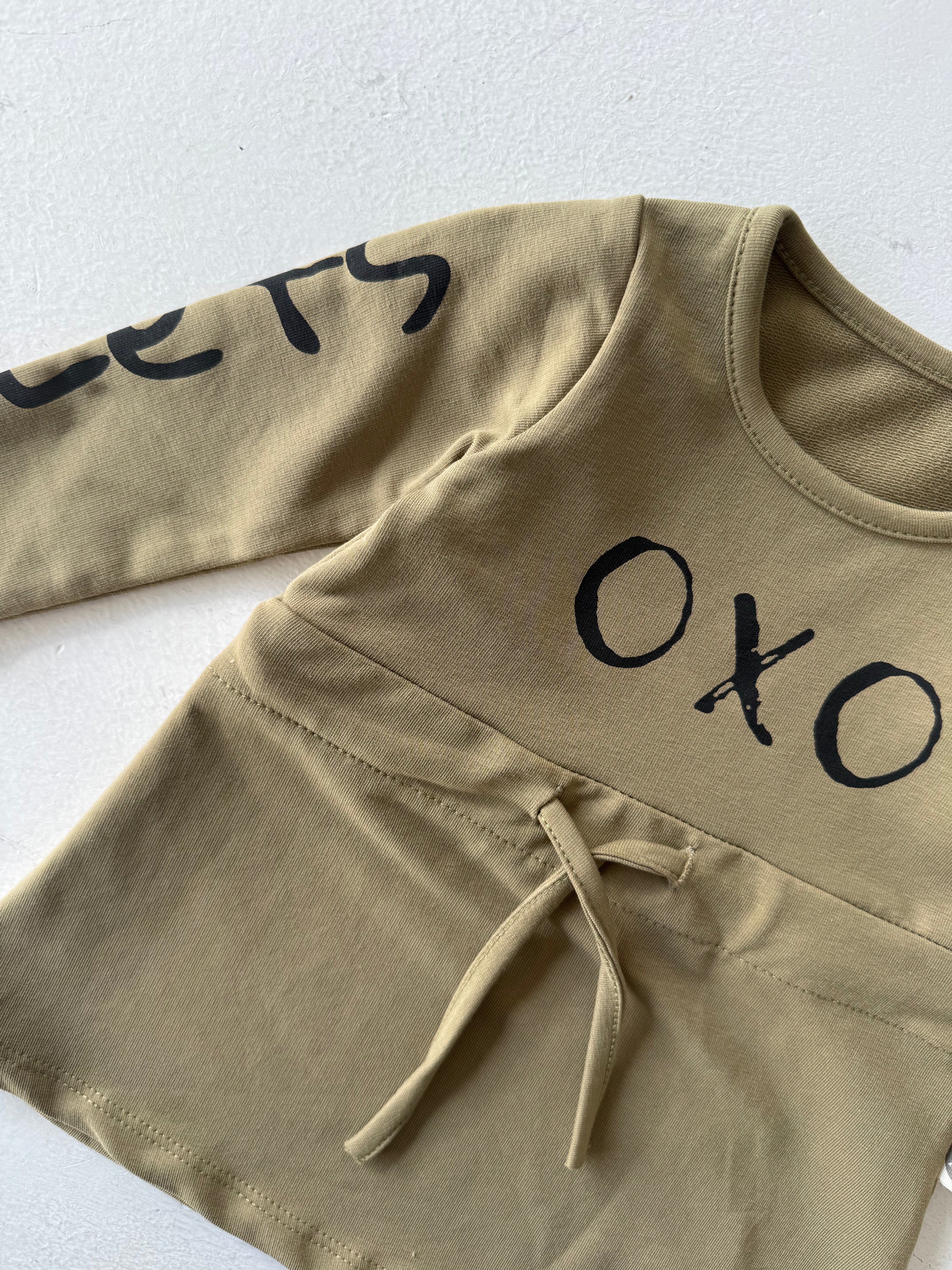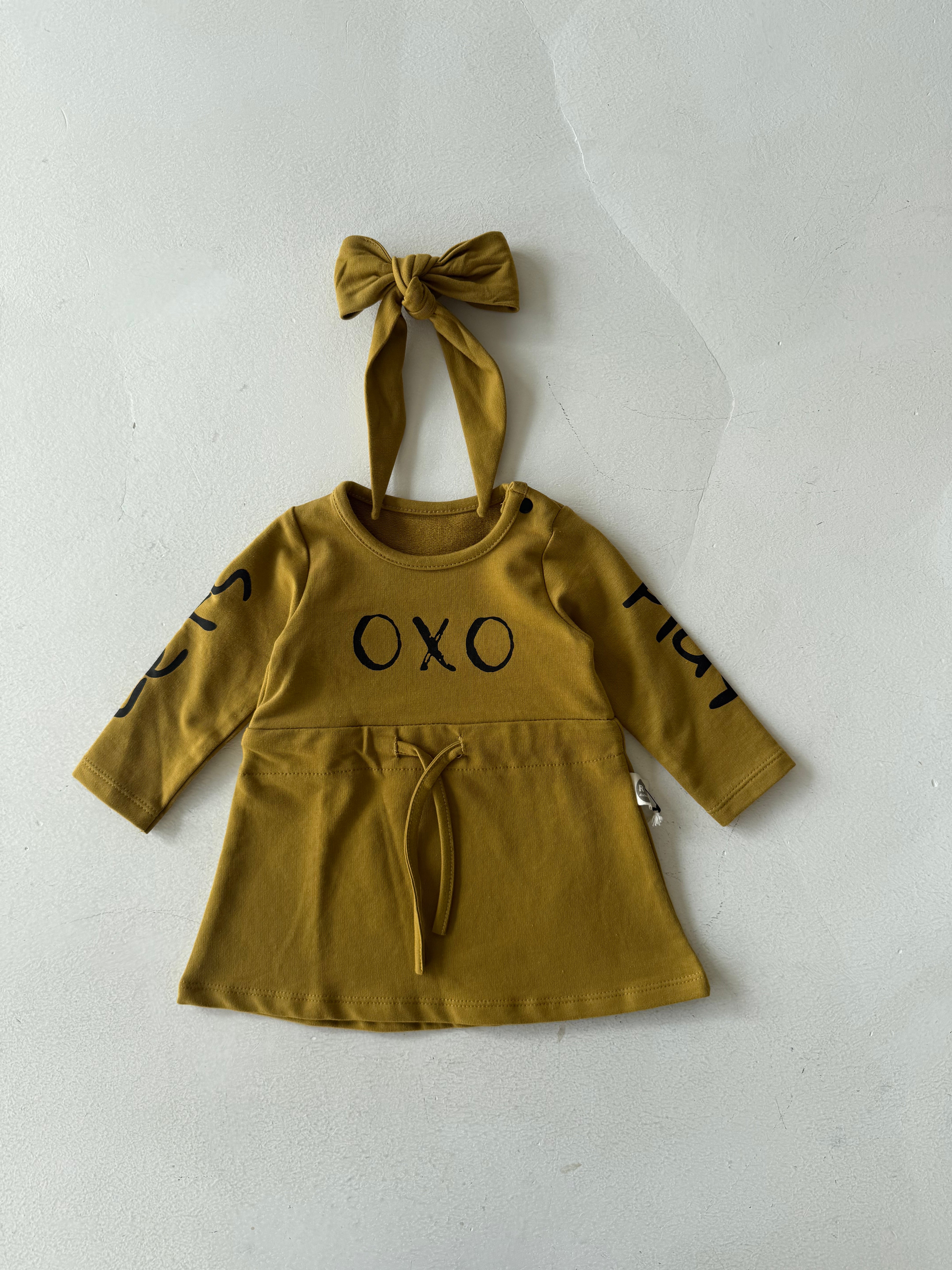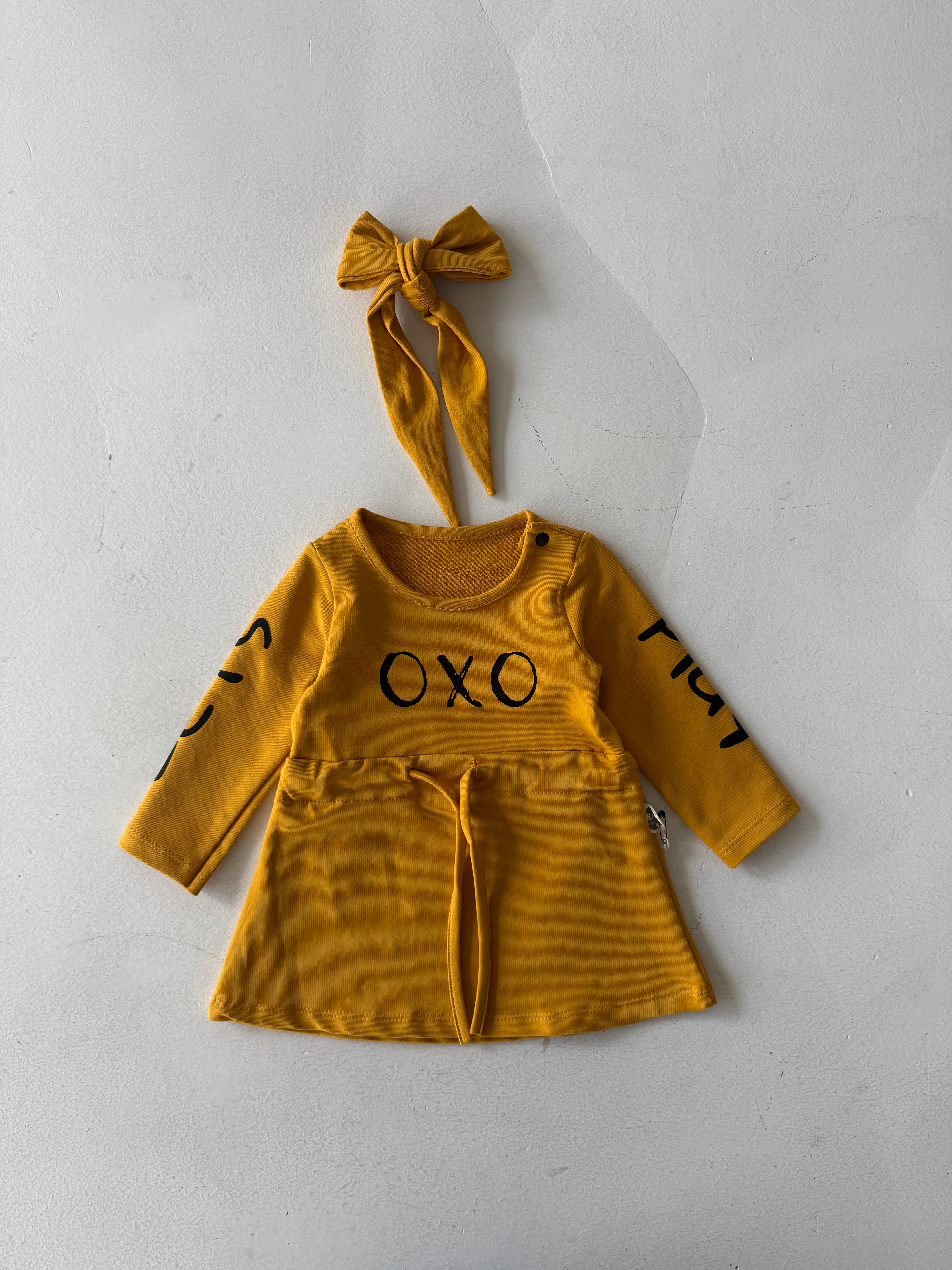 تم تصميم فستان الأطفال اللطيف والمريح والمزين بطبعة "OXO" ليضيف الأناقة والراحة إلى خزانة ملابس طفلك. مصنوع من قماش ناعم وقابل للتنفس، هذا الفستان لطيف على بشرة طفلك الحساسة.