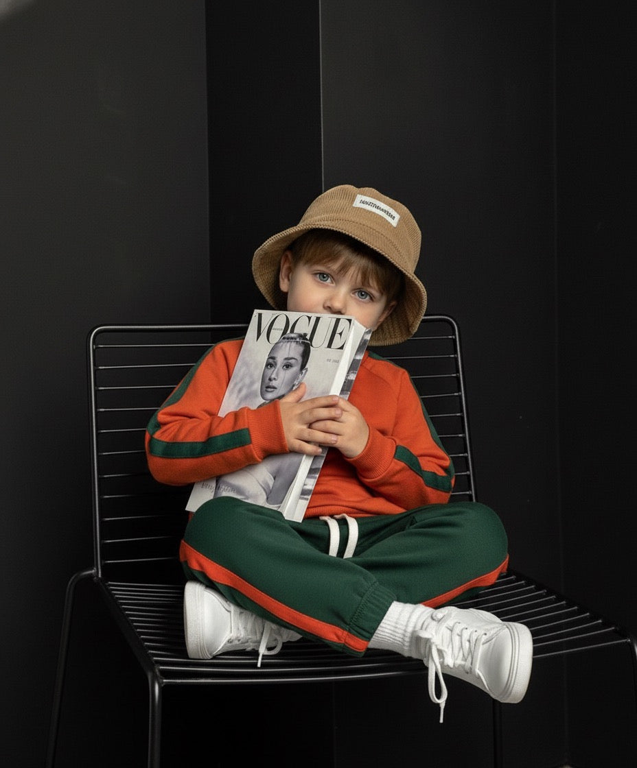 Çocuğunuzun tarz sahibi çocuk giyim anlayışını yansıtacak, hem rahat hem de modern bu haki turuncu eşofman takımı ile ona enerjik bir dokunuş katın. Şimdi sipariş verin, çocuğunuzun konforunu ve şıklığını tamamlayın!