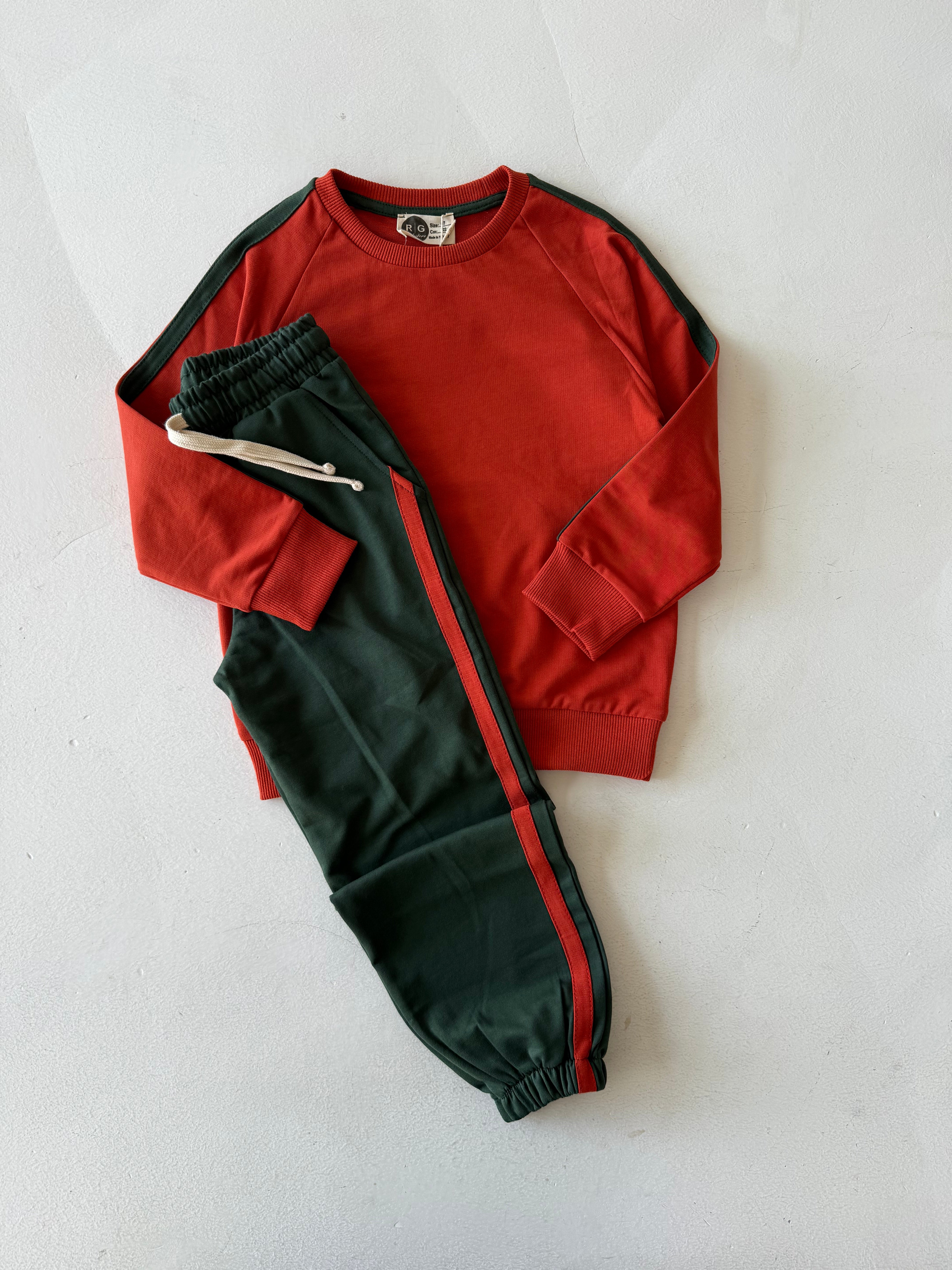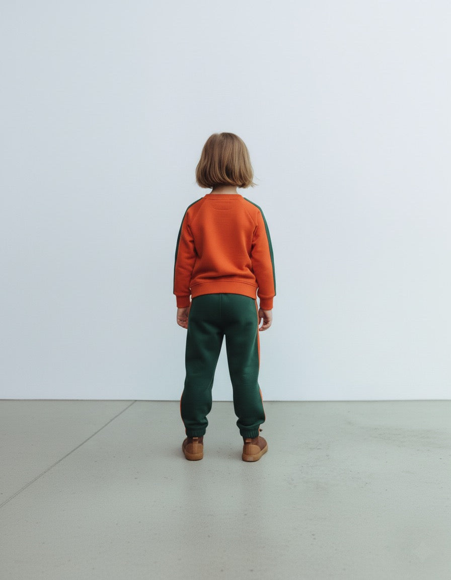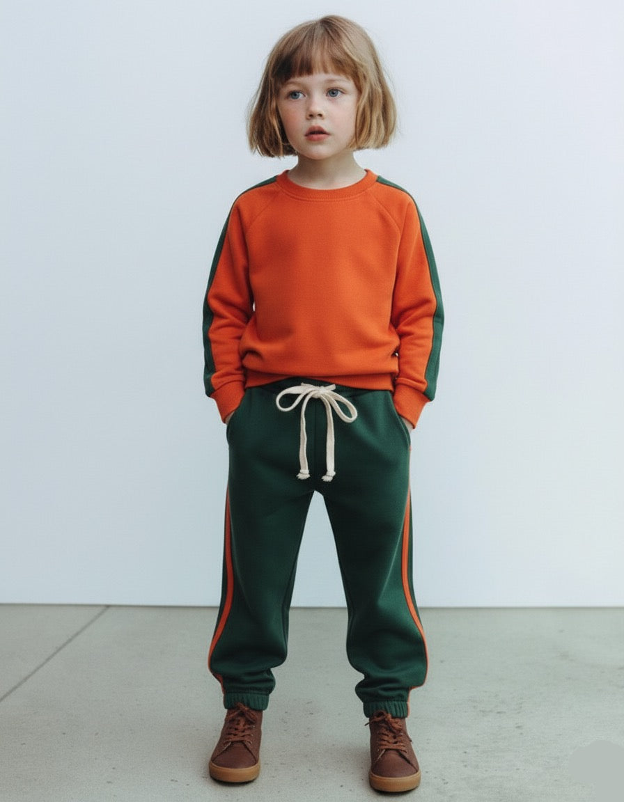 • Haki Turuncu Eşofman: Canlı turuncu ve zamansız haki yeşili renk kombinasyonuyla çocuk giyiminde spor şıklık sunar. Kolay kombinlenebilir yapısıyla öne çıkar.