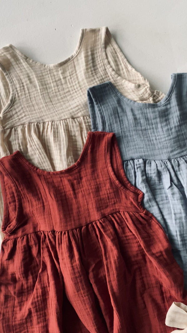 صُممت هذه الفستان المصنوع من قماش الموسلين خصيصًا ليناسب البشرة الحساسة للأطفال الصغار، ويوفر أقصى درجات الراحة والتهوية بفضل تركيبته المصنوعة من القطن بنسبة 100%. بفضل ملمسه الناعم وتركيبته الخفيفة، سيكون هذا الفستان قطعة لا غنى عنها في فصل الصيف.