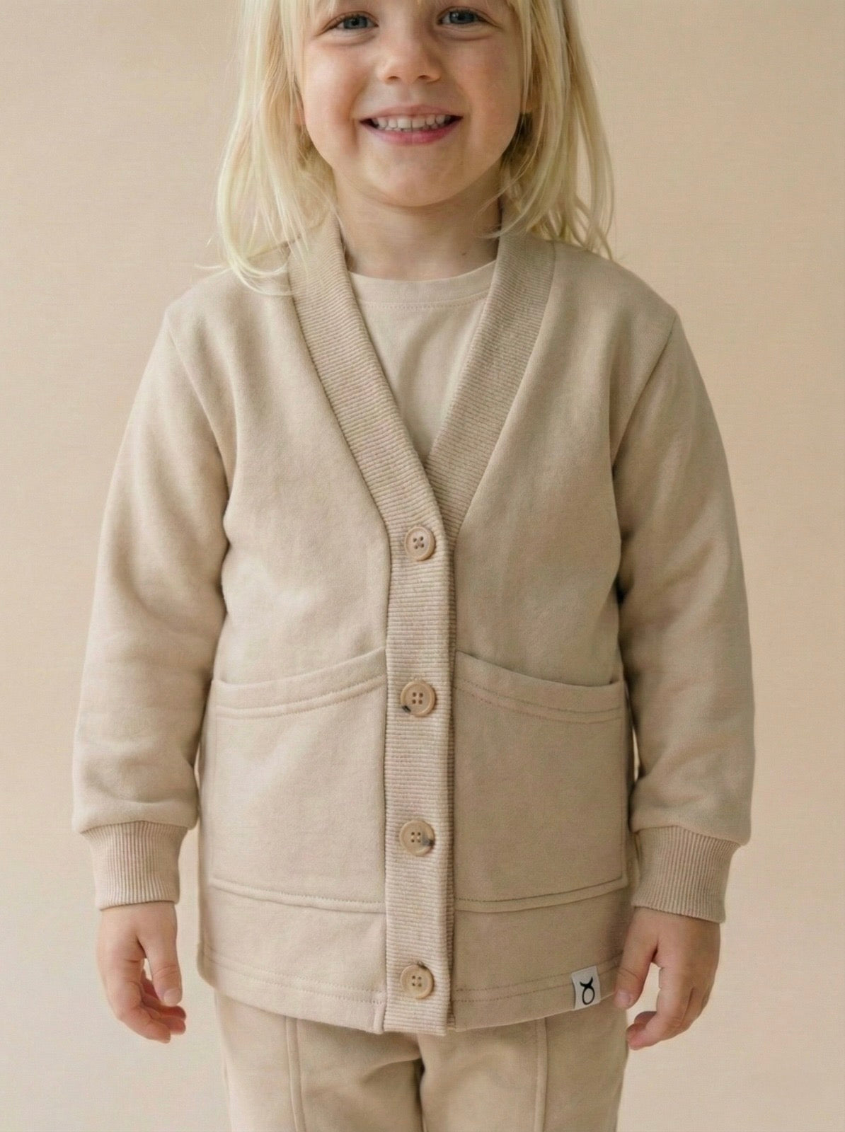 RG BrandDieser Cardigan aus 100 % Bio-Baumwolle mit Fleece-Innenseite bietet Komfort, ohne die empfindliche Haut Ihres Kindes zu schädigen.