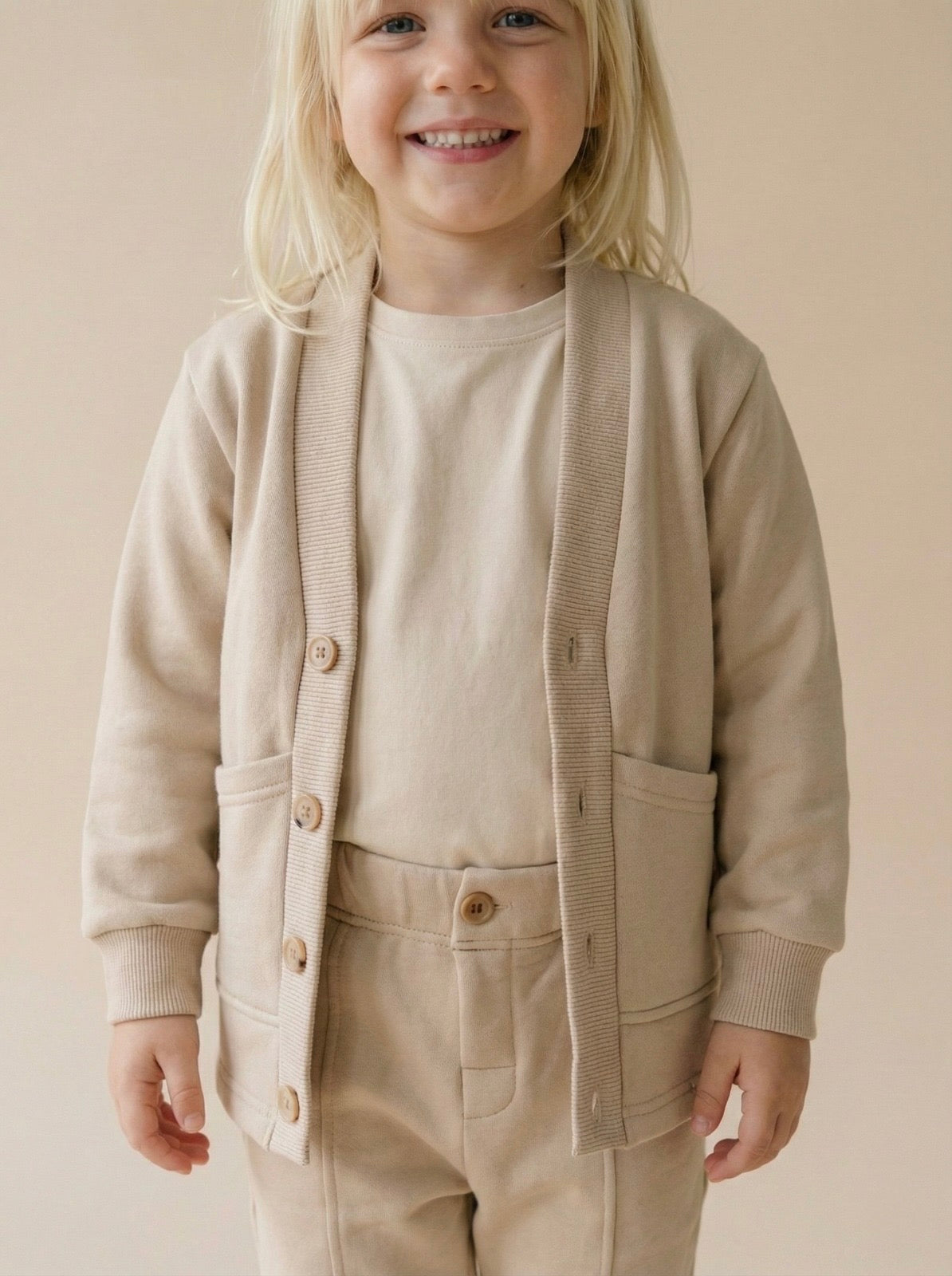 RG Brandbietet mit seinen biologischen und umweltfreundlichen Produkten weiterhin das Beste für Ihre Kinder. Dieser aus 100 % Baumwolle und Fleece gefütterte Unisex-Cardigan ist für Jungen und Mädchen im Alter von 3 bis 9 Jahren konzipiert.RG BrandDiese Strickjacke spiegelt den minimalistischen und natürlichen Designansatz von wider und hält Ihre Kinder bei kaltem Wetter warm und sorgt dafür, dass sie Stil haben. Unsere Vision ist es, der ganzen Welt einfache, stilvolle und umweltfreundliche Kinderkleidung vorzustellen.