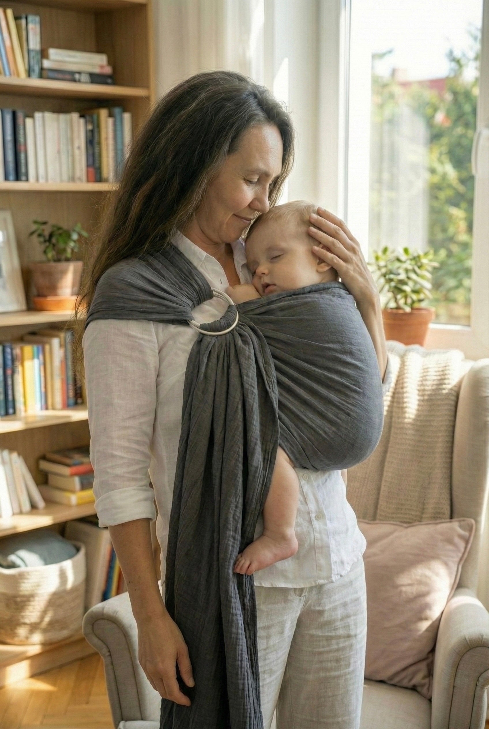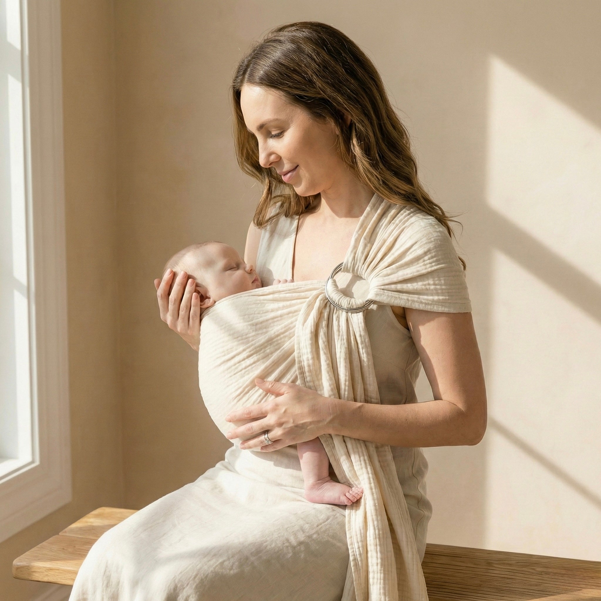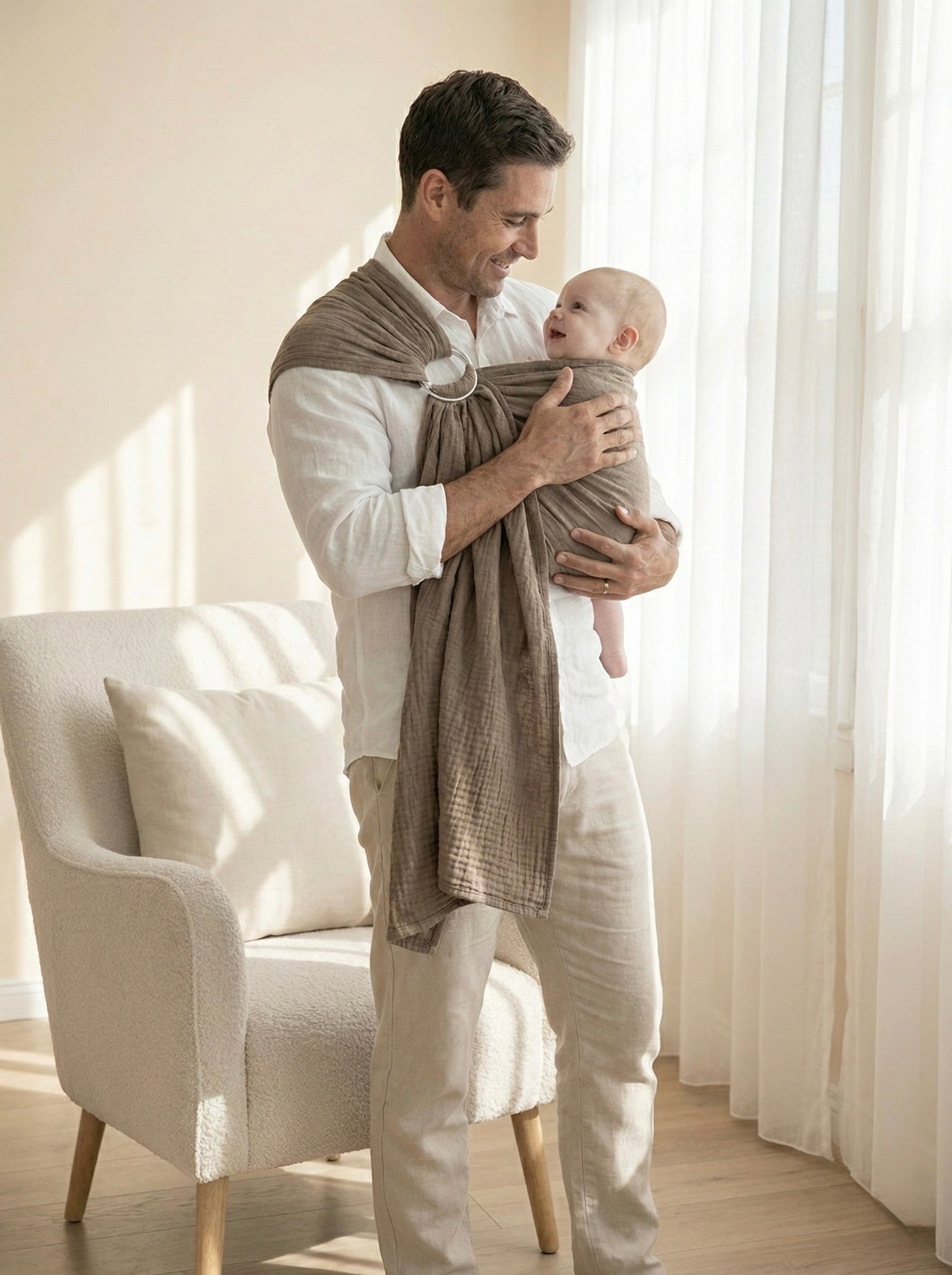 Dit product, dat is ontworpen als draagdoek voor pasgeborenen, is met zijn minimalistische en tijdloze uitstraling onmisbaar voor moderne moeders.