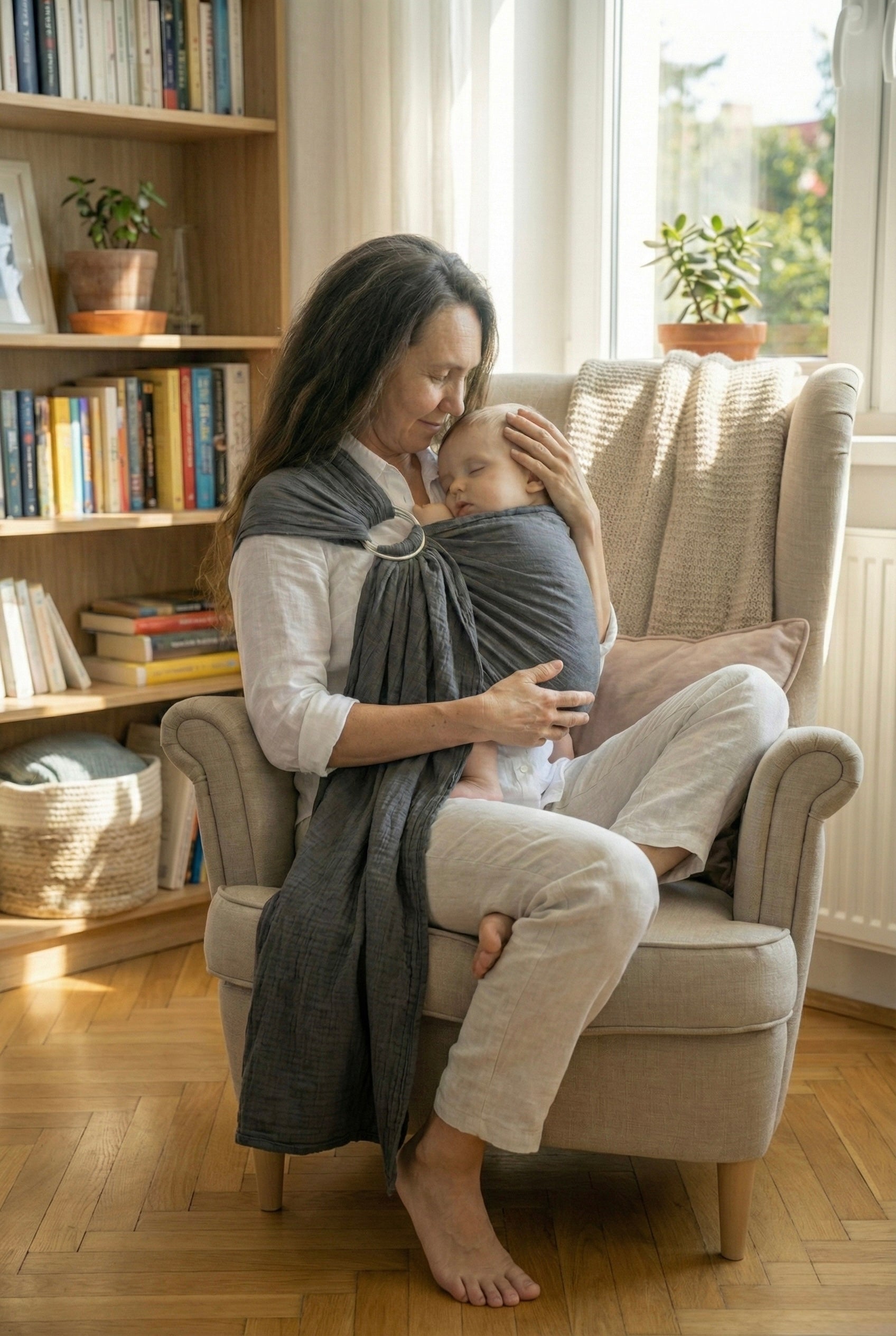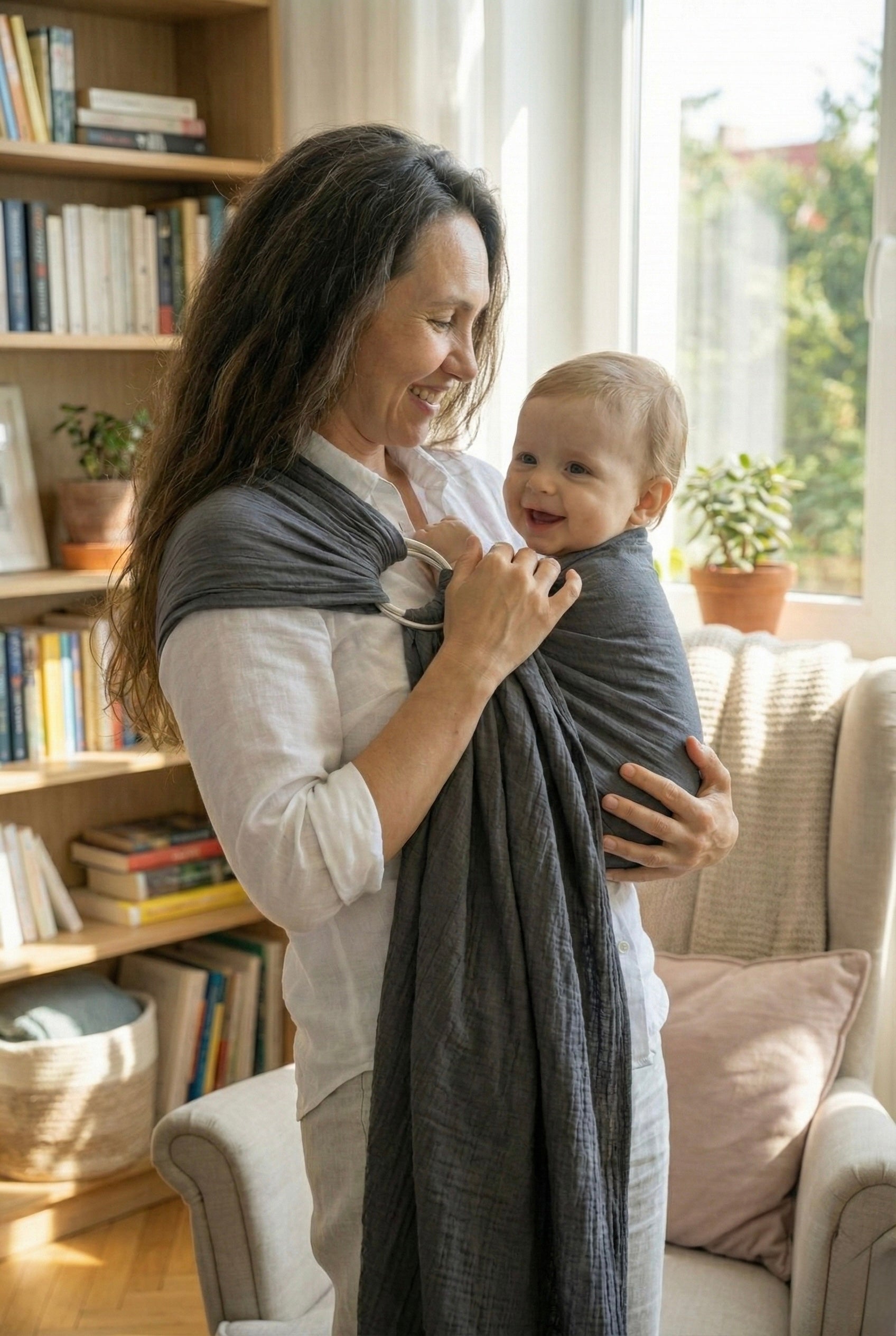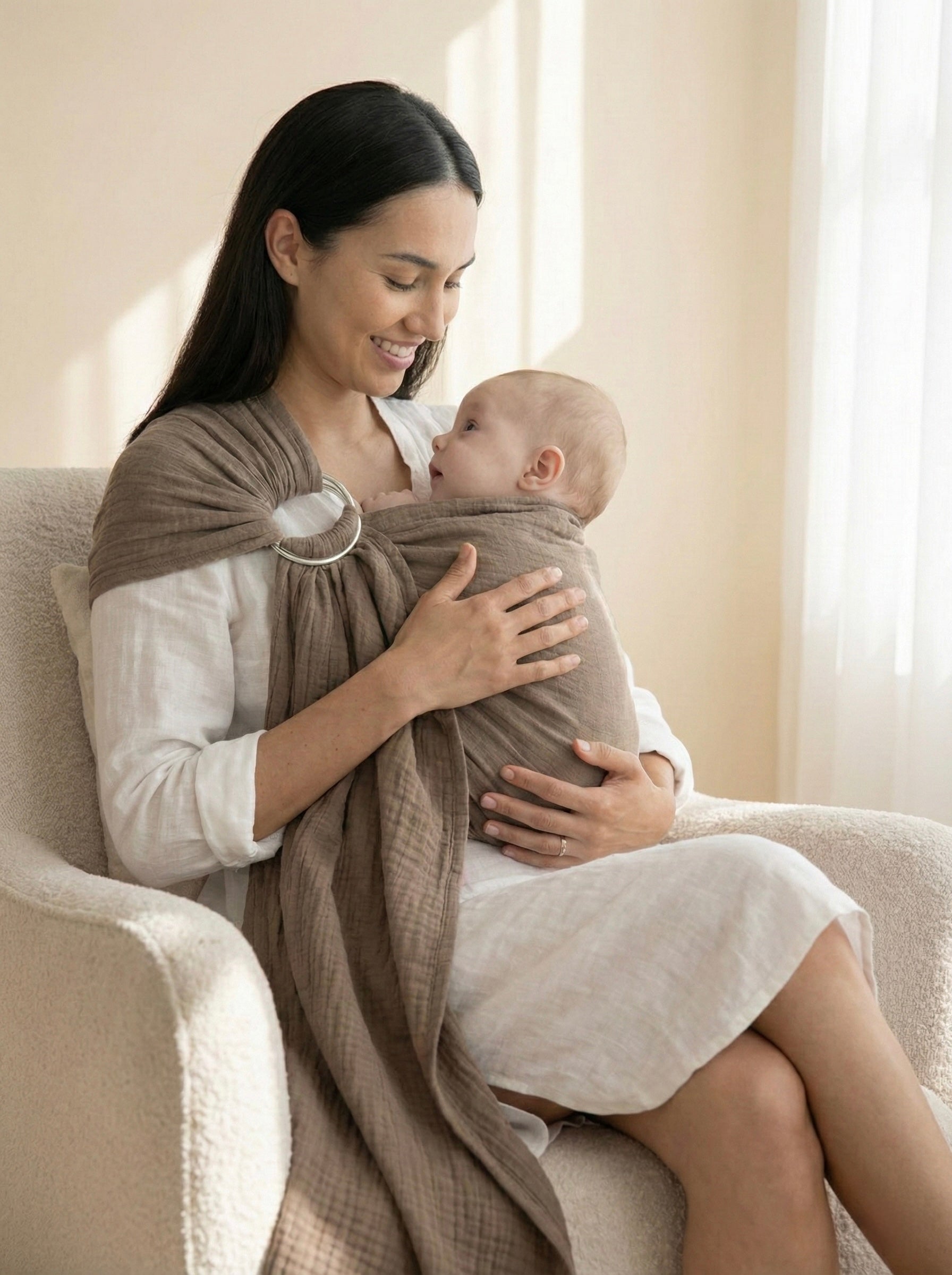 Dit product, dat is ontworpen als draagdoek voor pasgeborenen, is met zijn minimalistische en tijdloze uitstraling onmisbaar voor moderne moeders.