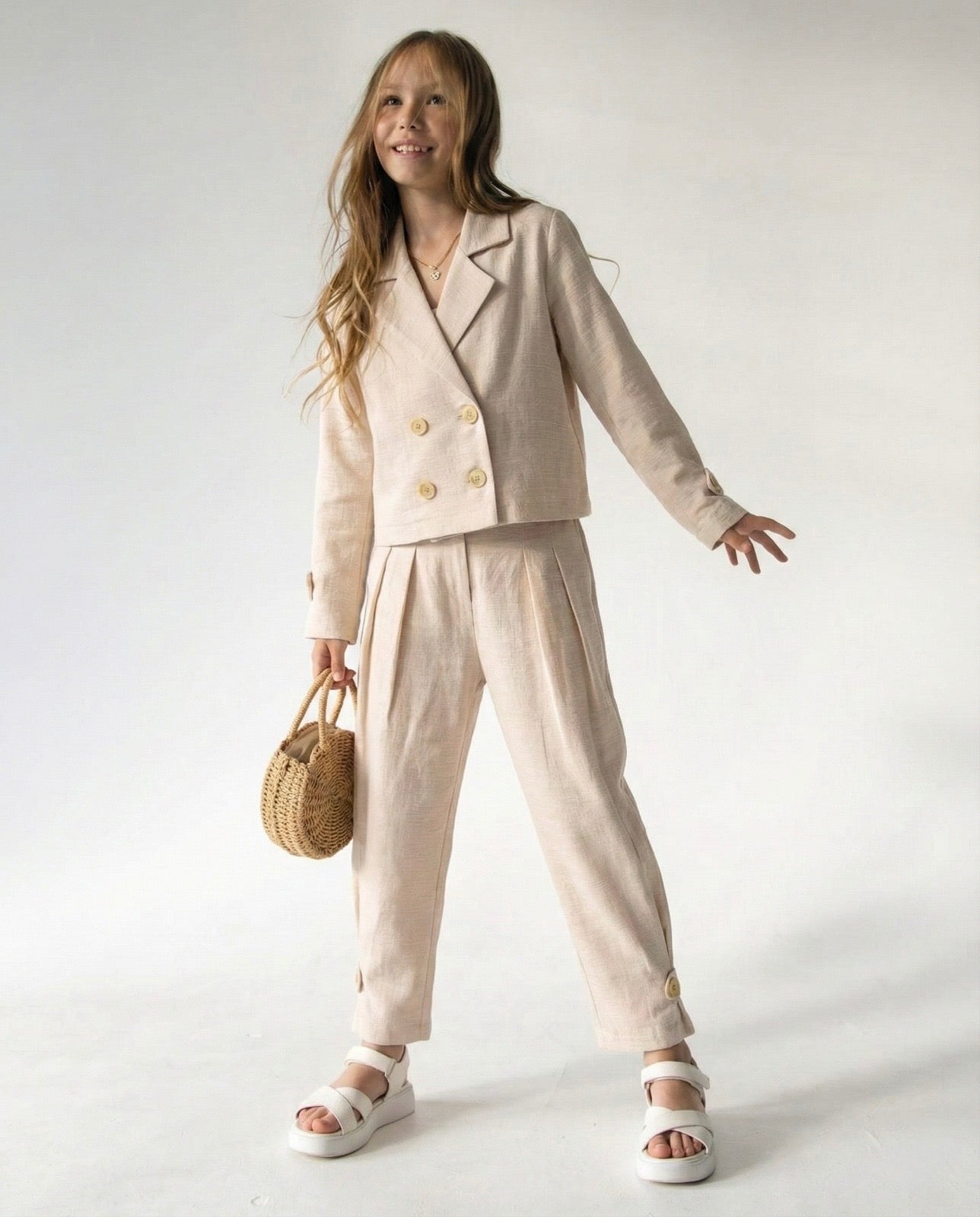 Junges Leinen-Jacken-Hosen-Set