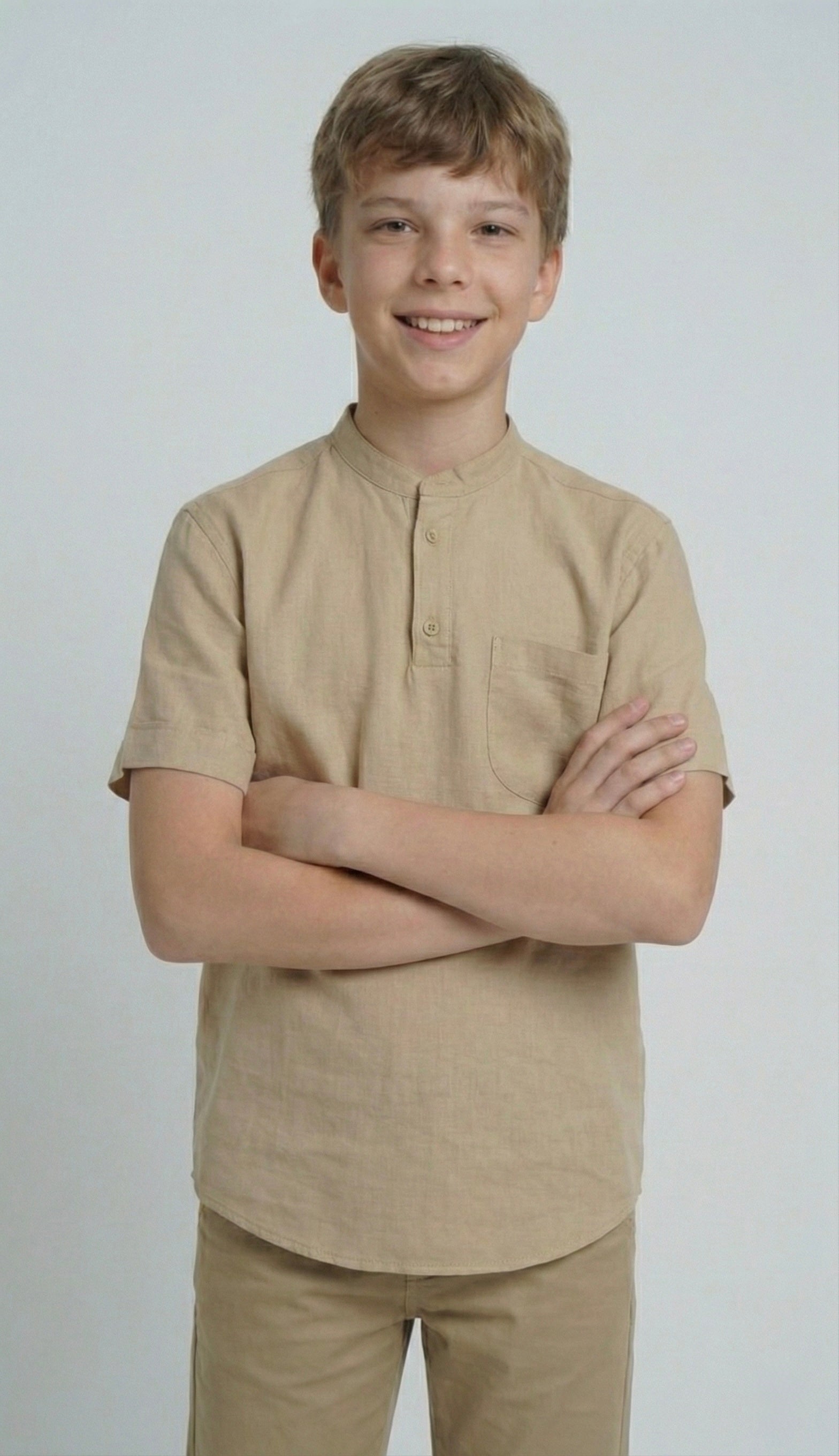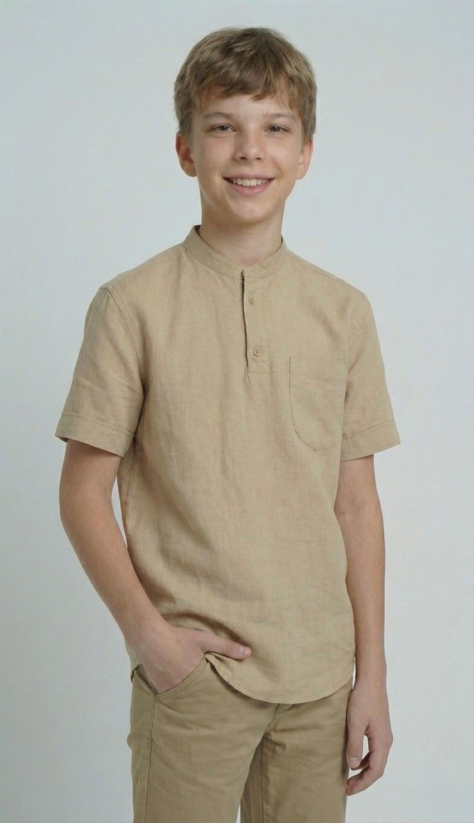 Dieses Leinenhemd mit Stehkragen ist eine coole und stilvolle Sommeroption für junge Leute. Durch die Kombination des klassischen Schnitts mit modernen Details sorgt es für einen bequemen und stilvollen Look.