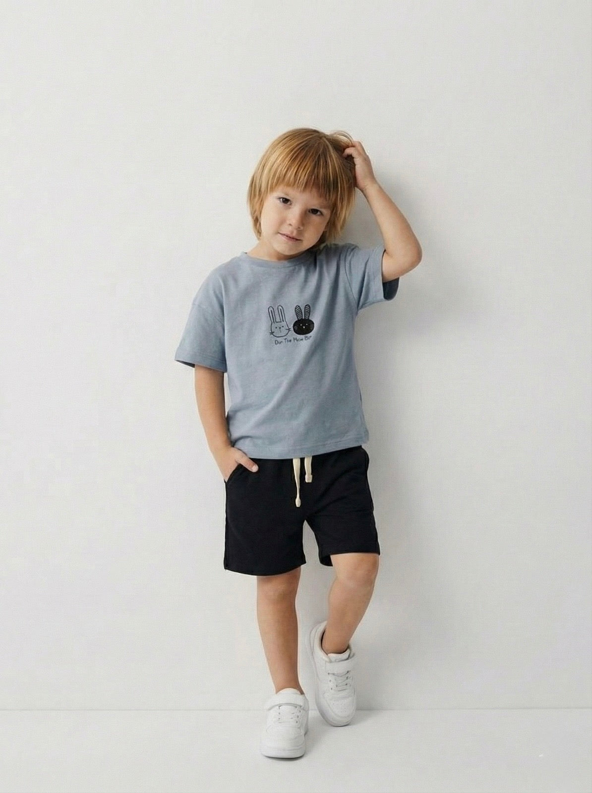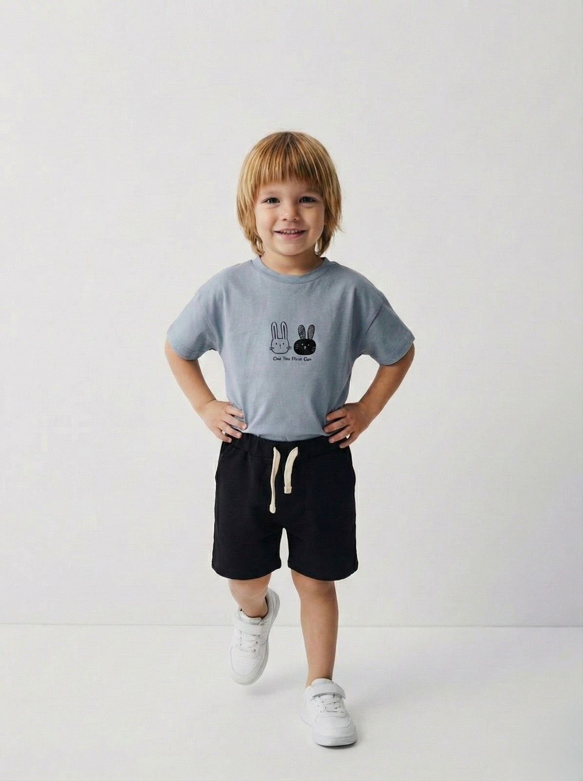 Das bedruckte T-Shirt-Set aus Baumwollstoff verleiht der Garderobe Ihrer Kinder Komfort und Eleganz. Mit seiner weichen Textur und der atmungsaktiven Struktur kann es zu jeder Jahreszeit bequem getragen werden.