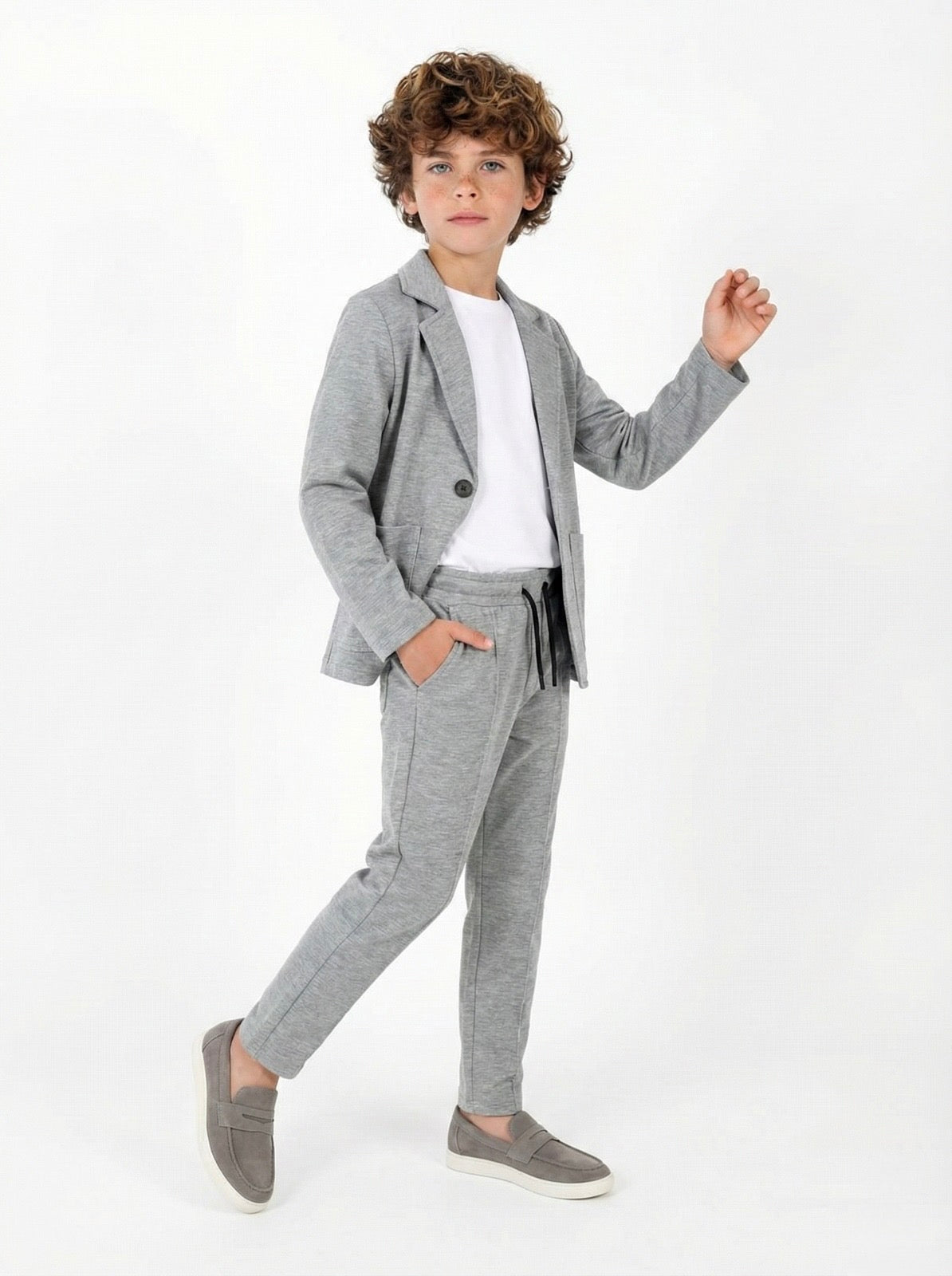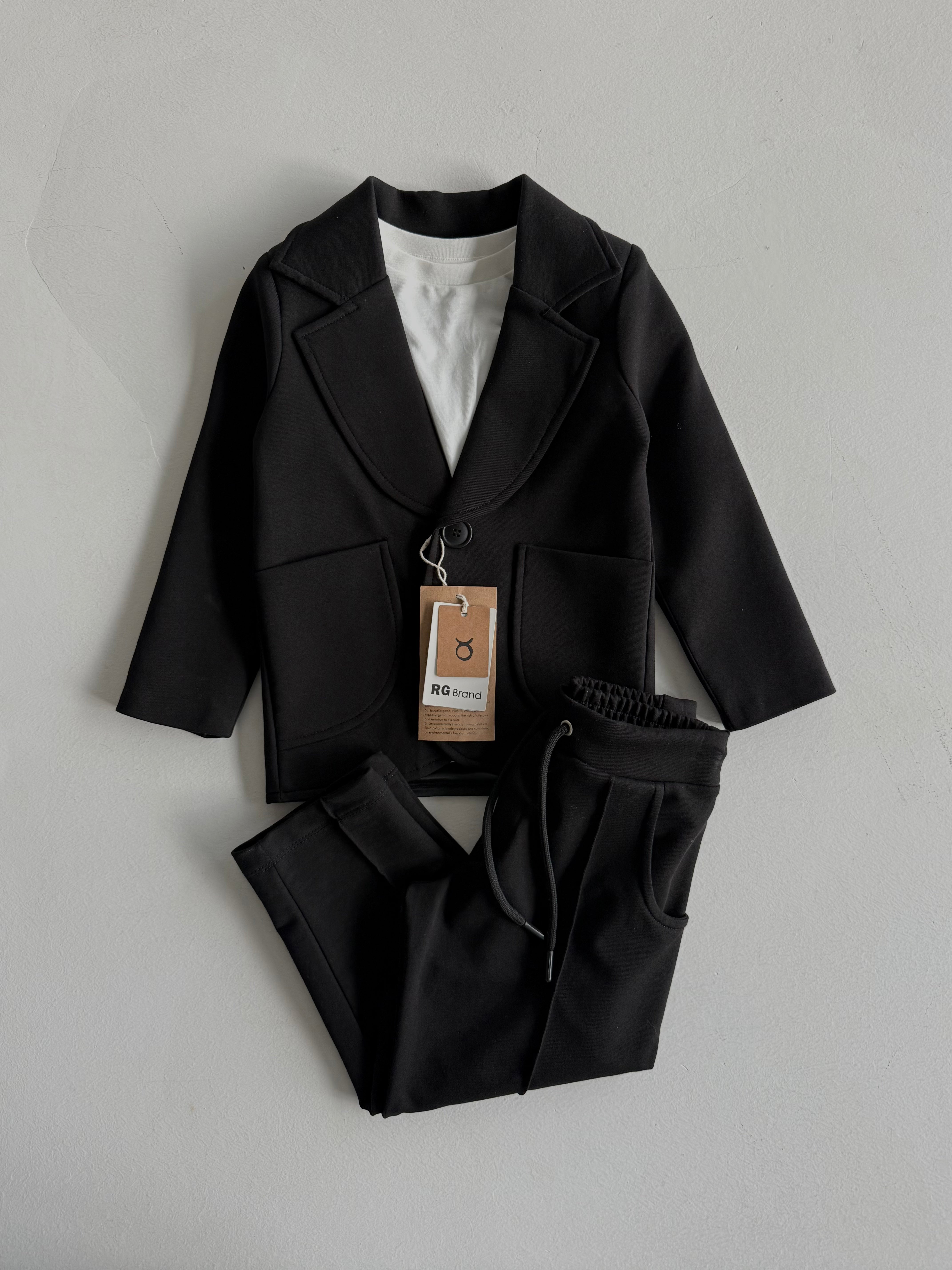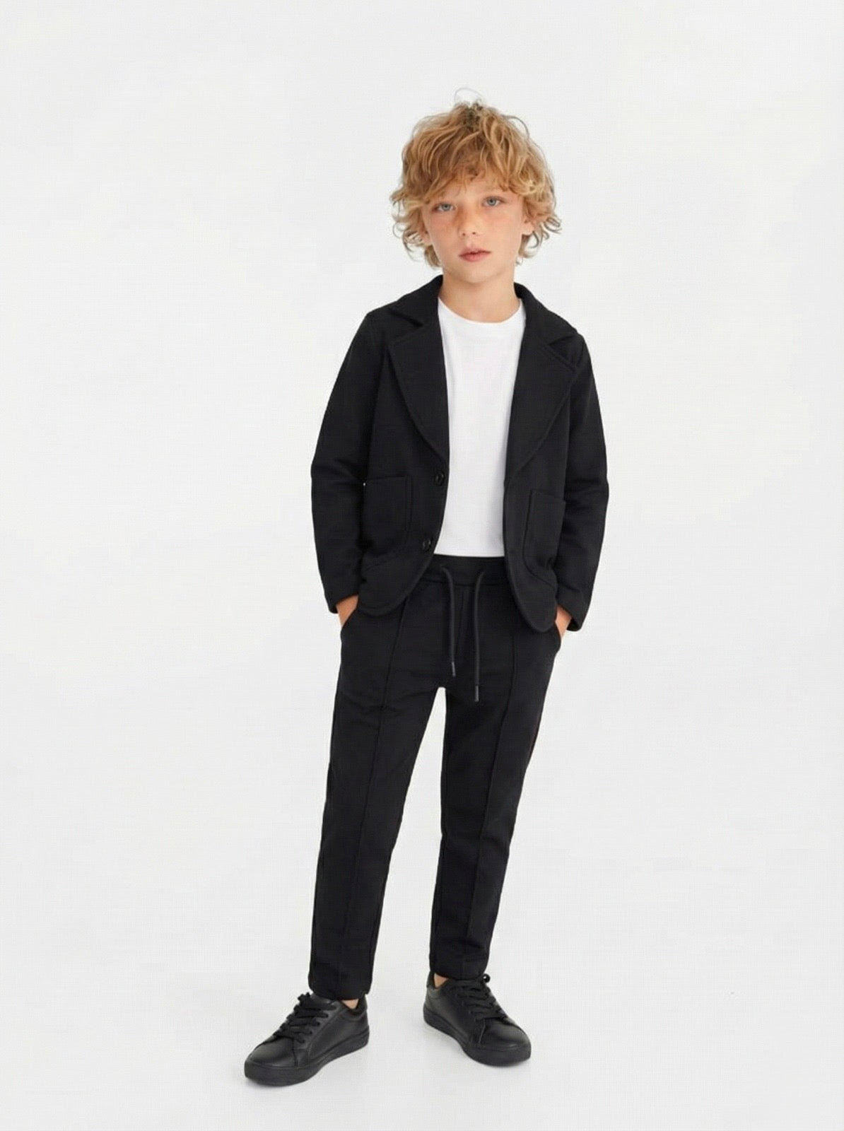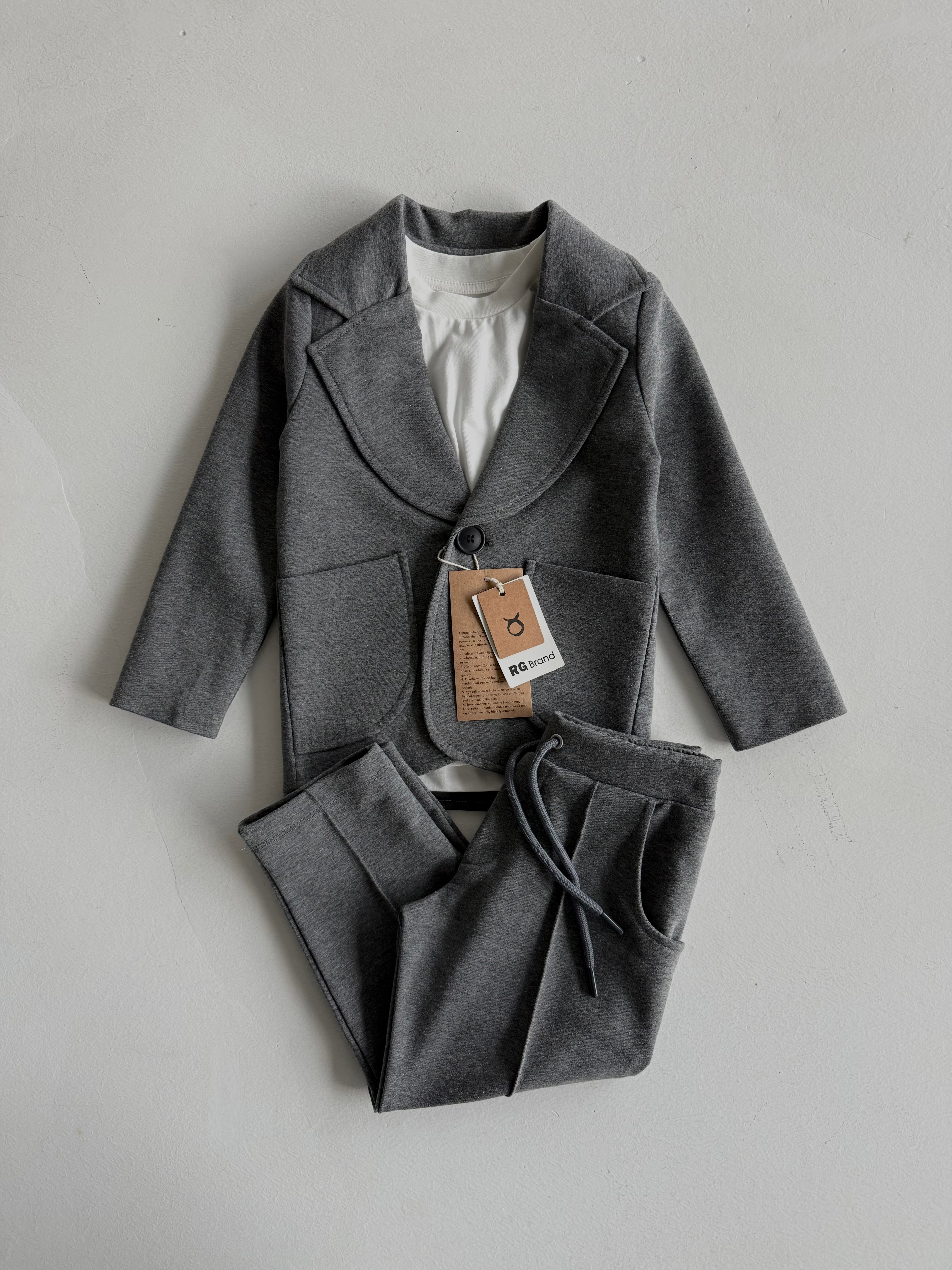 Der dreiteilige Kinderanzug aus Lycra-Baumwolle für besondere Tage lässt Ihr Kind bei besonderen Anlässen sowohl stilvoll als auch bequem aussehen. Mit hochwertigen Materialien und modernem Design ist dieser Anzug die ideale Wahl für besondere Momente.