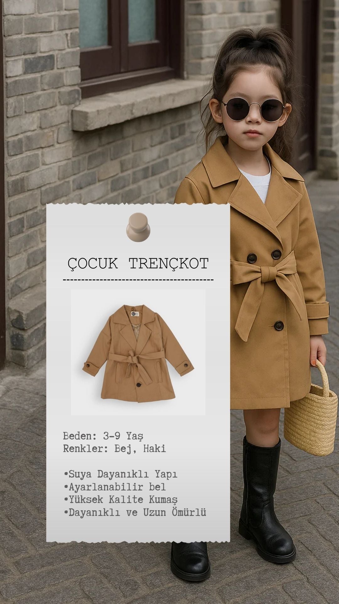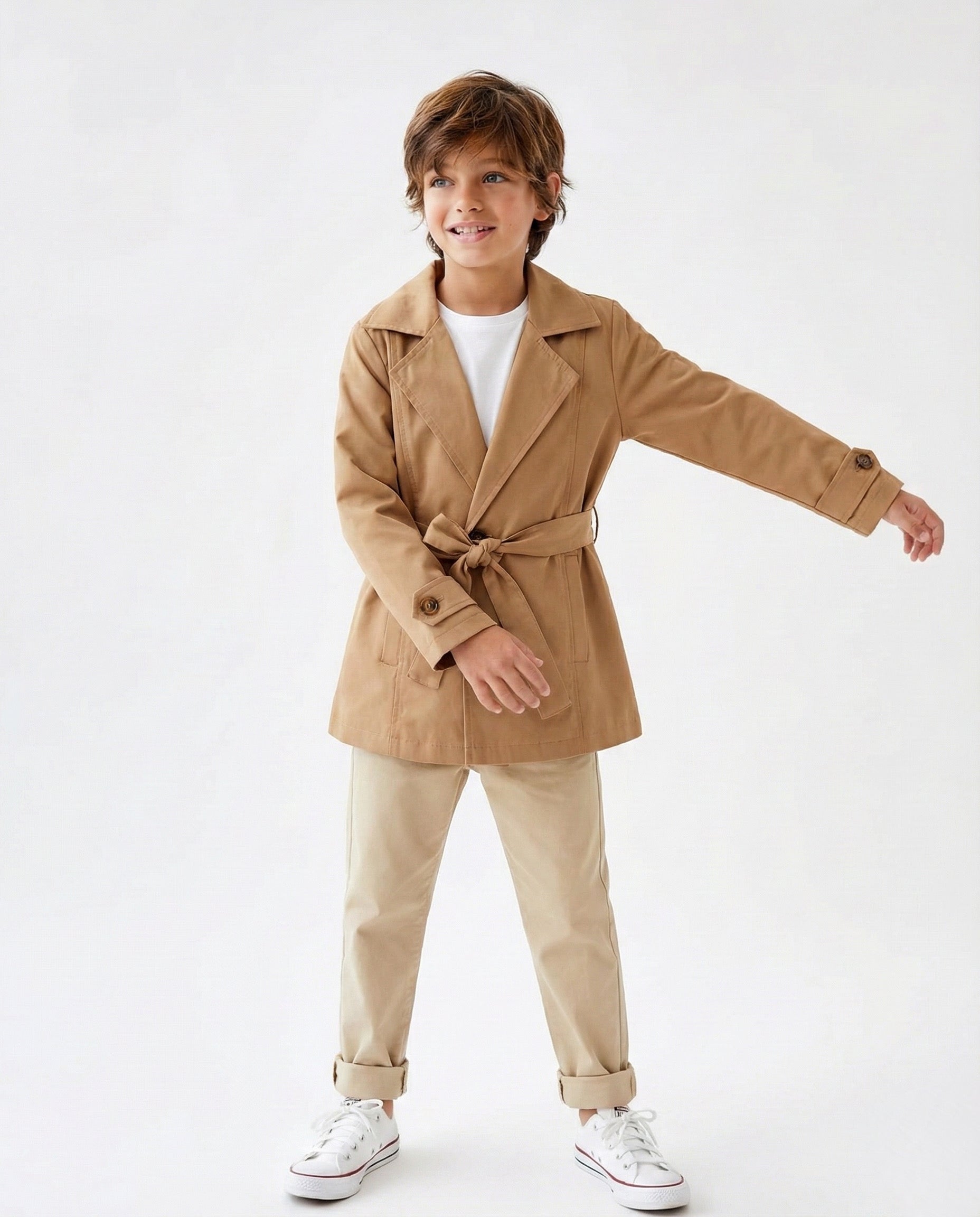Der Kinder-Trenchcoat mit Knöpfen vorne und Bindedetail lässt Ihr Kind sowohl im Alltag als auch zu besonderen Anlässen bequem und stilvoll aussehen. Dieser Trenchcoat zeichnet sich durch sein modernes Design und seinen praktischen Nutzen aus und wird für lange Zeit ein unverzichtbarer Bestandteil der Garderobe Ihres Kindes sein. Legen Sie es jetzt in Ihren Warenkorb und bieten Sie Ihrem Kind Komfort und Eleganz!