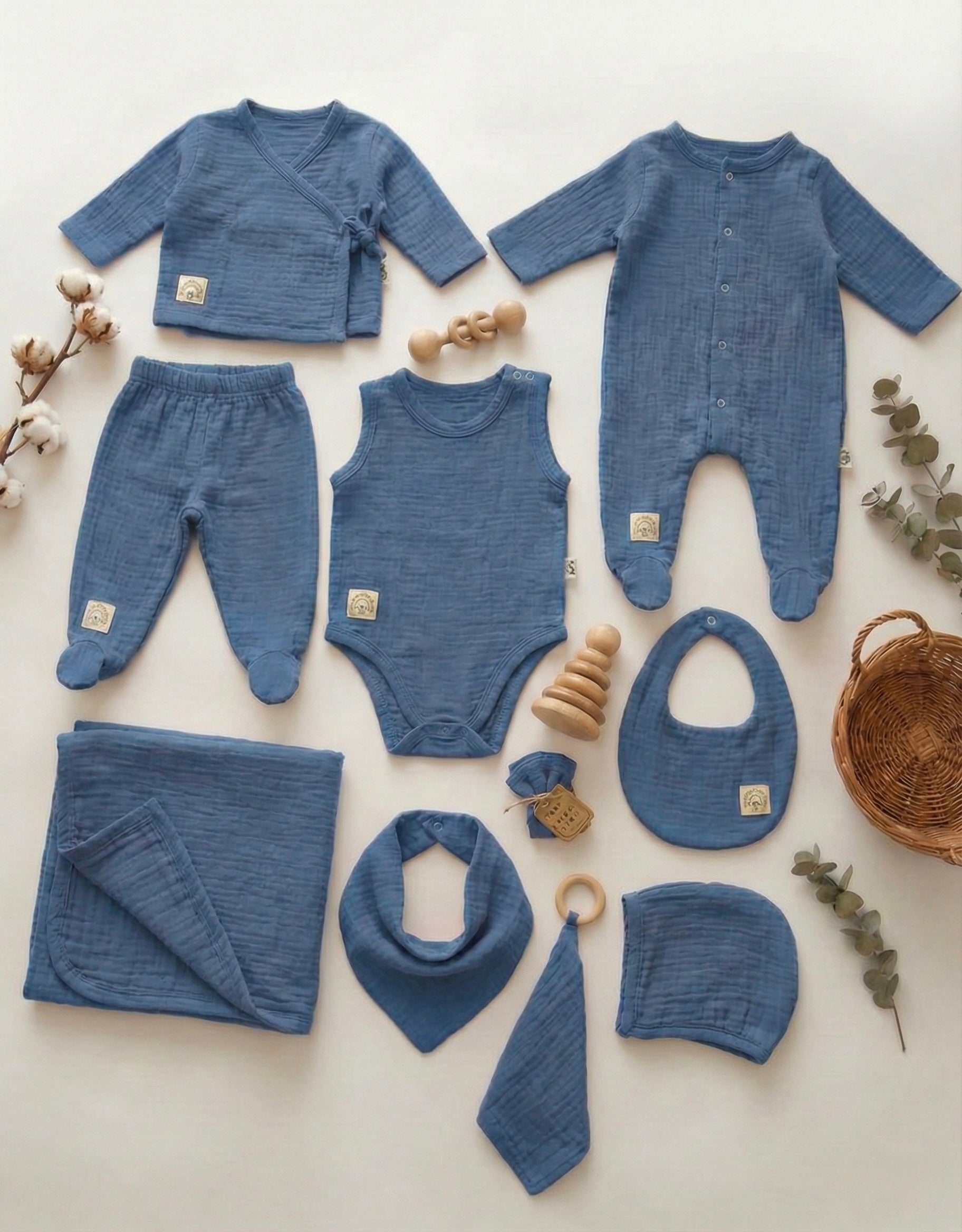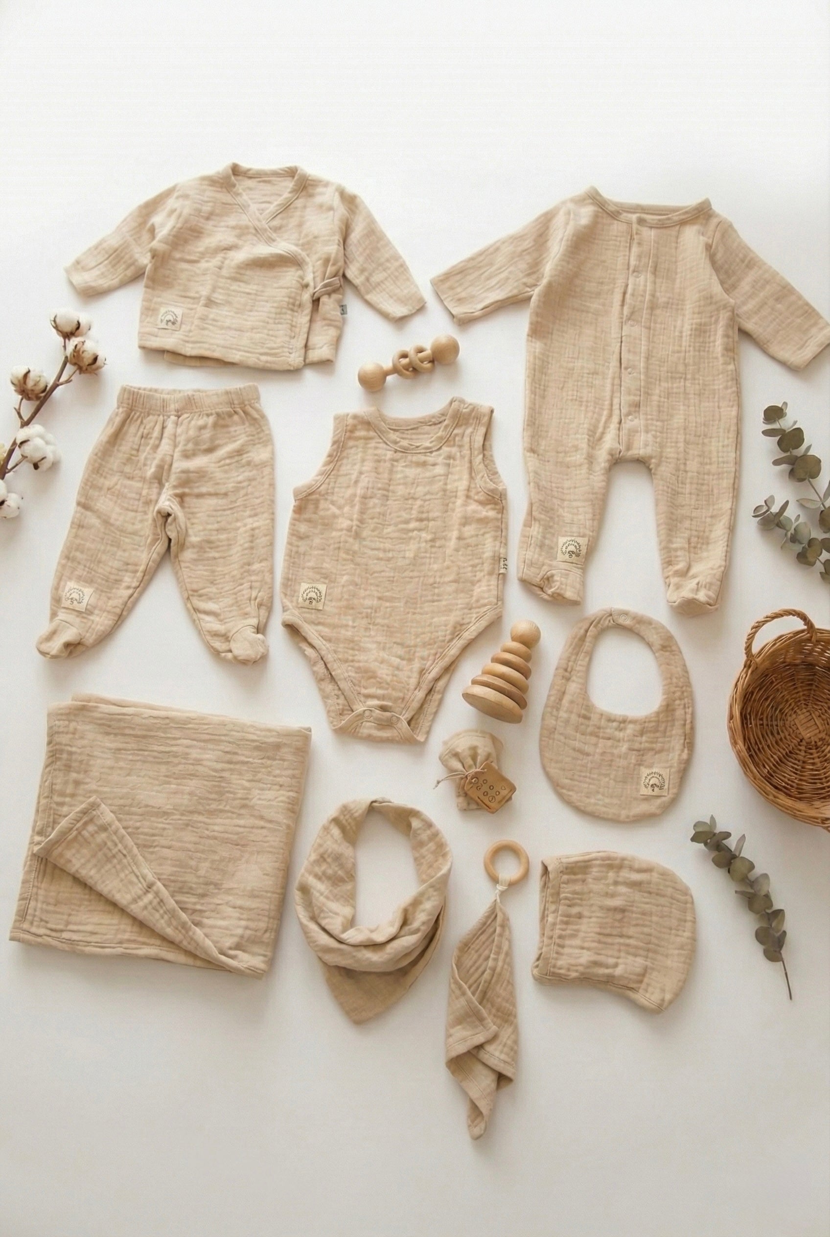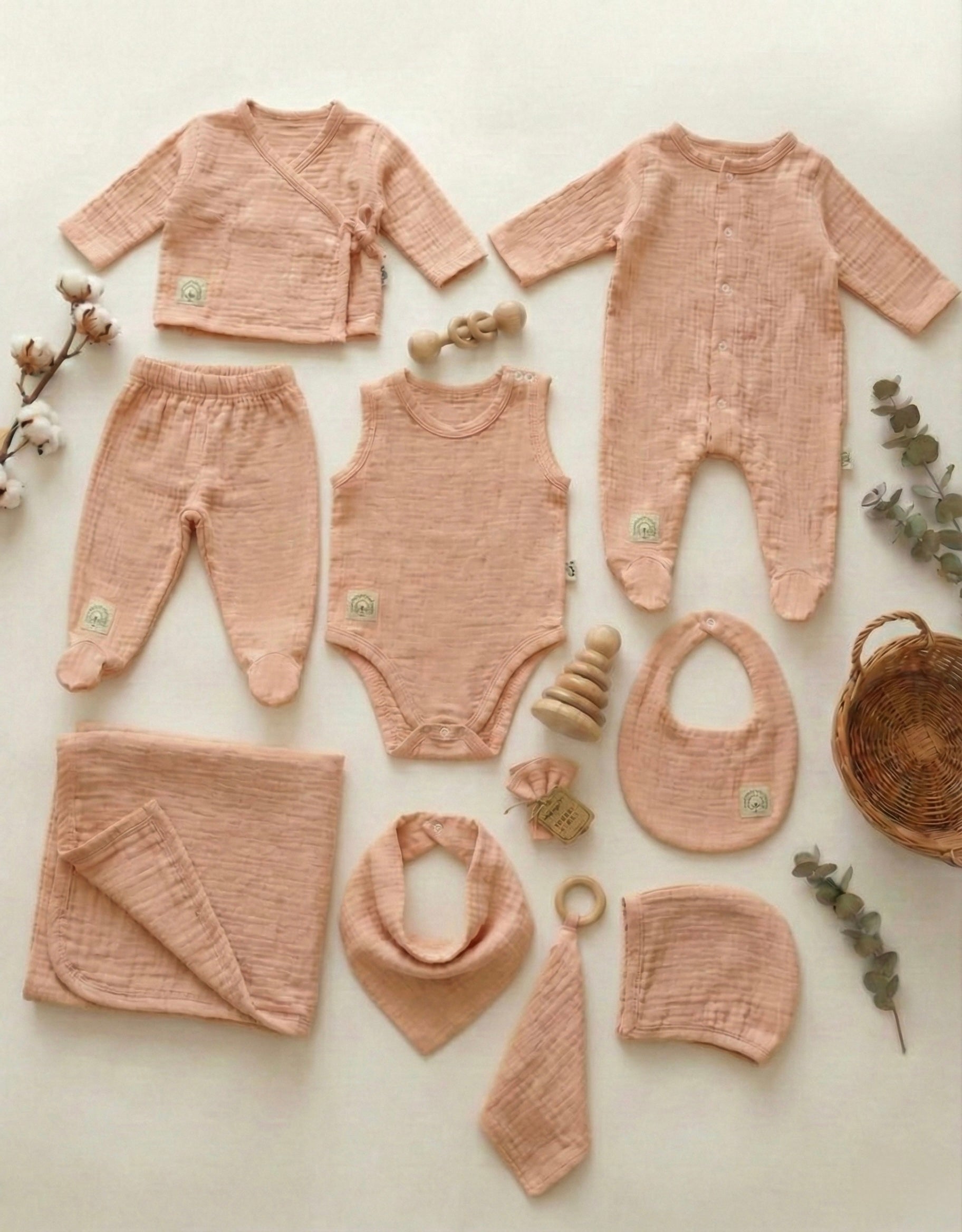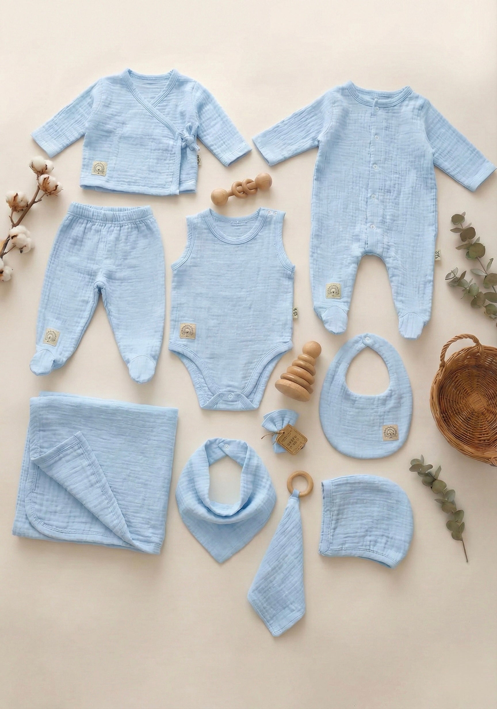10-teiliges Set für Neugeborene aus Musselinstoff