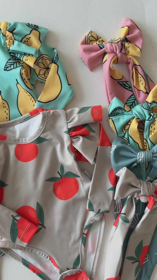 Baby Ruffle Collar Long Sleeve Swimsuit and Hair Clip