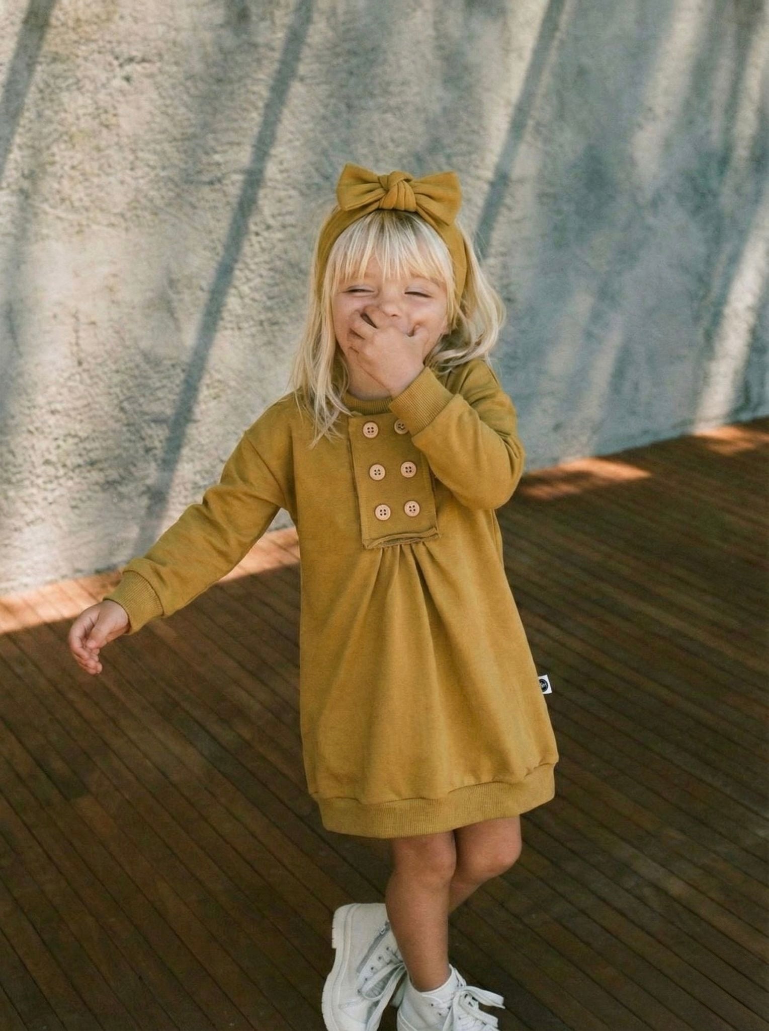 This baby dress and headband 2-piece set with buttons down the front and pleats keeps your baby comfortable and stylish at all times. Add this soft and elegant set to your cart now and complete your baby's wardrobe!