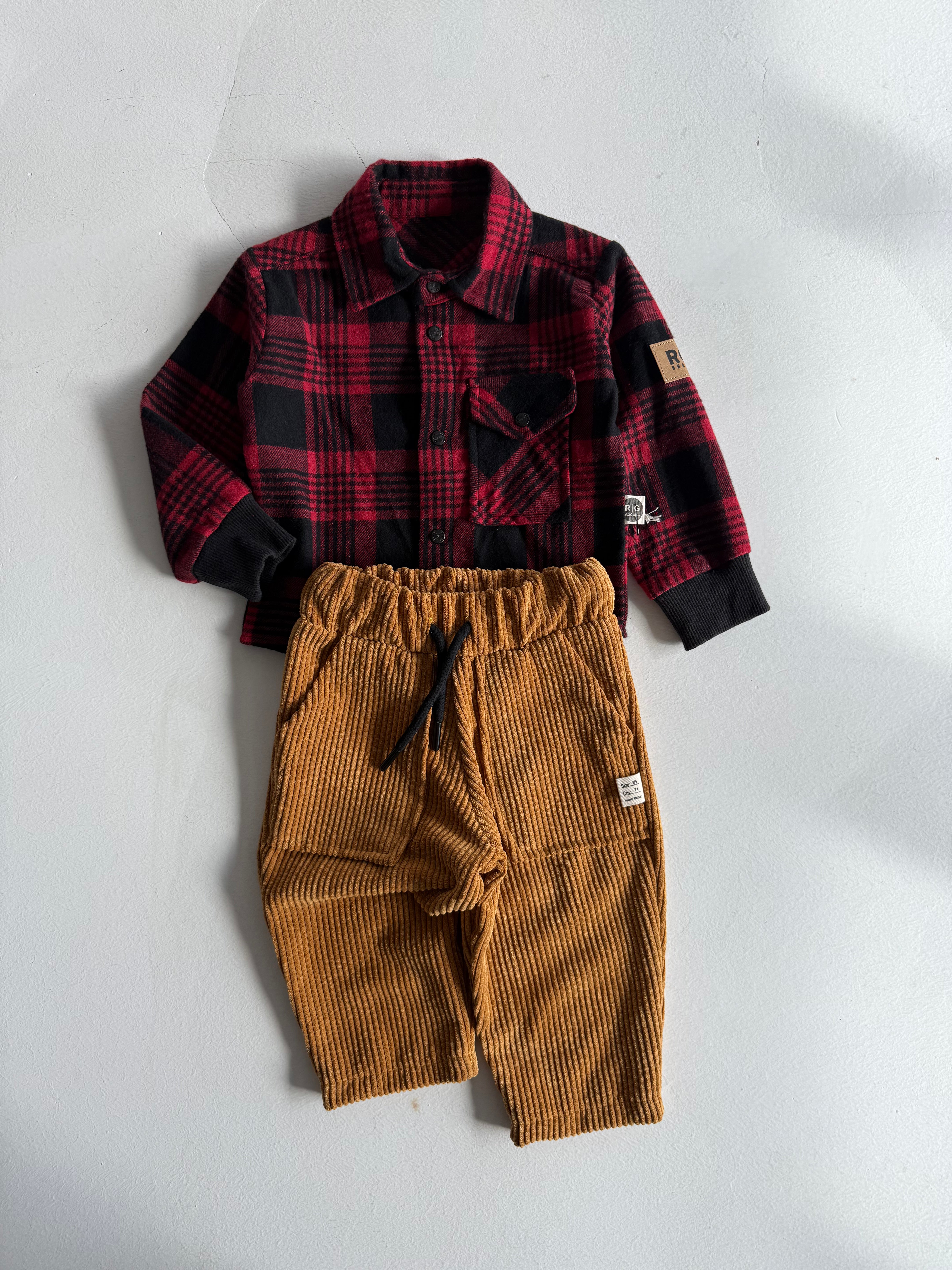 This lumberjack shirt, with its jaclon detail and specially designed for babies, offers both chic and comfort. With its flexible structure and stylish details that allow your baby freedom of movement, this shirt will become an indispensable part of your baby's wardrobe.