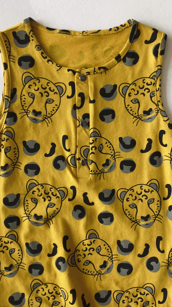 - The cute and playful tiger print gives the jumpsuit an adorable look.