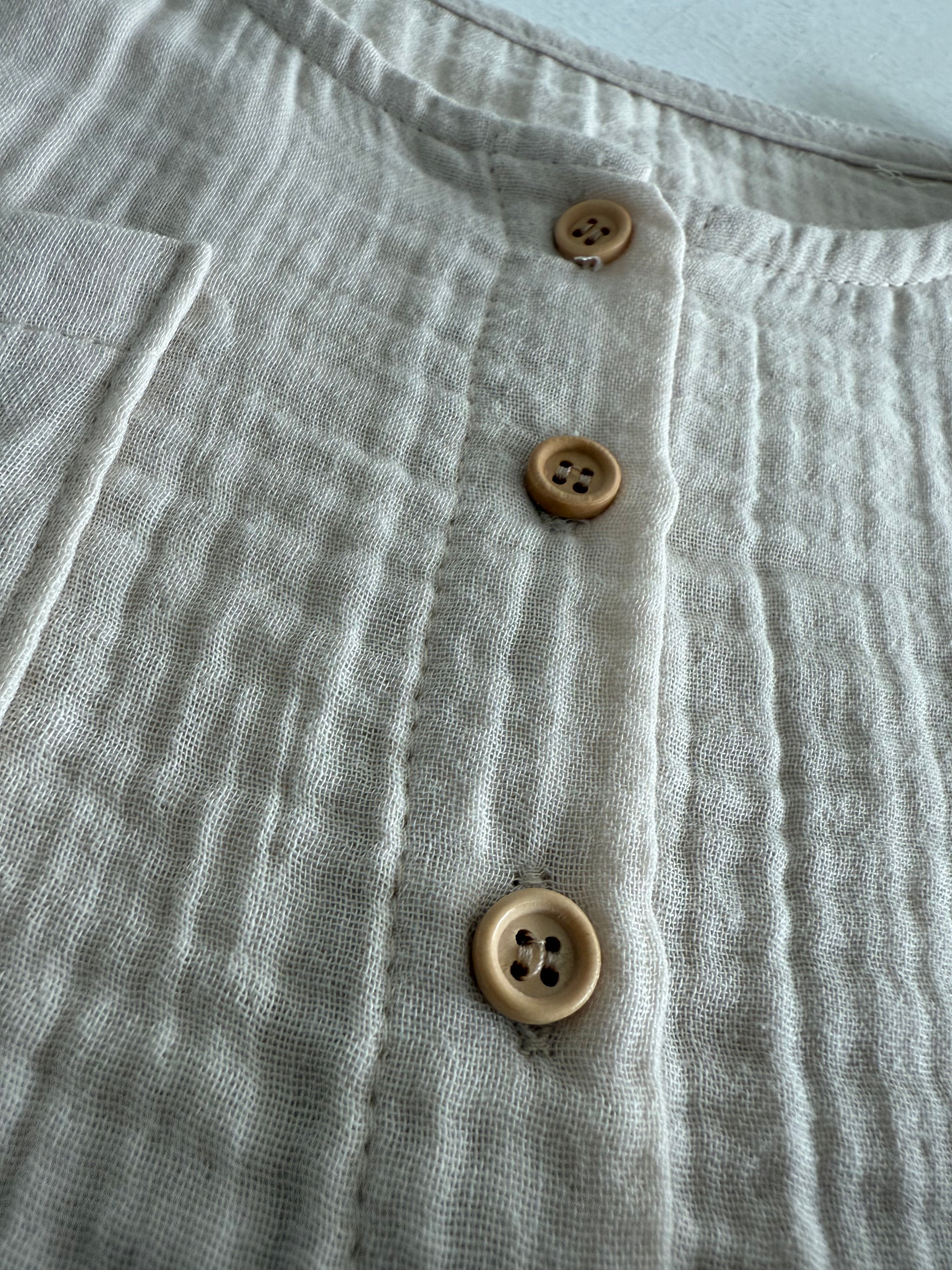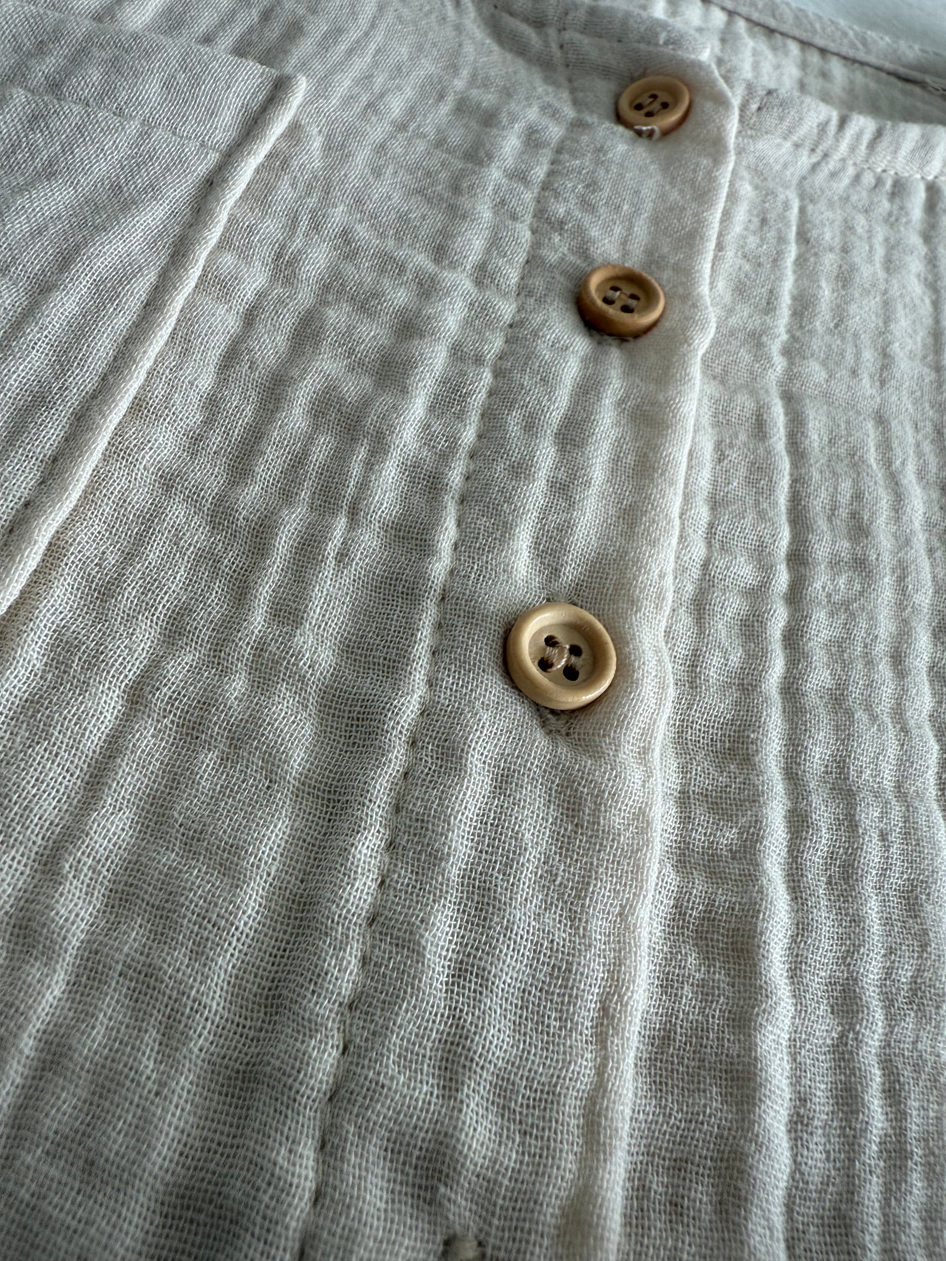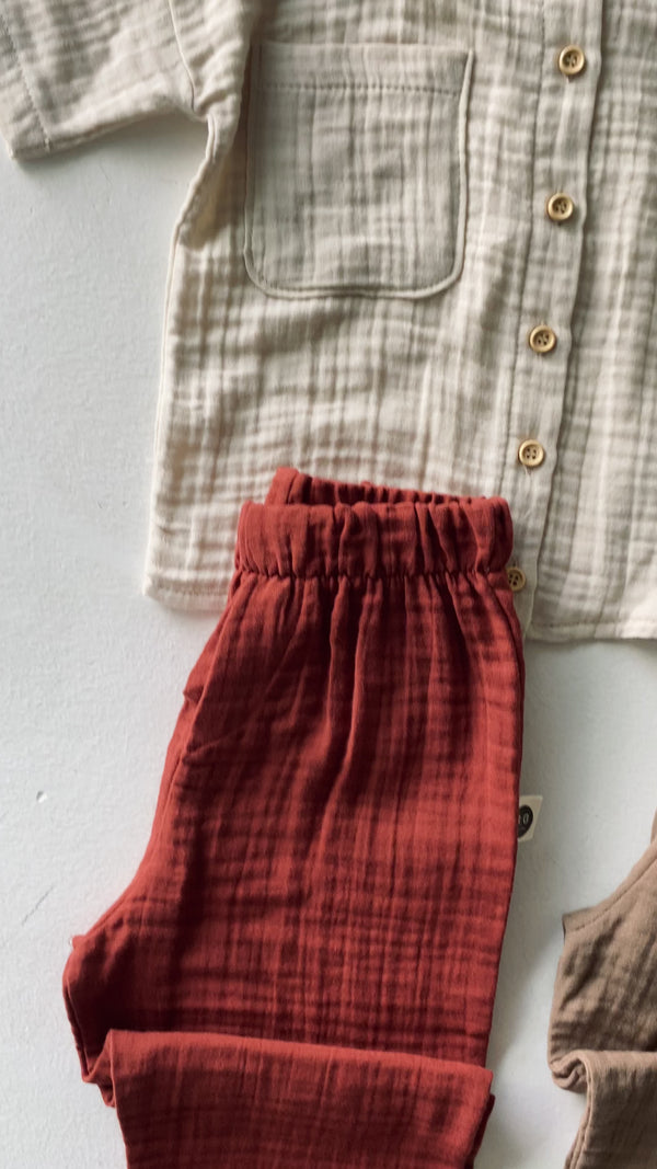 RG Brand's 100% cotton muslin baby set is designed for both girls and boys. The natural and breathable muslin fabric offers excellent comfort for sensitive baby skin. Suitable for newborns to 2 years old, the set boasts a minimalist, timeless design. It combines comfort, style, and functionality for everyday use.