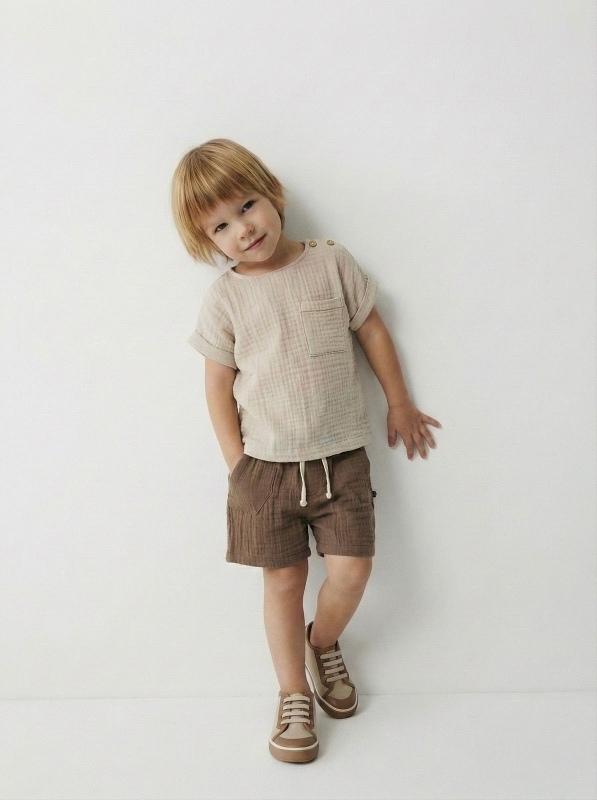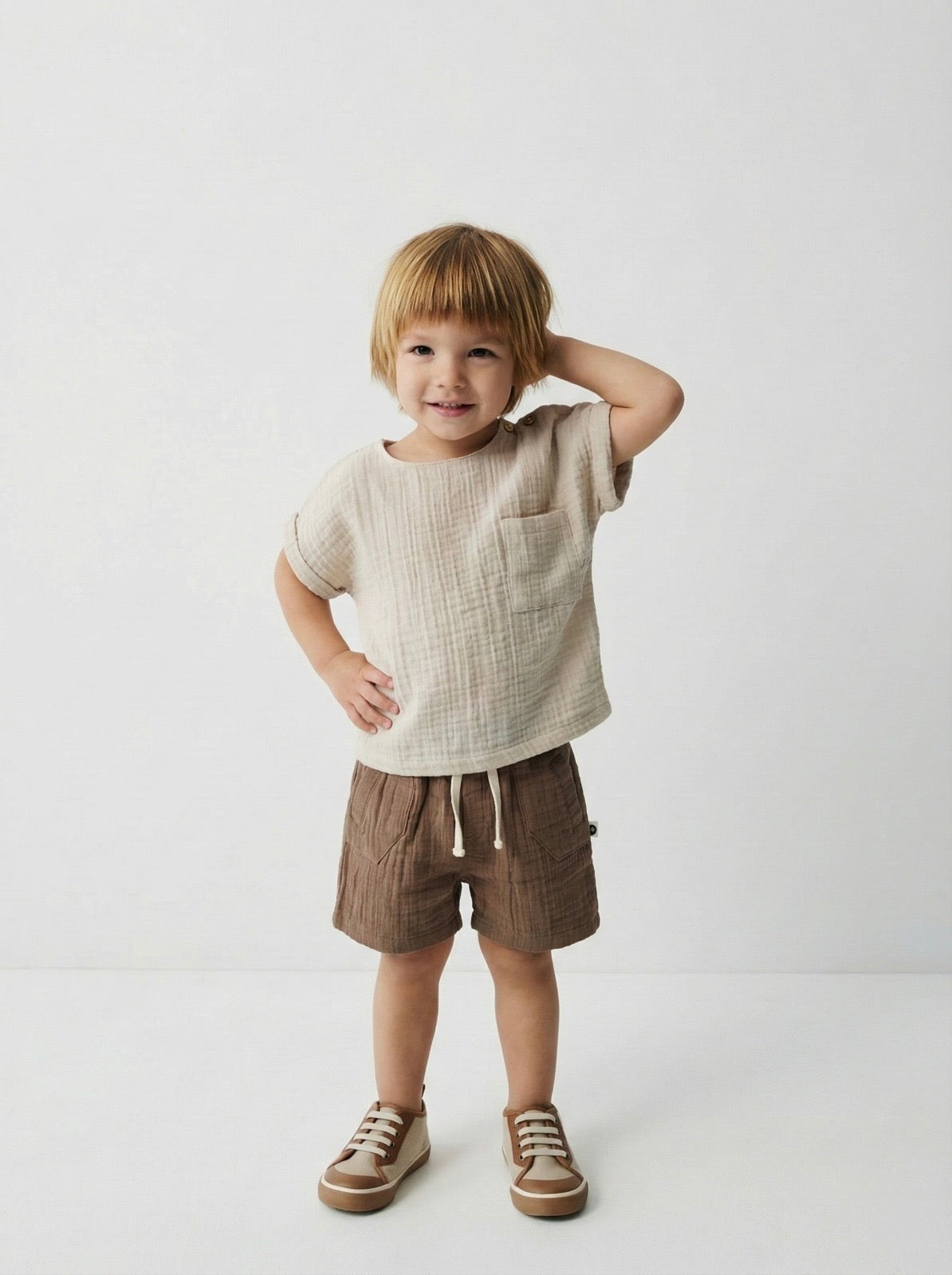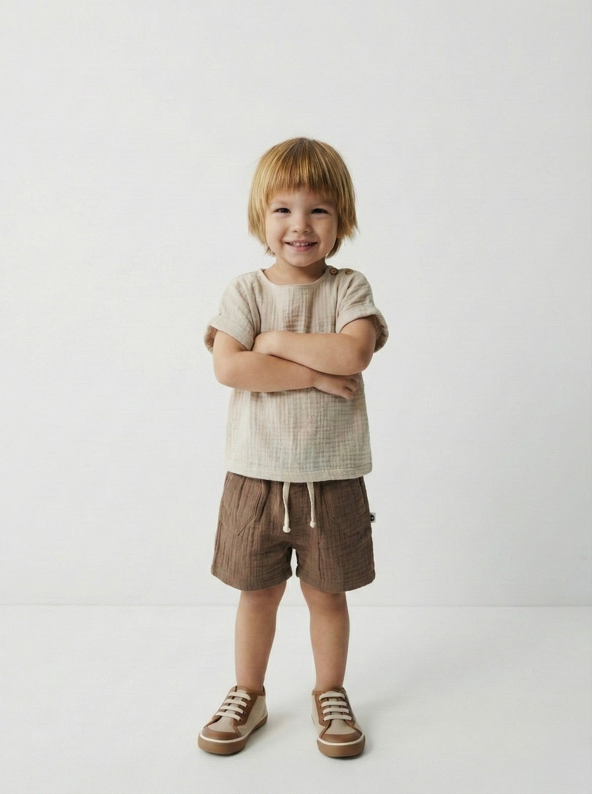 Premium Muslin Baby Set - Natural Comfort A premium shirt and pants set made from 100% natural muslin fabric, carefully designed for your baby's delicate skin. Its soft texture and breathable structure offer maximum comfort for your baby in every season.