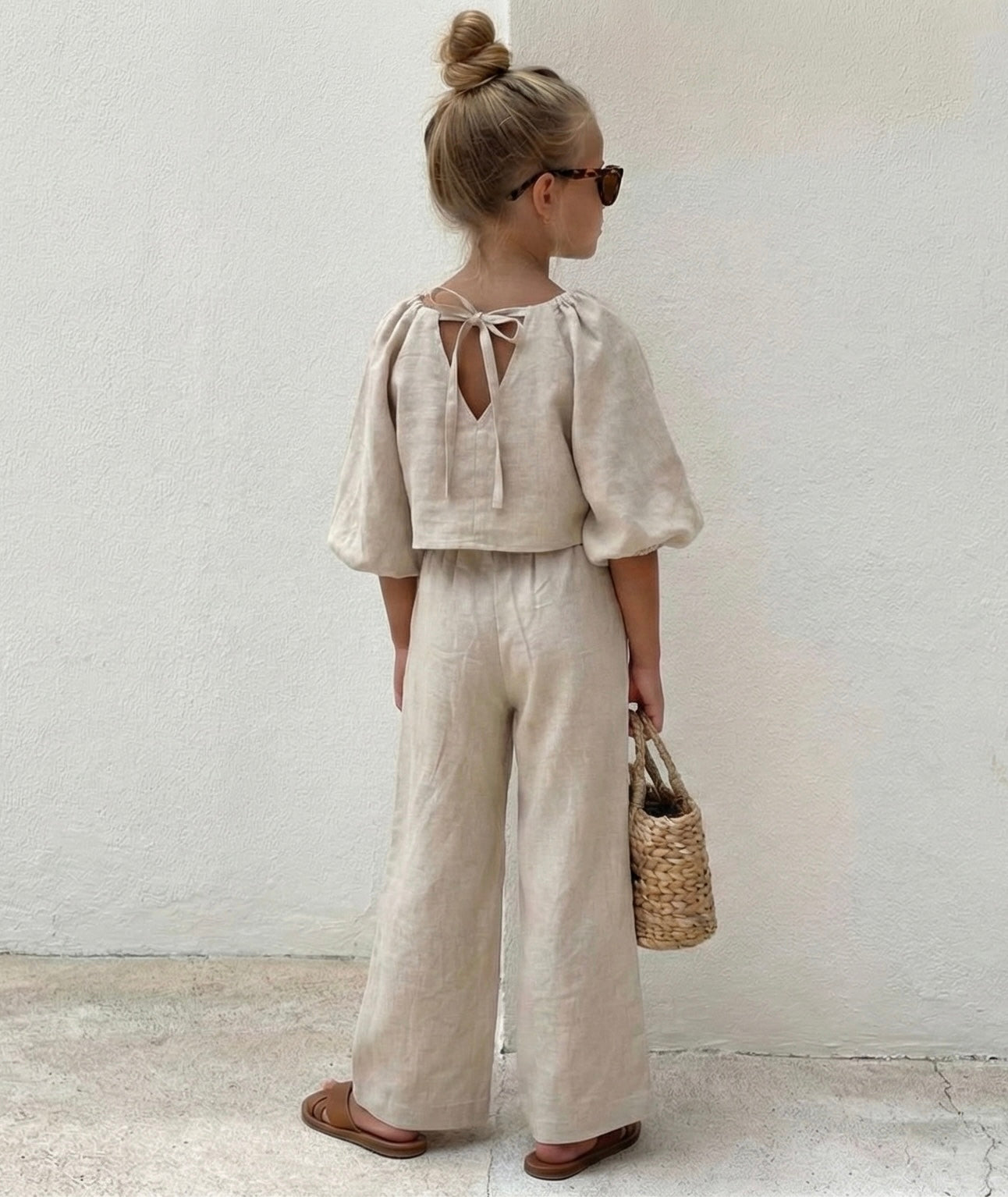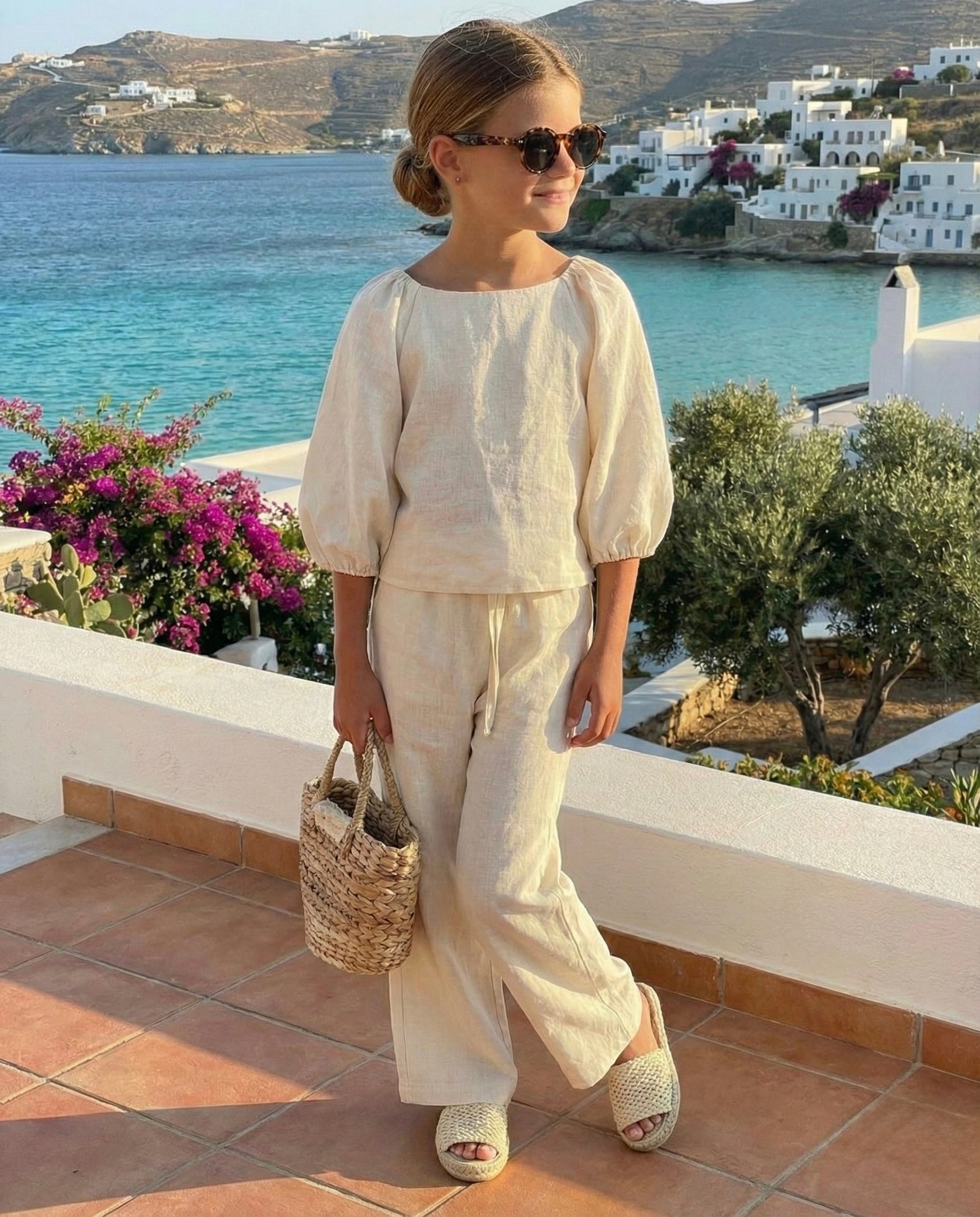 This 100% linen children's blouse set adds elegance and comfort to your child's wardrobe. It highlights their style and elegance during special moments. Add this stylish set to your cart now and complete your child's style!