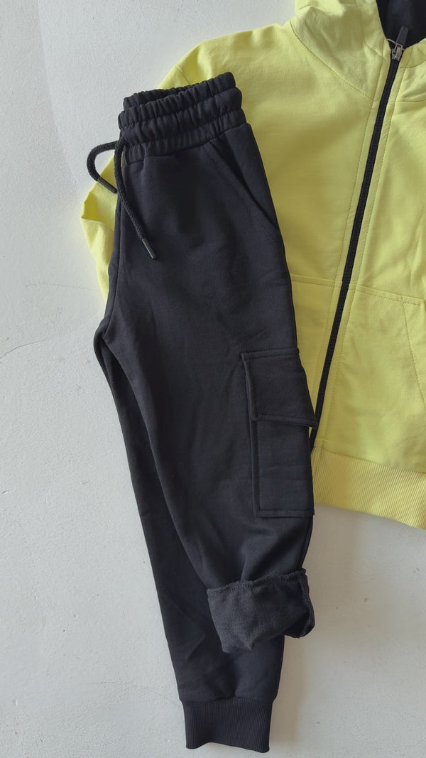 Children's Zippered Hooded Cardigan-Tracksuit Set