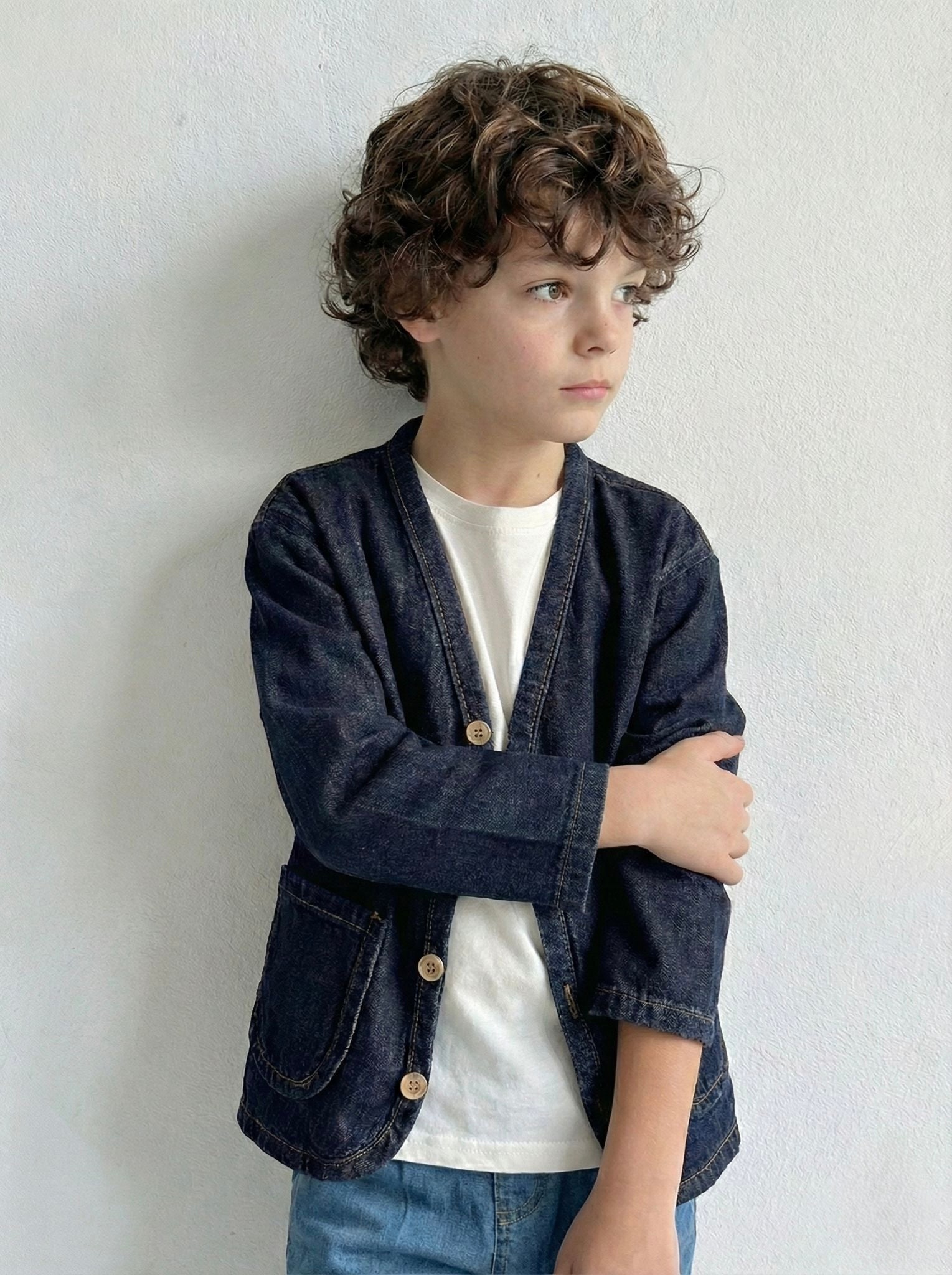 This children's denim jacket, with its oversized fit, offers comfortable wear for boys and girls aged 3-9. Its durable denim construction makes it suitable for everyday outfits. Order now!