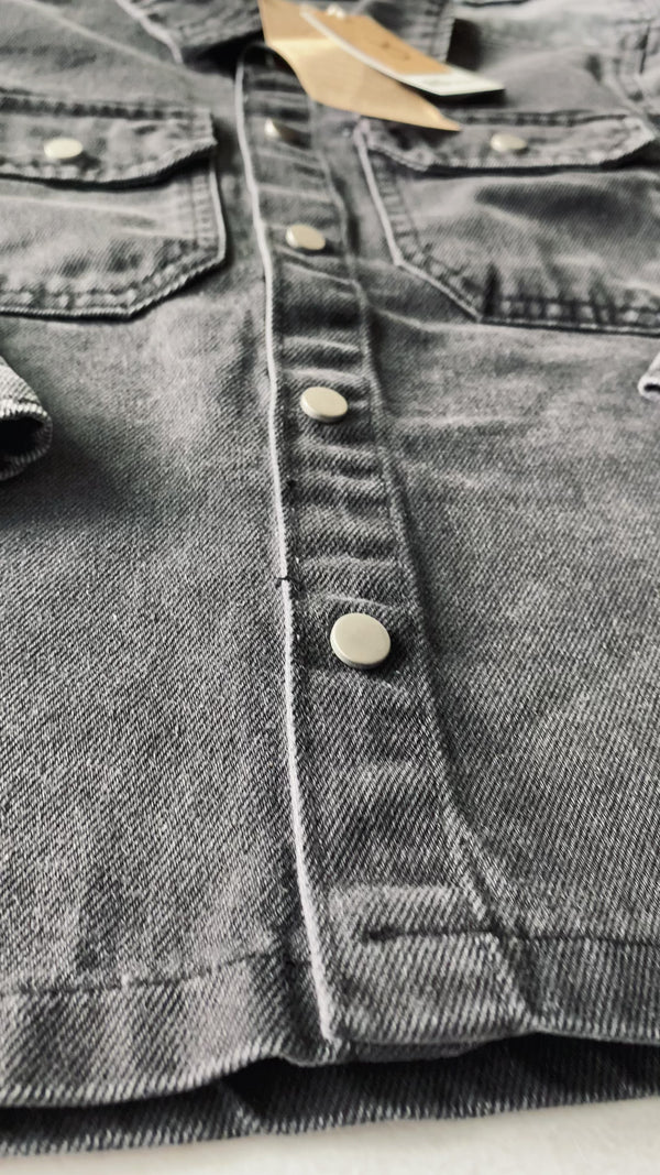 Its oversize cut provides a comfortable and modern look. Durable denim fabric ensures long-lasting use. A button-down front closure and side/front pockets create a functional and stylish design. Its unisex design adapts to everyone's style. It can be used as lightweight outerwear during seasonal transitions.