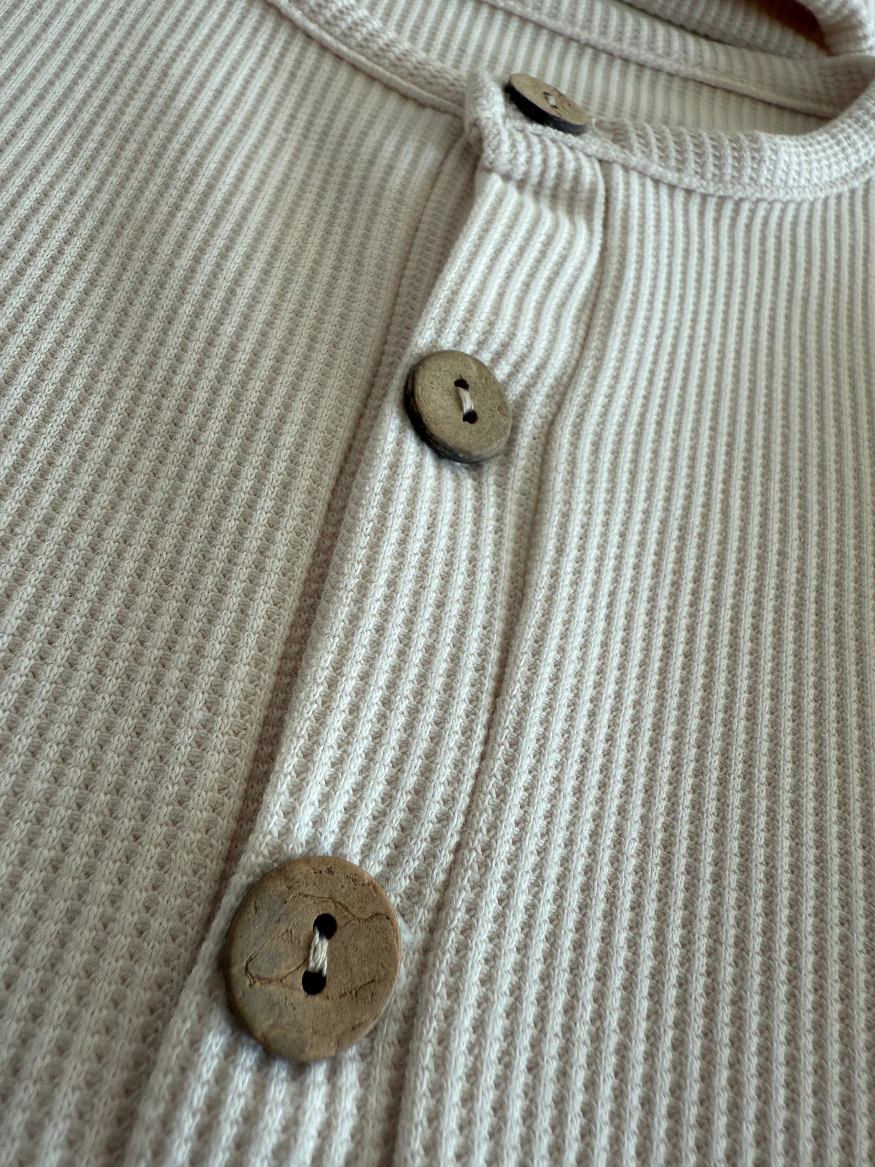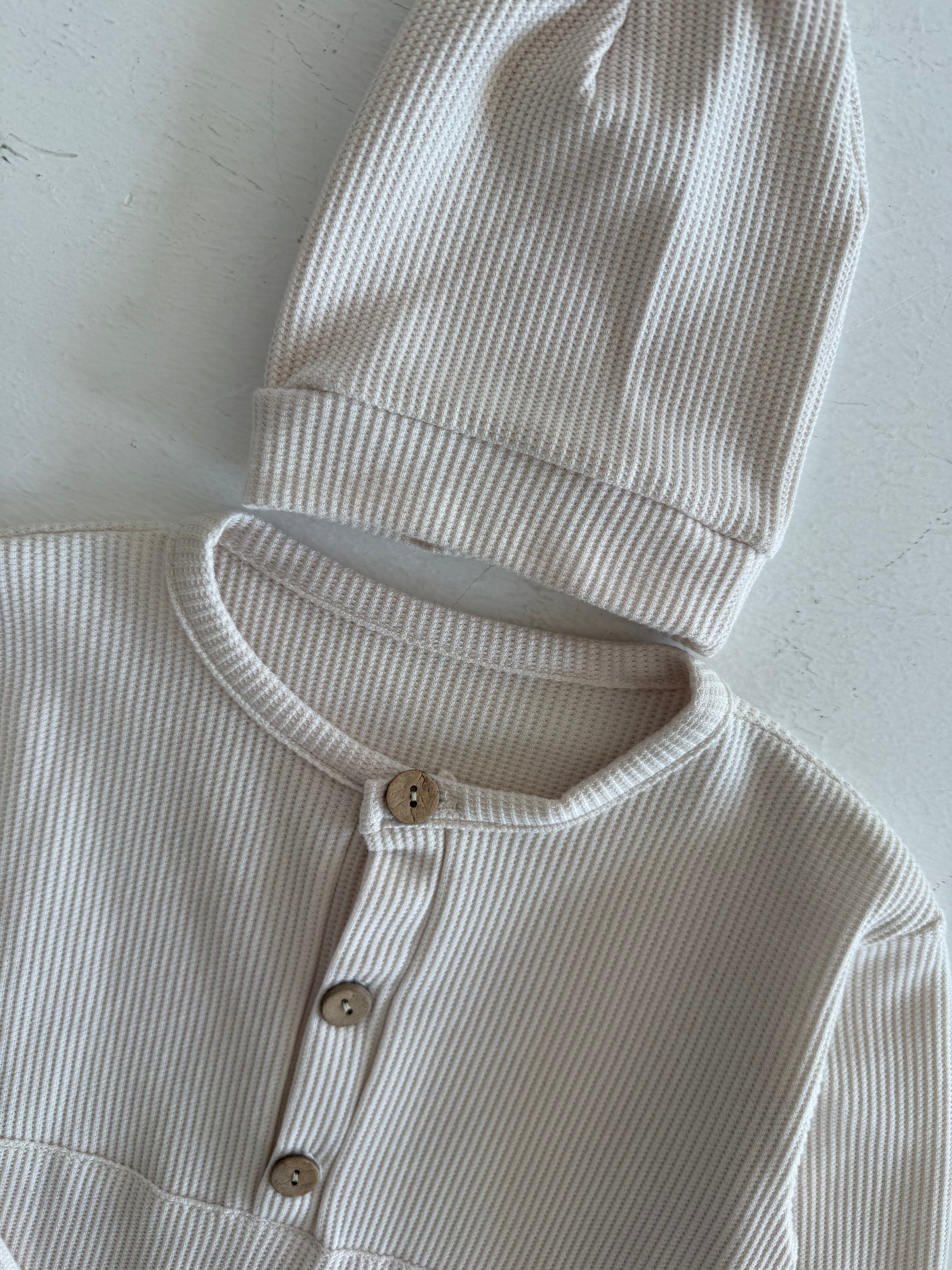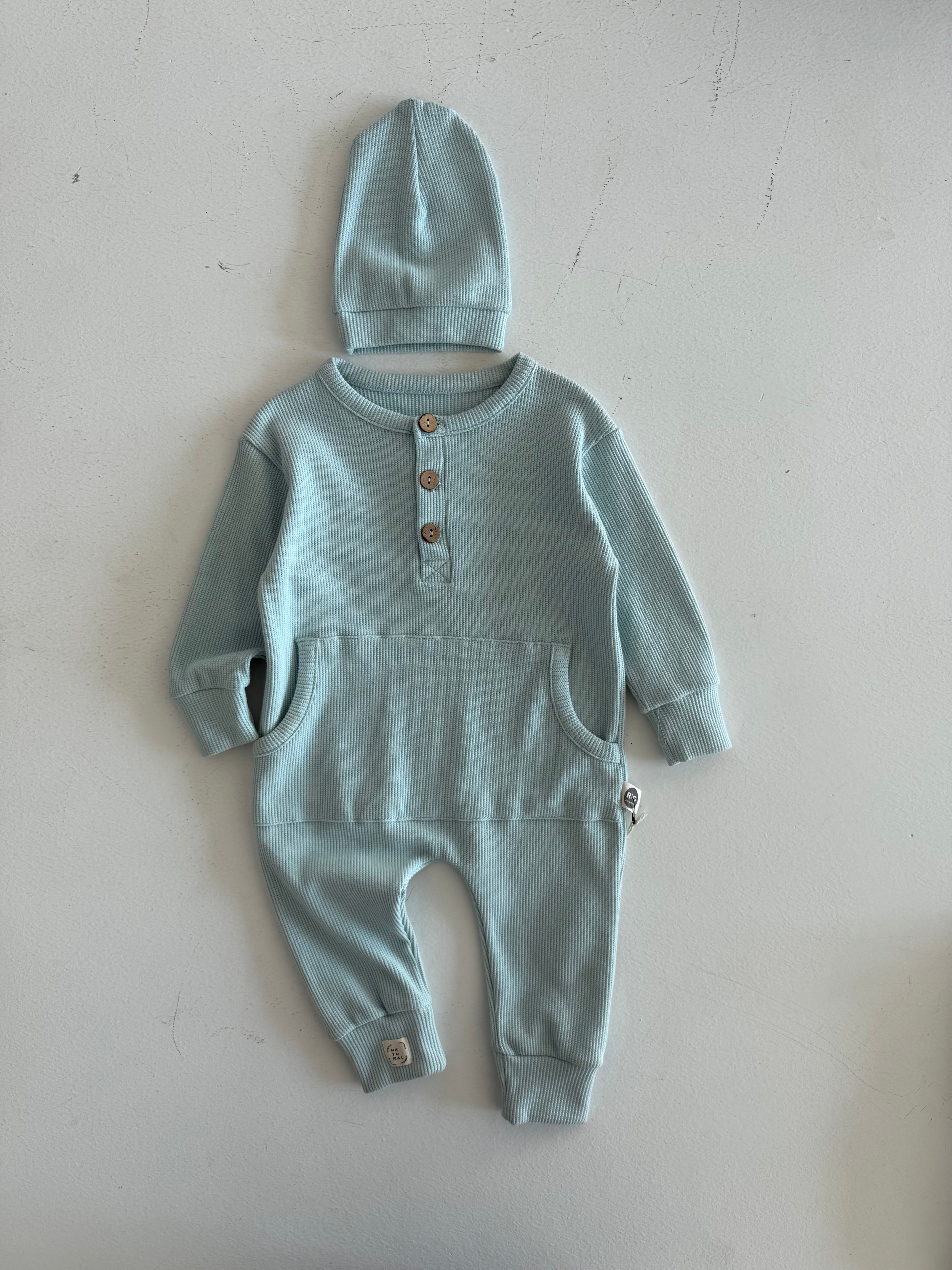 Half Button Natural Waffle Baby Romper and Beanie