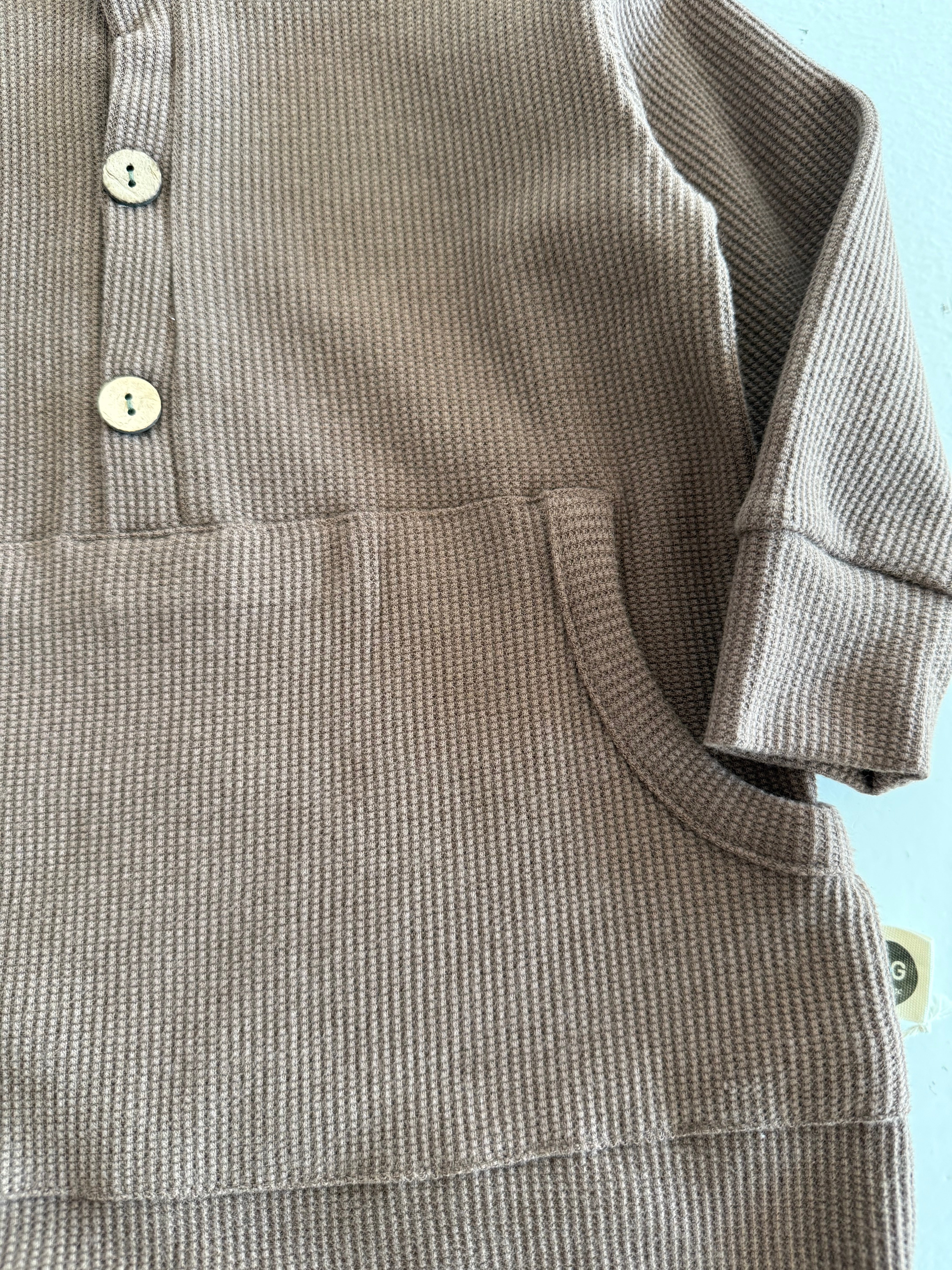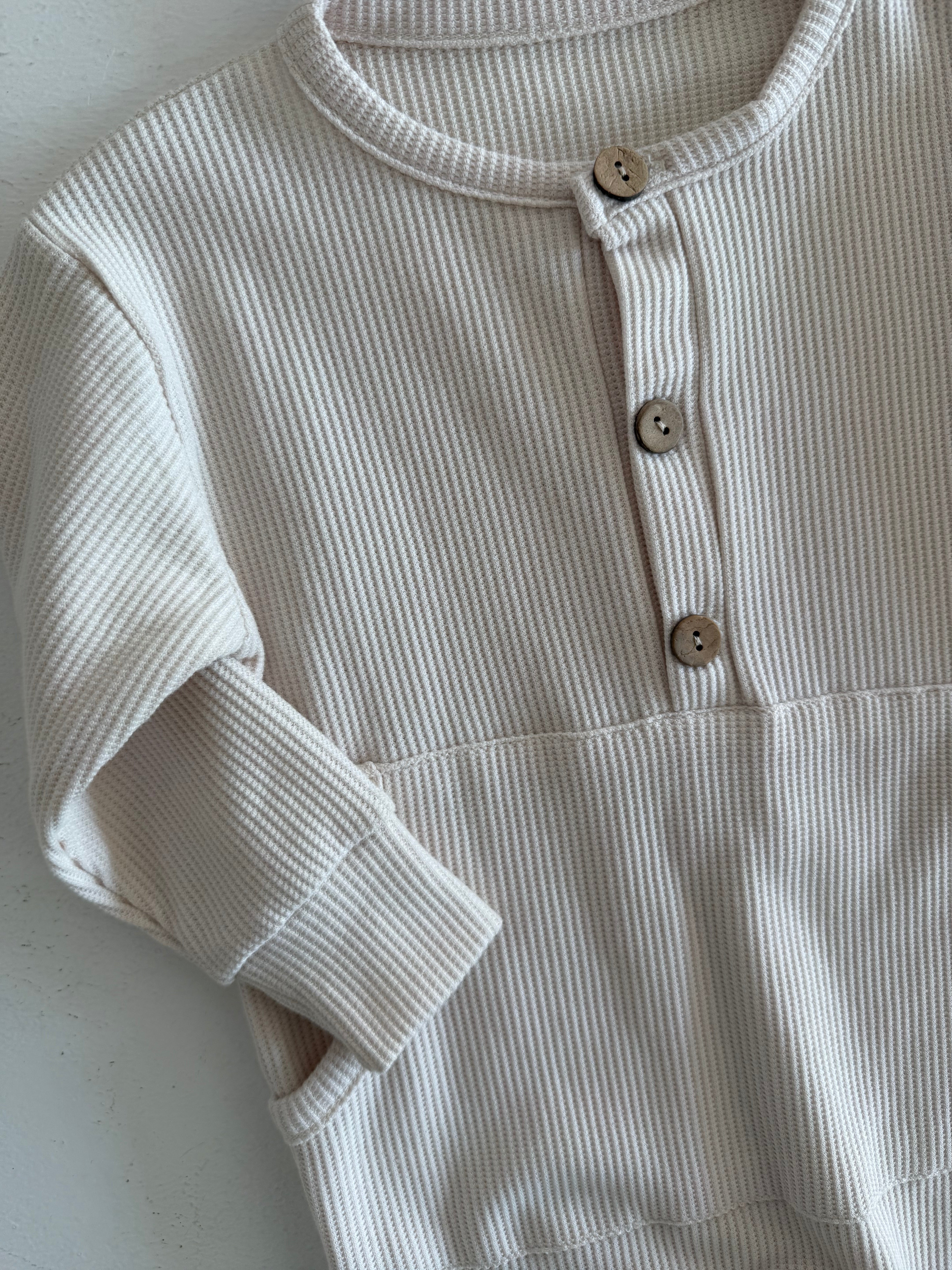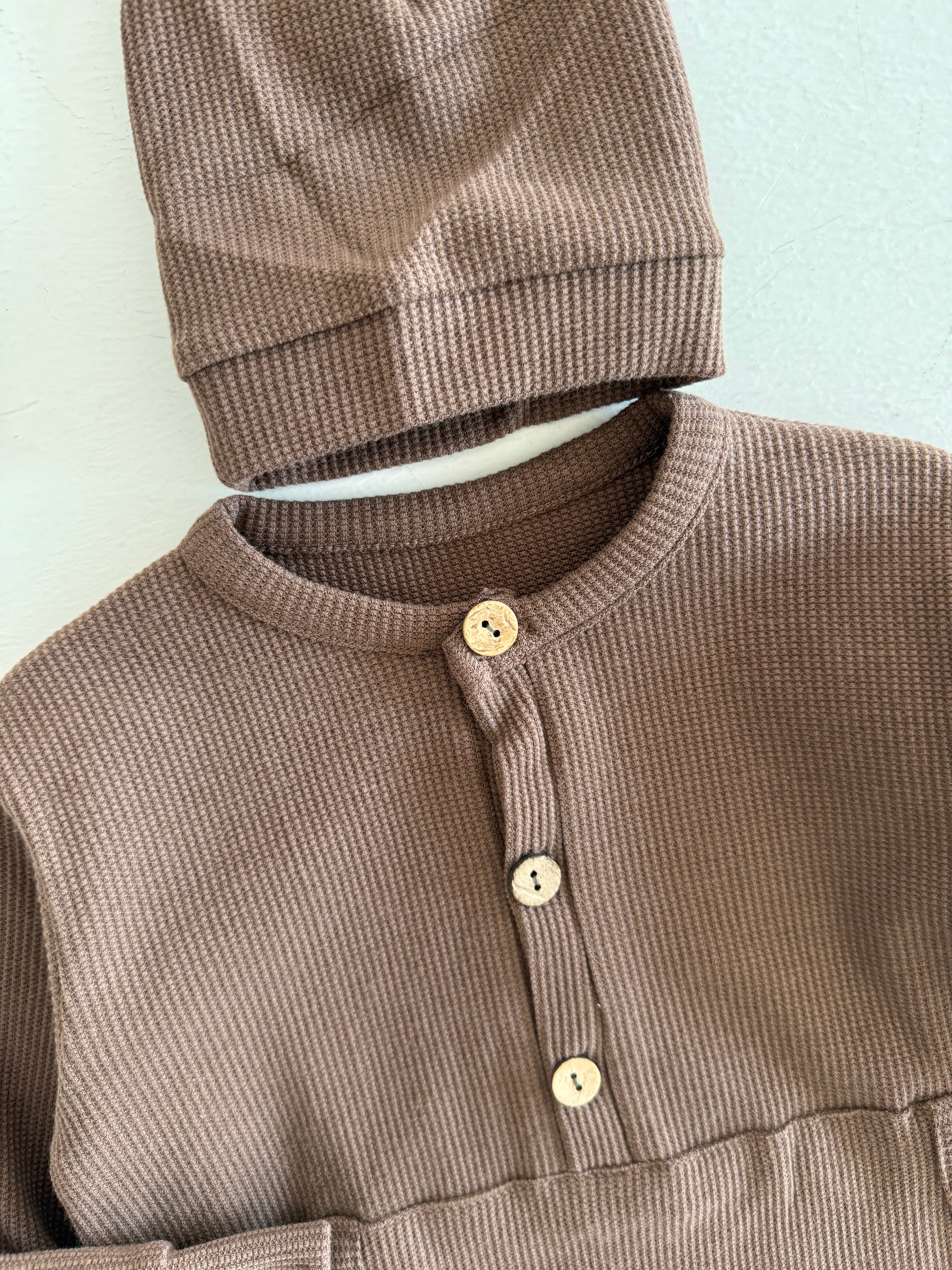 Half Button Natural Waffle Baby Romper and Beanie