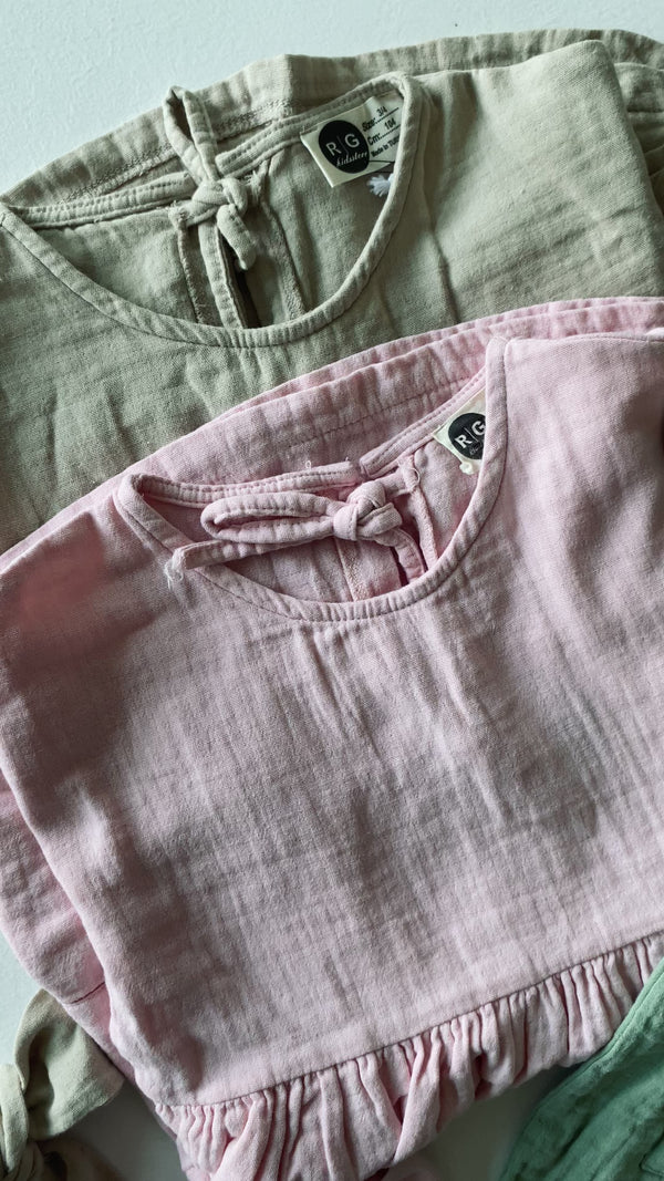 Organic Cotton Muslin Fabric Children's Dress with Pockets