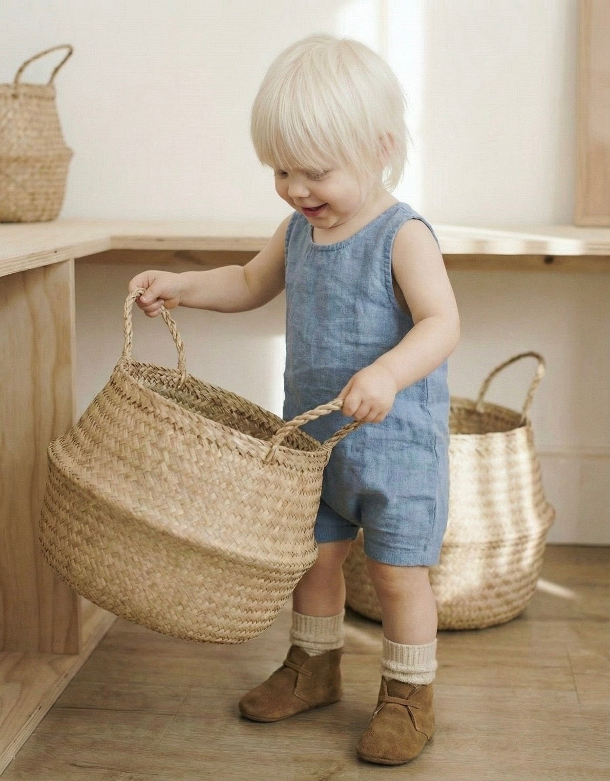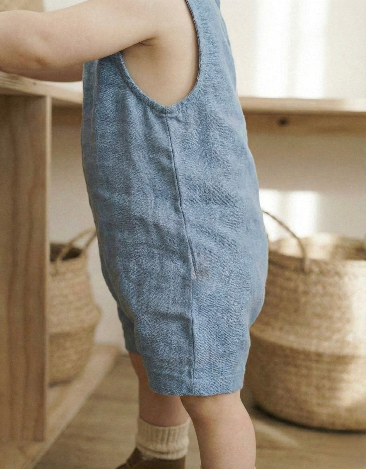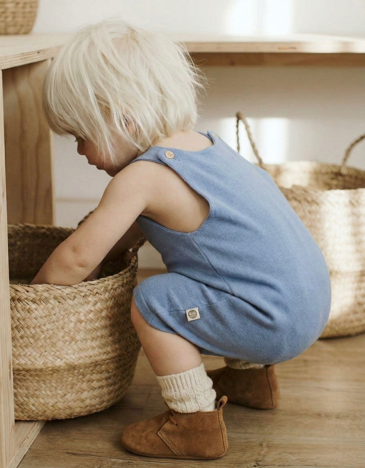 Available in blue and beige, these overalls offer a simple and natural look and can be easily combined with different tops. Suitable for everyday wear at home, outdoors, and on outings, this cotton baby romper confidently meets your baby's comfort needs with its lightweight and breathable fabric.