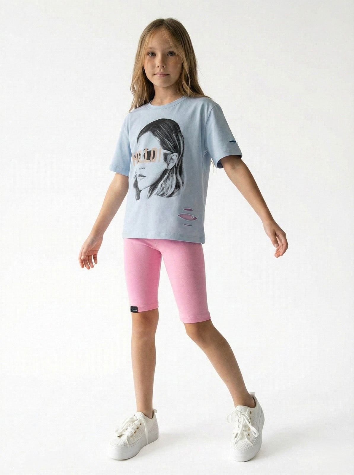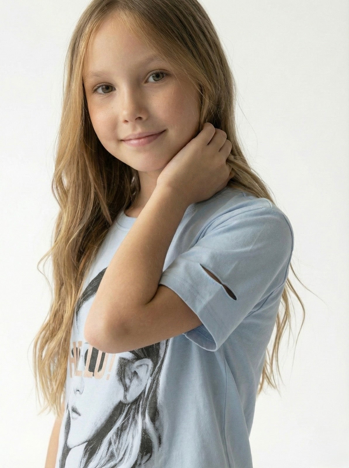 This basic t-shirt with a girl's print is made of soft and breathable cotton fabric for ages 9-15. Its relaxed fit offers comfort and freedom of movement for everyday wear.