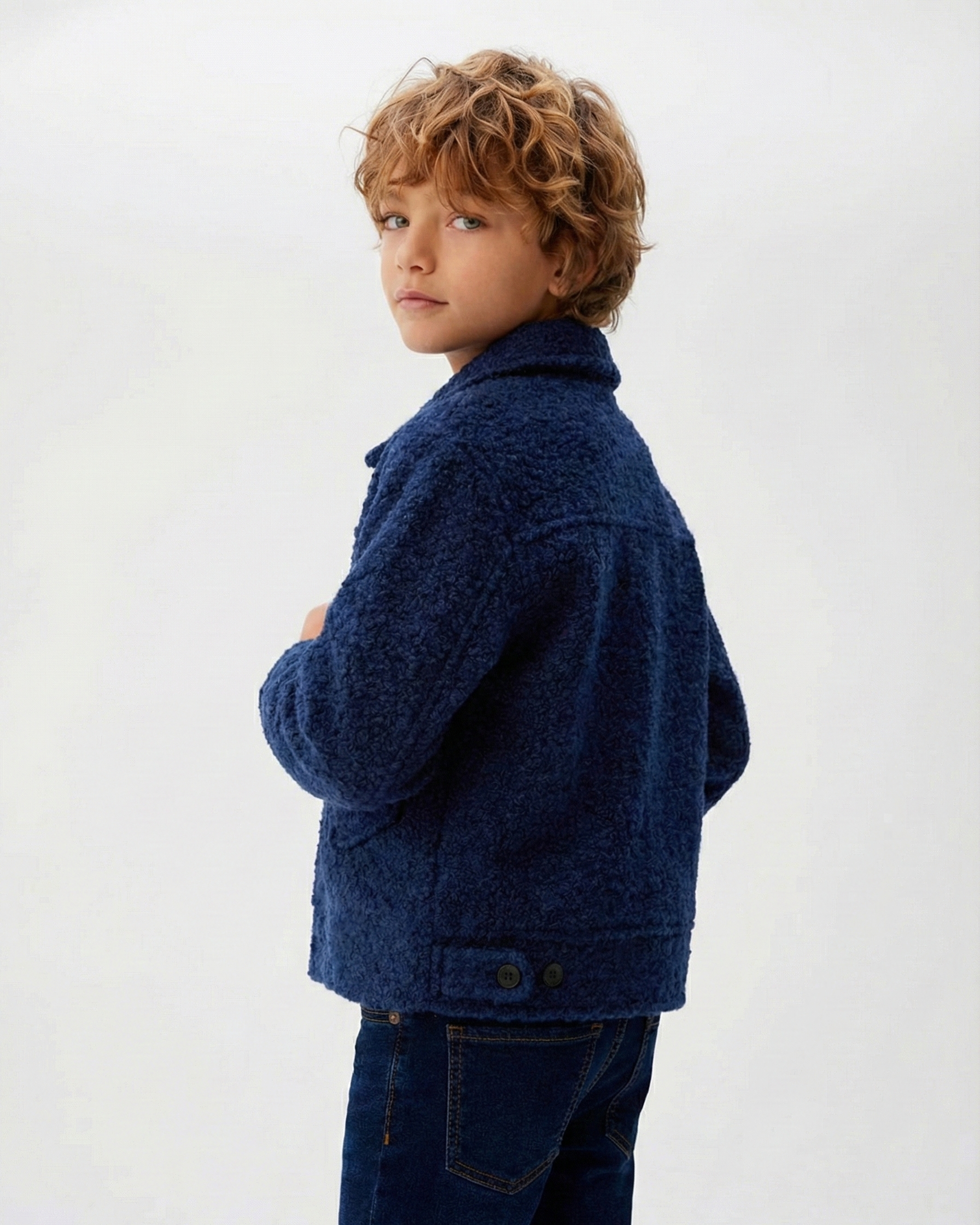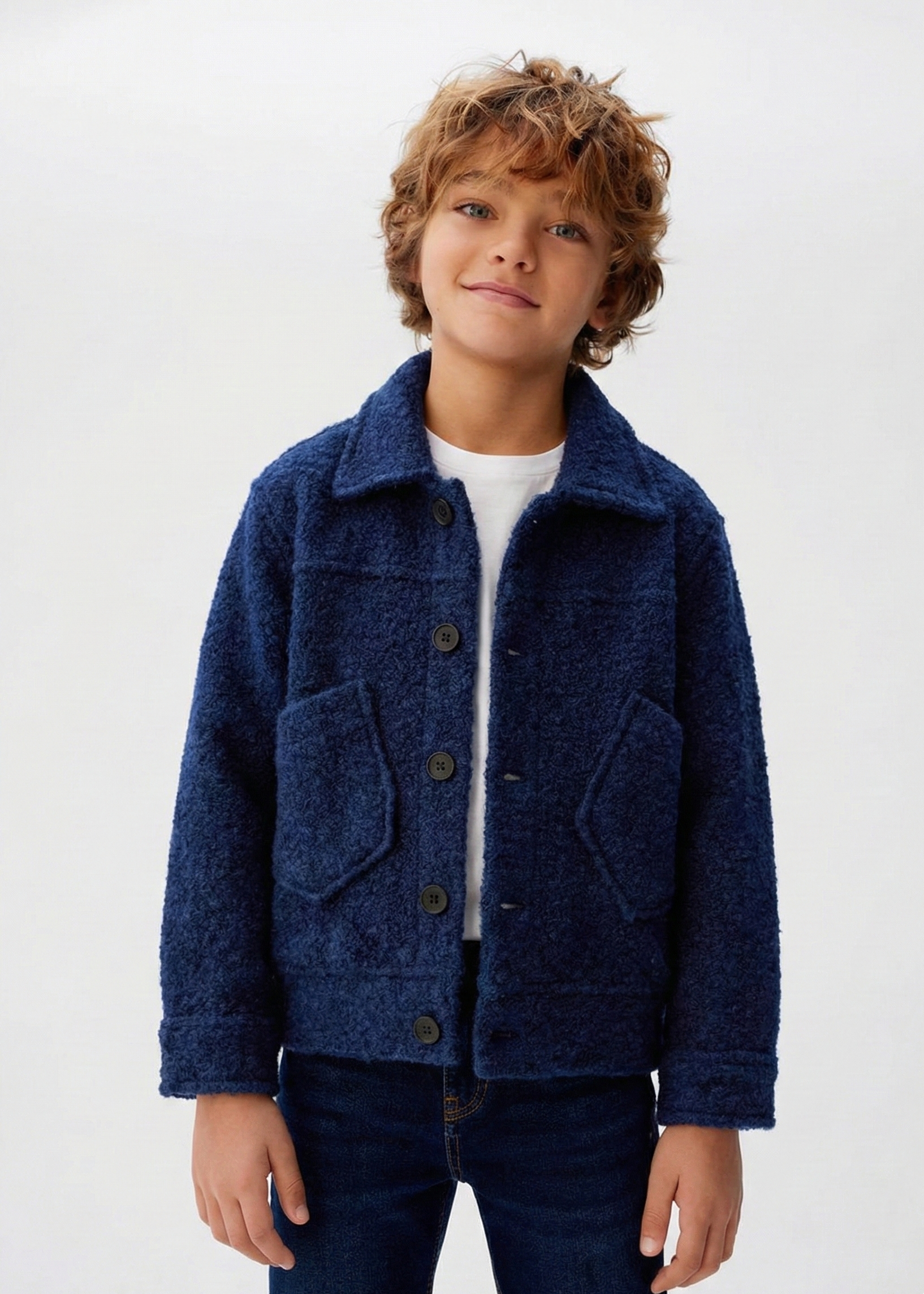Çocuk Düğme Detaylı Cepli Ceket Kız & Erkek 3–9 Yaş | Pudra, Lacivert | RG1442