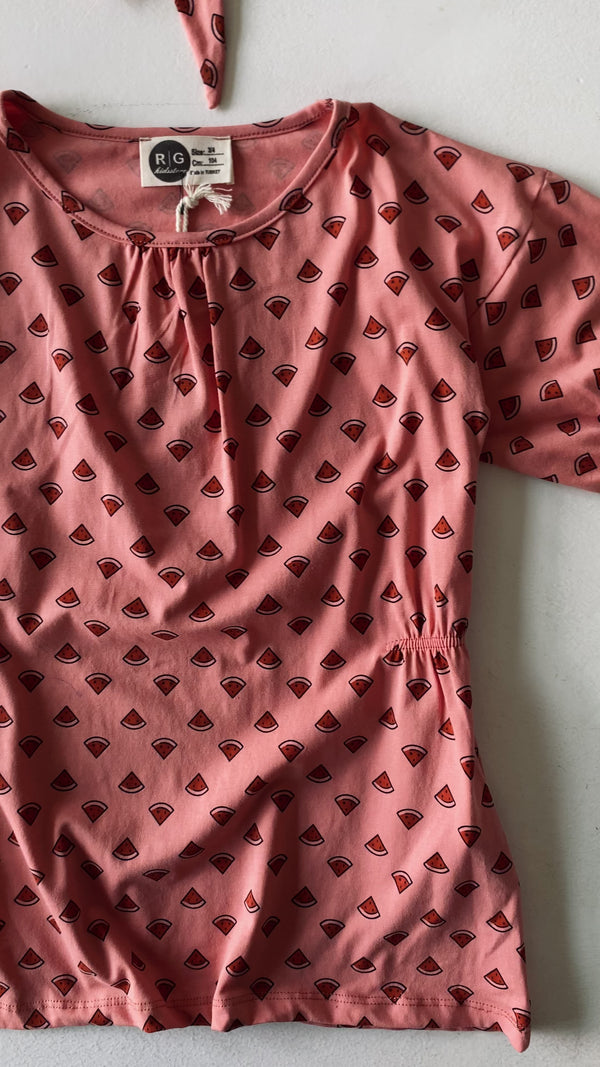 Kız Çocuk Karpuz Baskılı Elbise ve Saç Tokası 3-9 Yaş