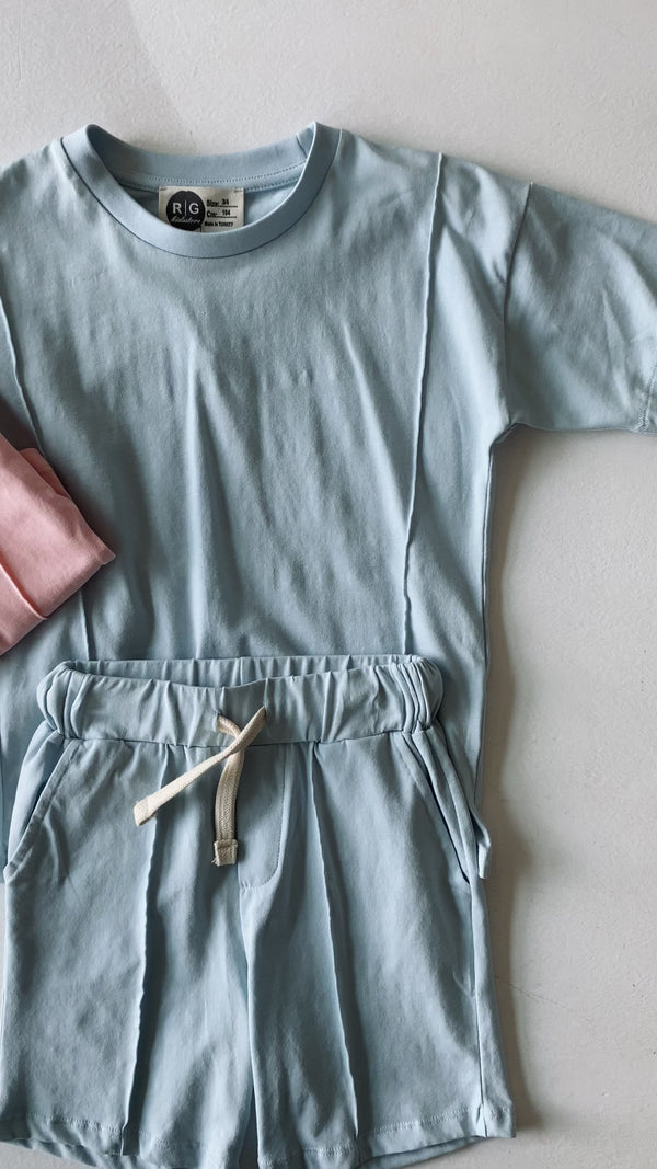 Çocuk unisex pamuk şort takımı, çocuğunuzun gardırobuna şıklık ve rahatlık katarken, onun tarzını da yansıtır. Bu rahat ve çok yönlü takımı hemen sepetinize ekleyin ve çocuğunuzun günlük stilini tamamlayın!