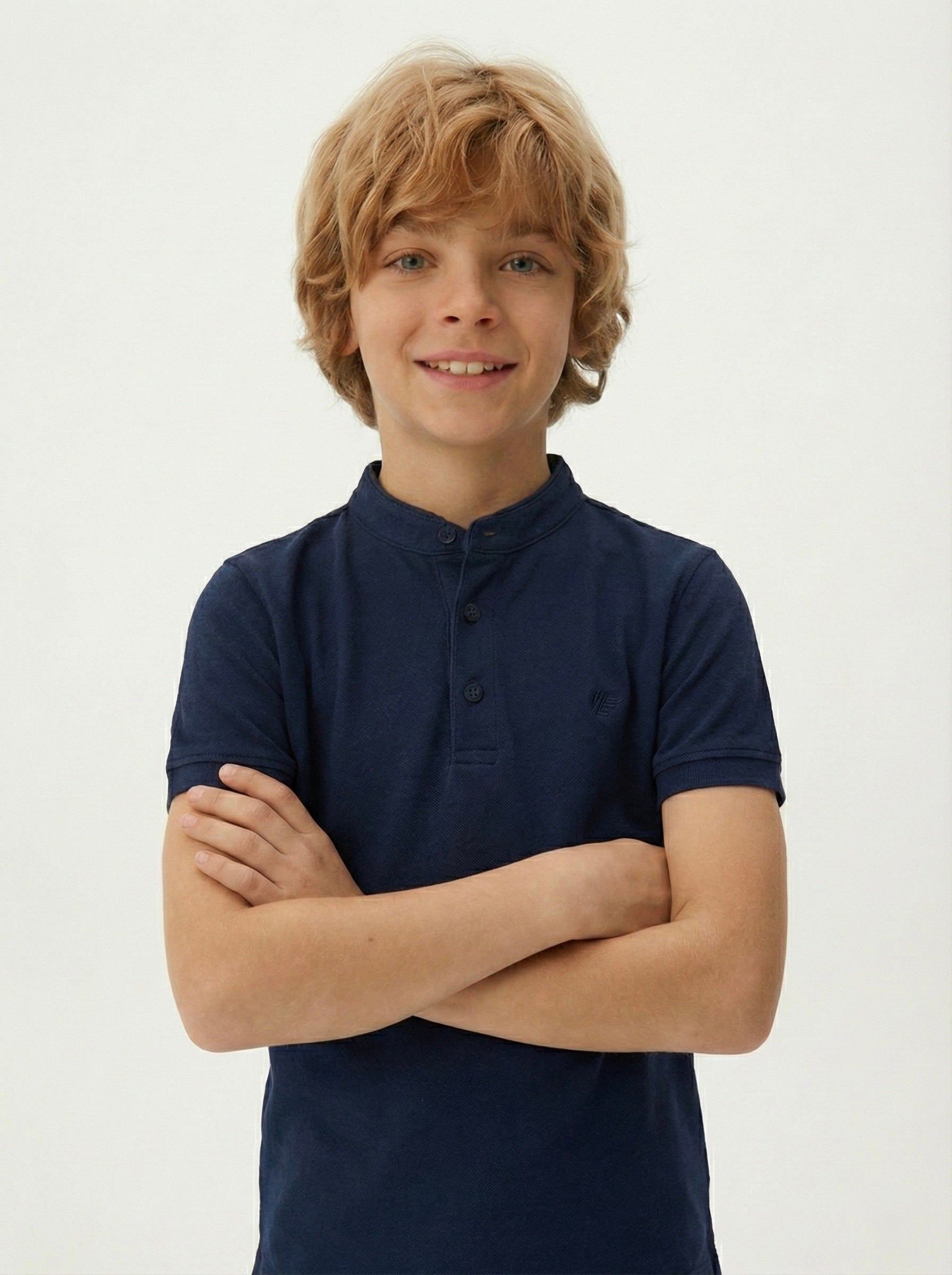 Bu erkek çocuk hakim yaka pike t-shirt, %100 pamuk pike kumaştan üretilmiştir. Doğal pamuk ipliklerinden elde edilen dokusu sayesinde nefes alabilen, yumuşak ve cilde dost bir yapı sunar. Hakim yaka tasarımı ile klasik ve modern duruşu bir arada sunarken, pike kumaş yapısı dört mevsim kullanım için idealdir. Günlük kullanımın yanı sıra okul ve özel gün kombinleri için de uygundur.