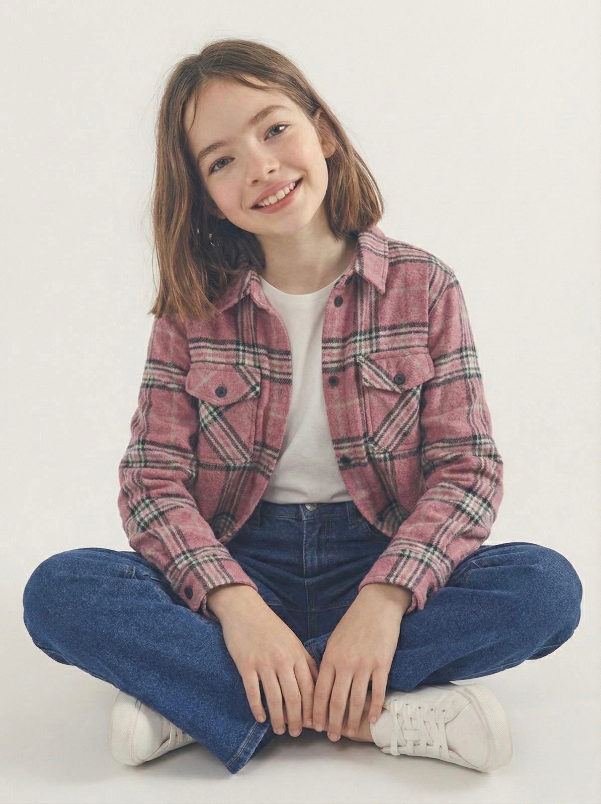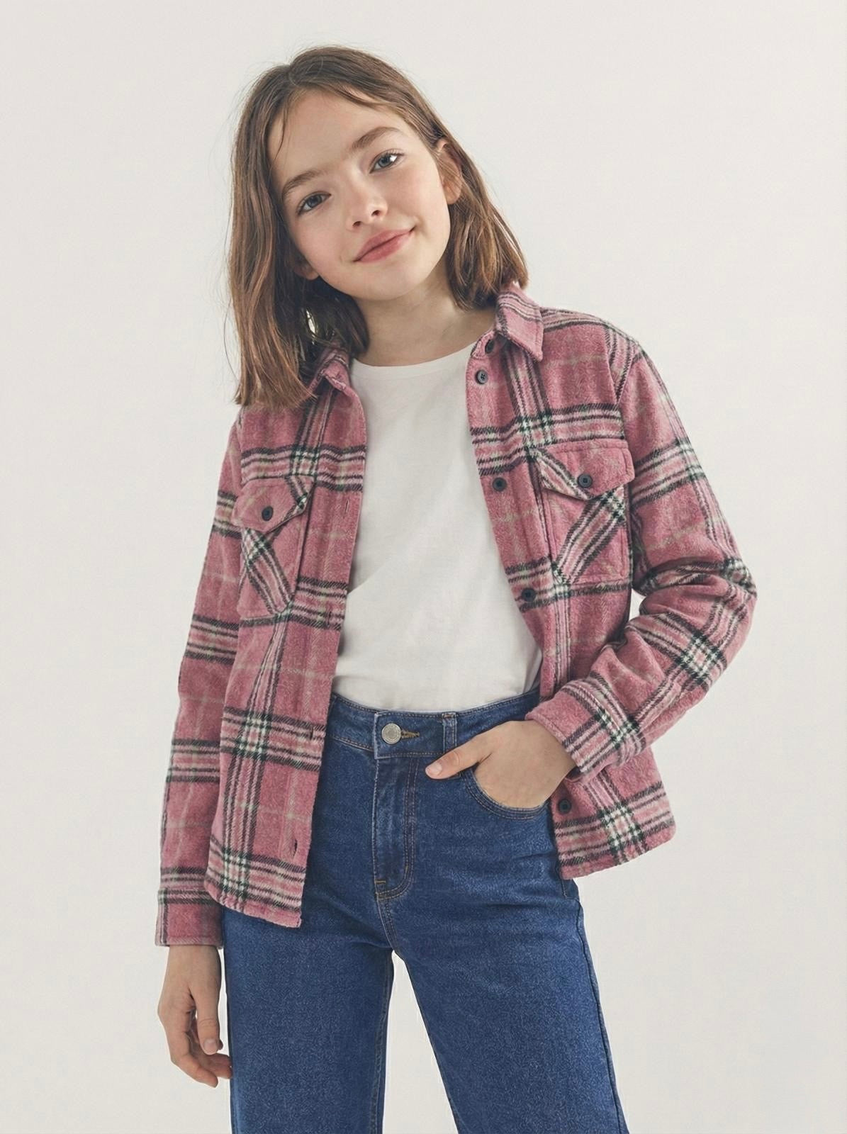Genç çocuk ekose gömlek, 9–15 yaş arası kız ve erkek çocuklar için kış mevsimine uygun olarak tasarlanmıştır. Oduncu gömlek stilinden ilham alan kareli deseni ve tok yapılı kumaşı sayesinde hem sıcak tutar hem de güçlü bir stil sunar. Cepli tasarımı, klasik ekose gömlek görünümünü daha fonksiyonel ve modern hale getirir.