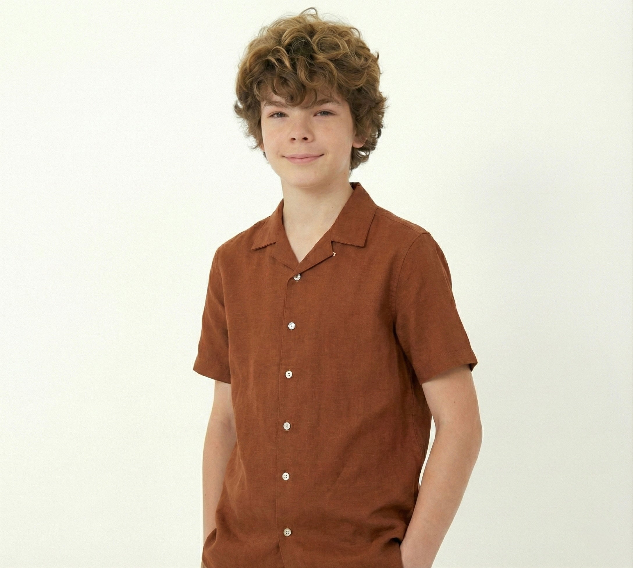 Genç Apaş Yaka Kısa Kollu Gömlek | %100 Pamuk Keten | 9-15 Yaş | RG3383
