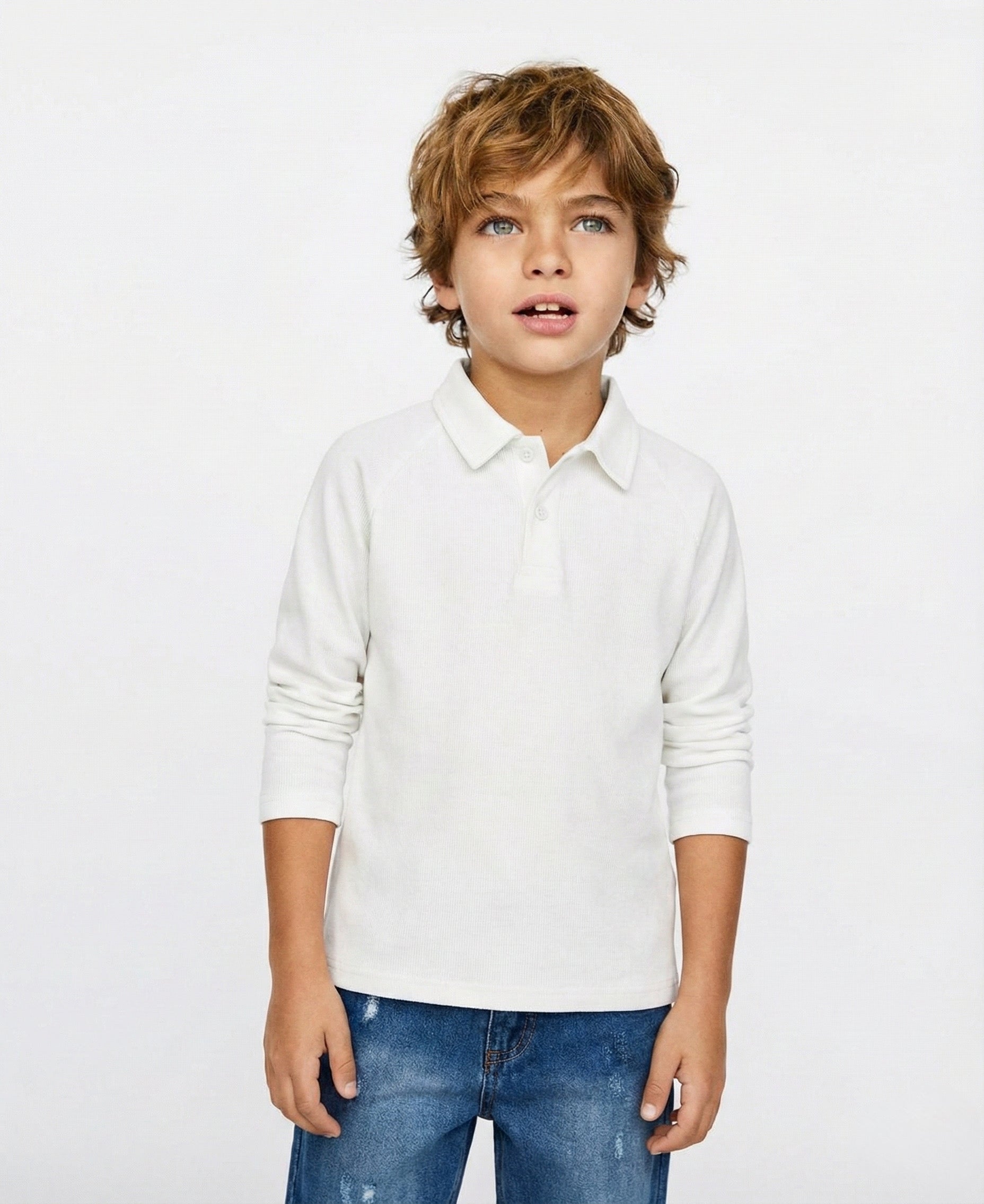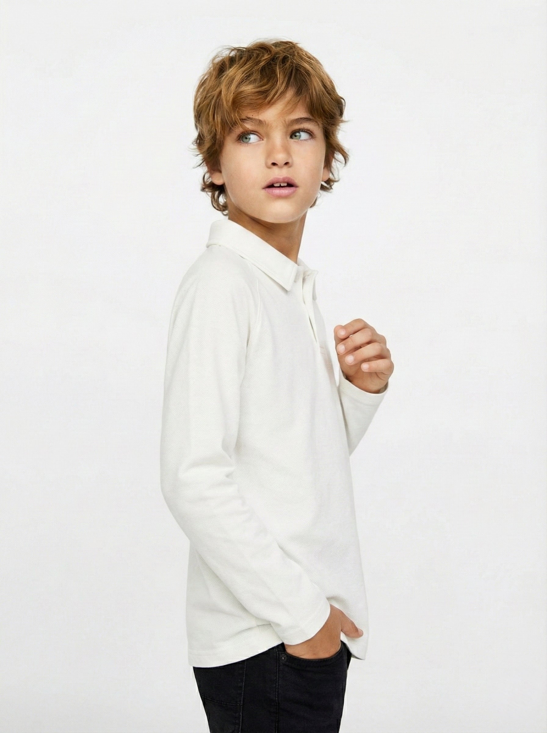 Genç Polo Yaka Uzun Kollu Pamuk Tişört | Günlük Rahat | 9-15 Yaş | RG3411