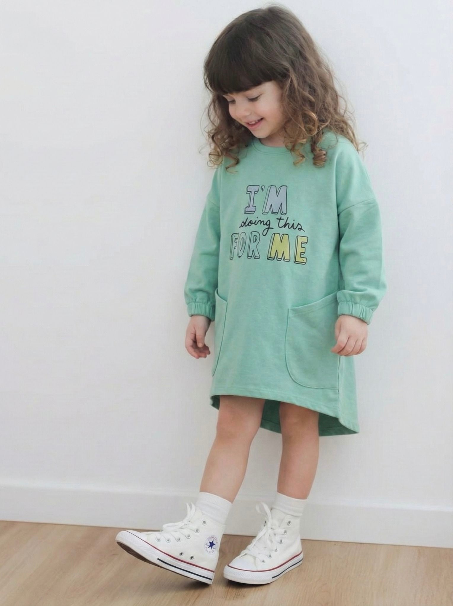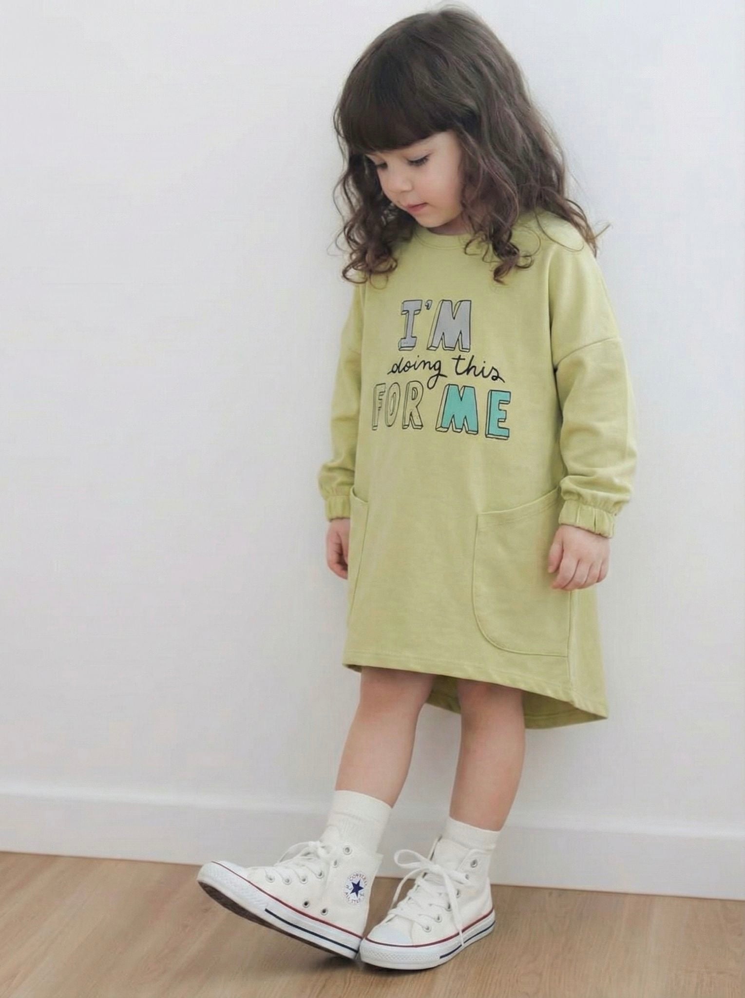 Günlük Penye Kız Çocuk Elbisesi | Çift Cepli, %100 Pamuk | Rahat Kesim, 4 Mevsim | 3-9 Yaş | RG1405