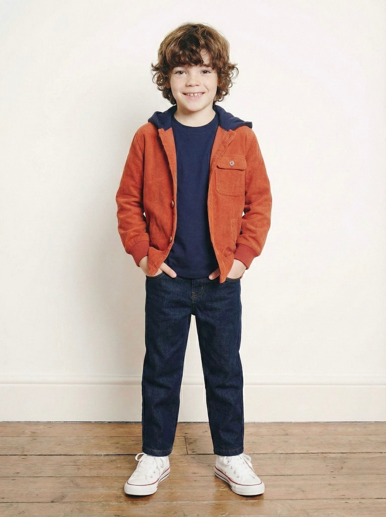 Kadife Kapüşonlu Çocuk Gömlek | İç Tişörtlü, Şık & Rahat Tasarım | Lacivert, Kahverengi, Kiremit | RG1720
