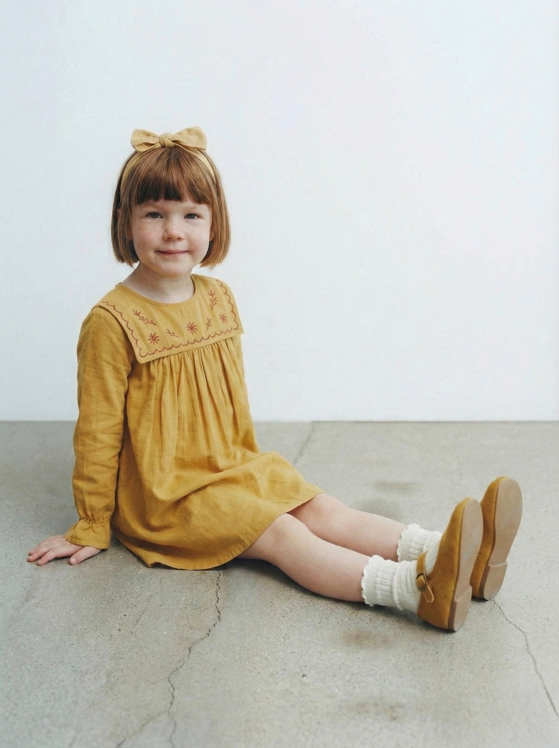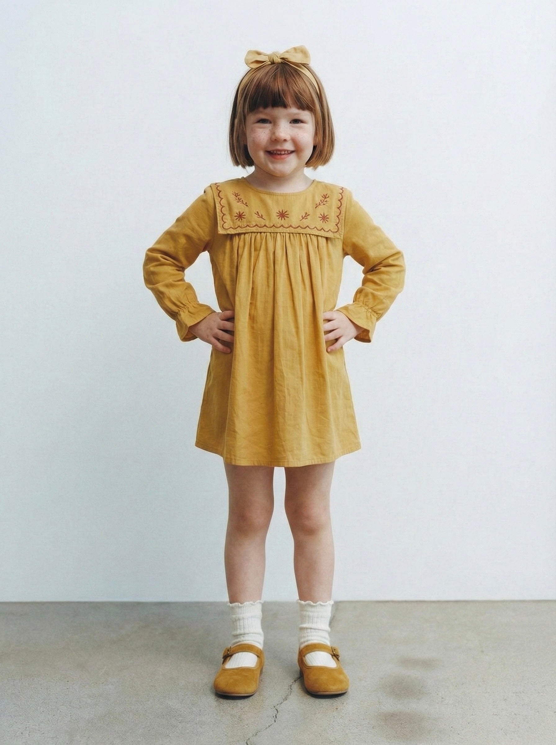 Kız Çocuk Elbise | %100 Doğal Pamuk, Soft Yakalı, Uzun Kollu, 3-9 Yaş | RG1712