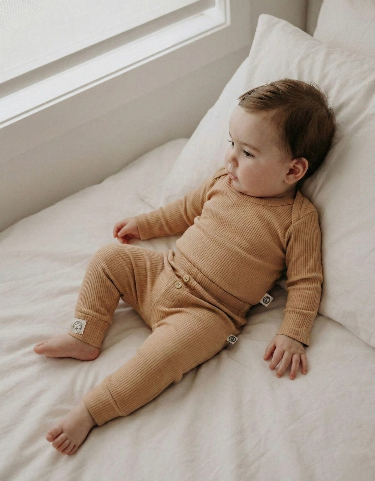 Kız ve erkek bebek zıbın pantolon takım seti, bebek giyim kategorisinde hassas ciltler düşünülerek tasarlanmış, lyocell ve doğal pamuklu kumaşı ile öne çıkan konforlu bir settir. Yumuşak dokusu ve nefes alabilen yapısı, gün boyu rahatlık sunarken ciltle uyumlu kullanım sağlar.