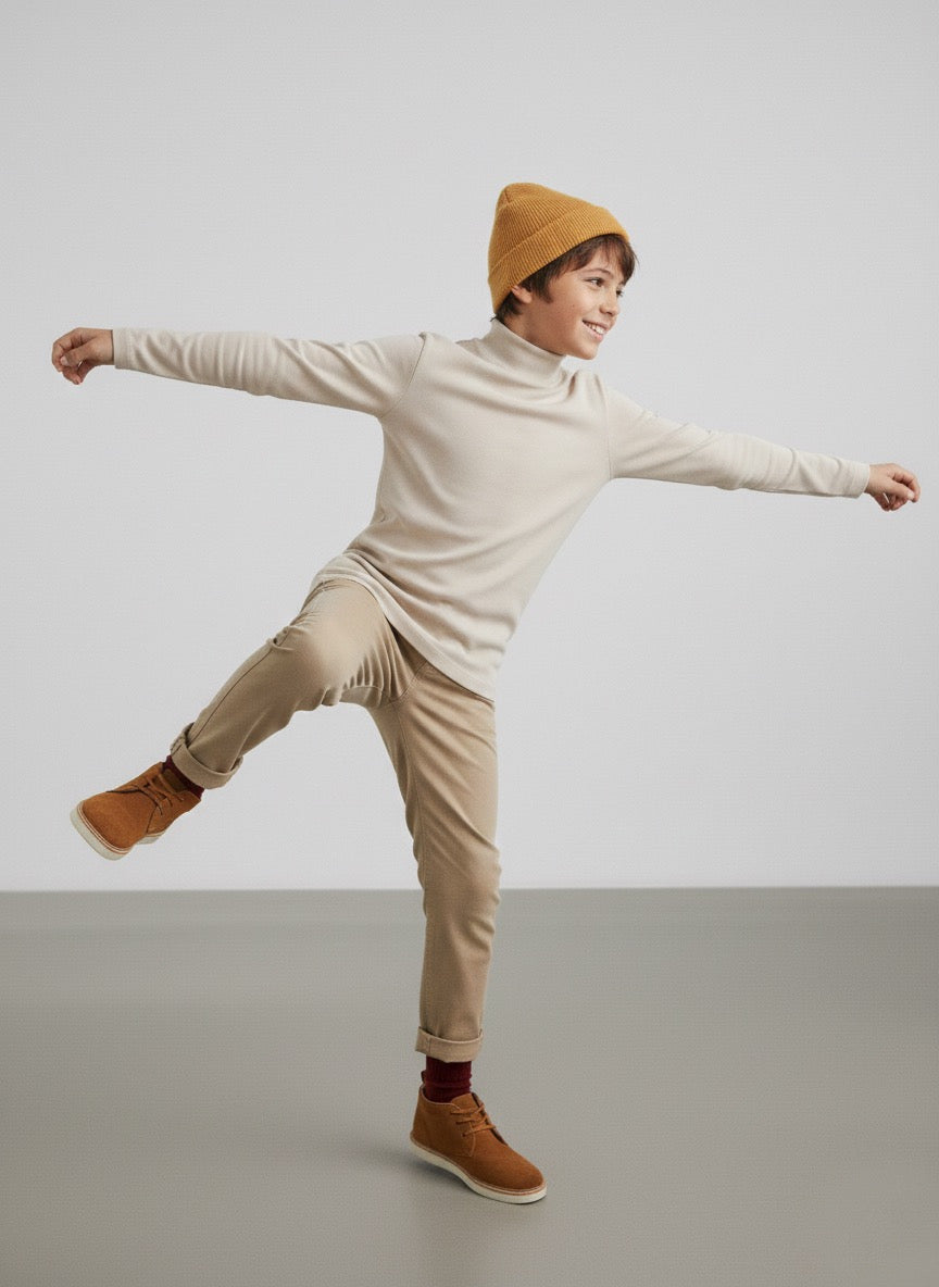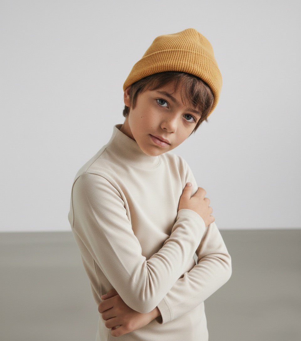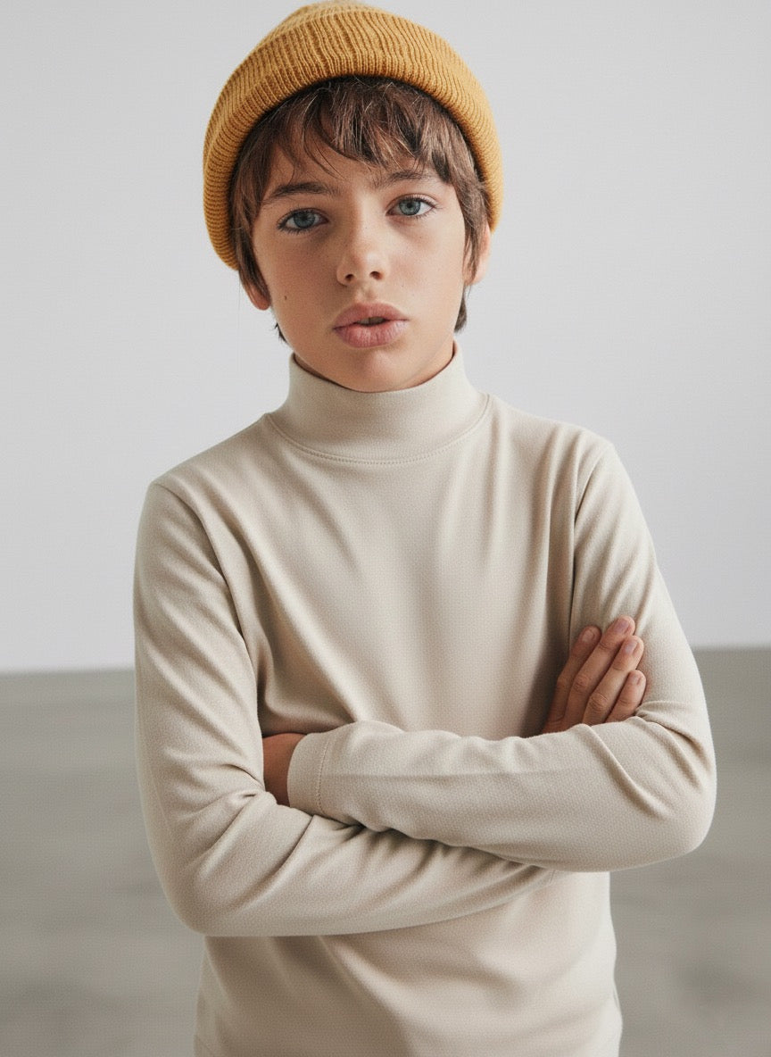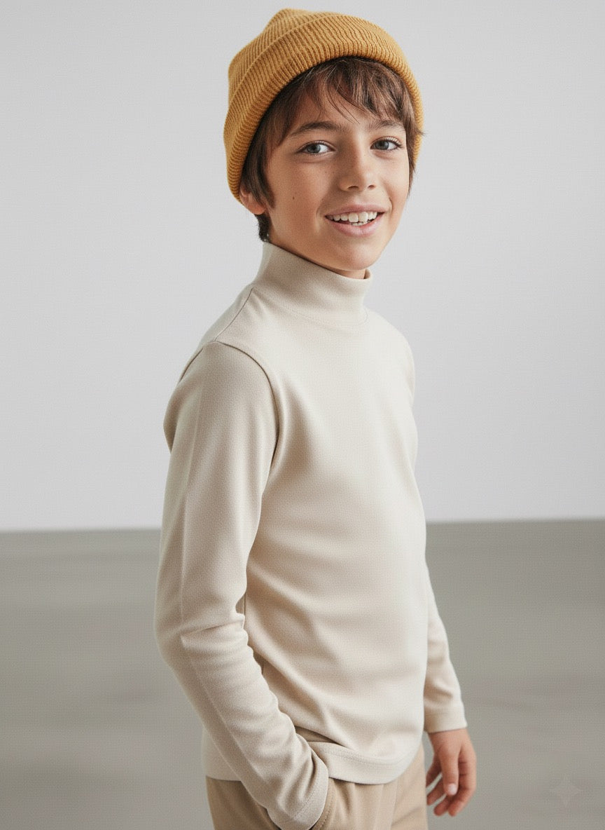 Yumuşak dokulu pamuk – likralı karışım esnek kumaşı sayesinde gün boyu rahatlık sunar. İnce ama sıcak tutan yapısı, özellikle kış ve sonbahar döneminde hem kışlık boğazlı badi hem yarım balıkçı badi ihtiyacını karşılar. Slim fit veya esnek regular fit formu ile çocukların hareket kabiliyetini kısıtlamaz.