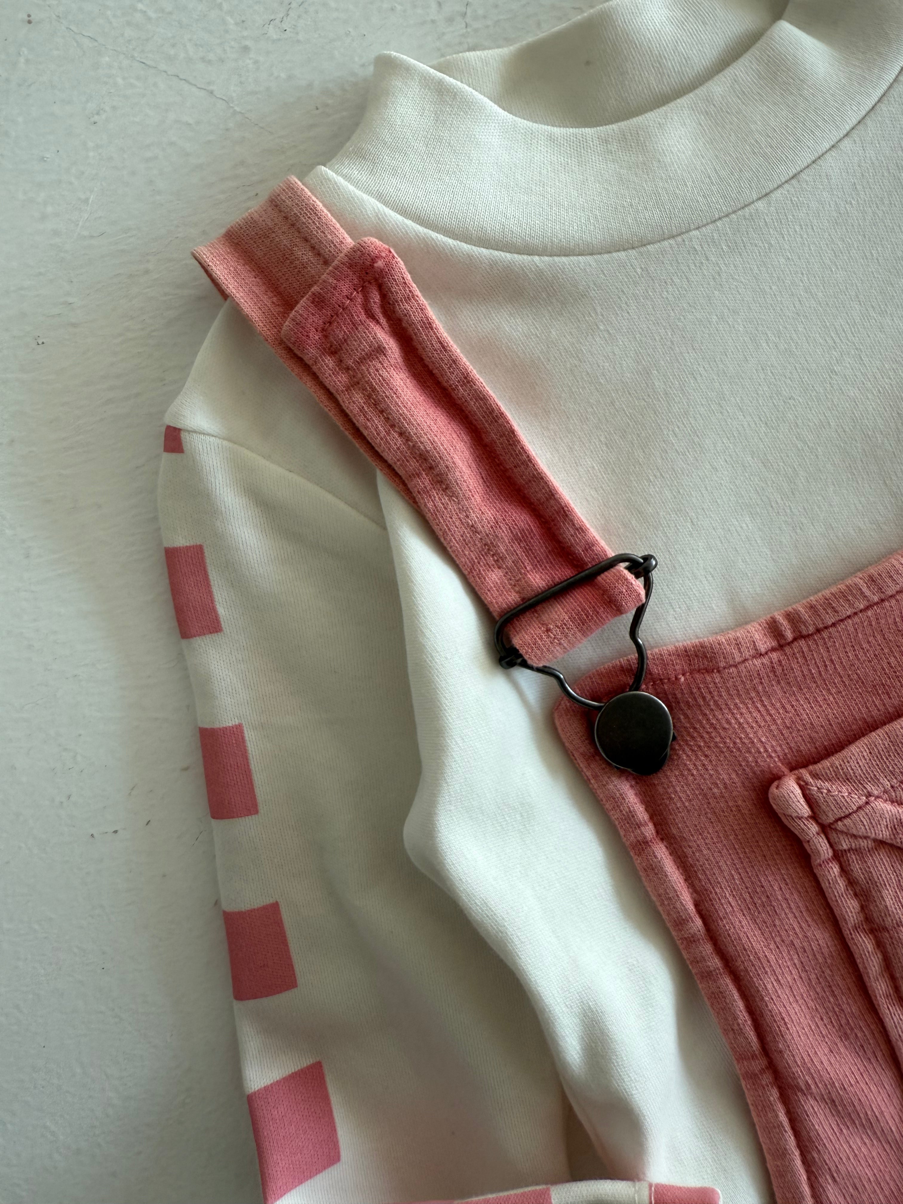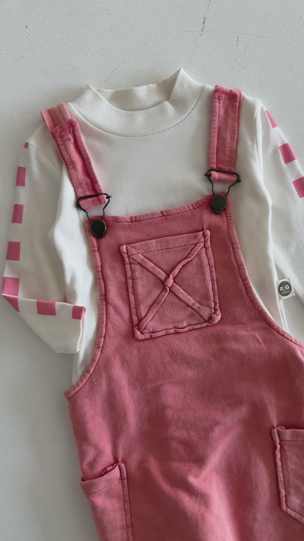 Renkler: Tulum: Pudra pembesi, Tişört: Beyaz, Kol detayları: Pembe çizgili