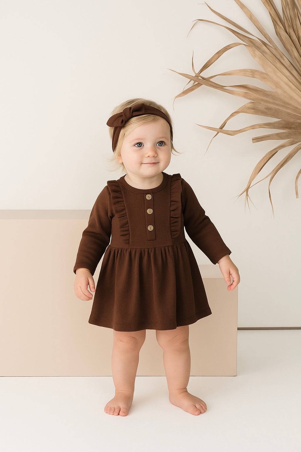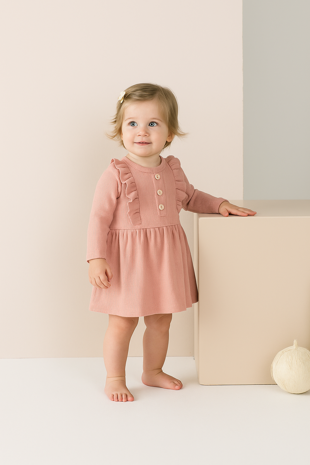 Это платье, разработанное специально для девочек в возрасте от 6-9 месяцев до 3-4 лет, стильное и удобное. Вафельная ткань из 100% хлопка защитит нежную кожу малыша, а оборки создадут очаровательный образ. Платье с длинными рукавами и повязкой на голову в тон придаст вашему малышу стильный вид даже на торжественных мероприятиях. Благодаря мягкой ткани, стильному дизайну и удобному крою ваш малыш будет чувствовать себя не только комфортно, но и стильно.