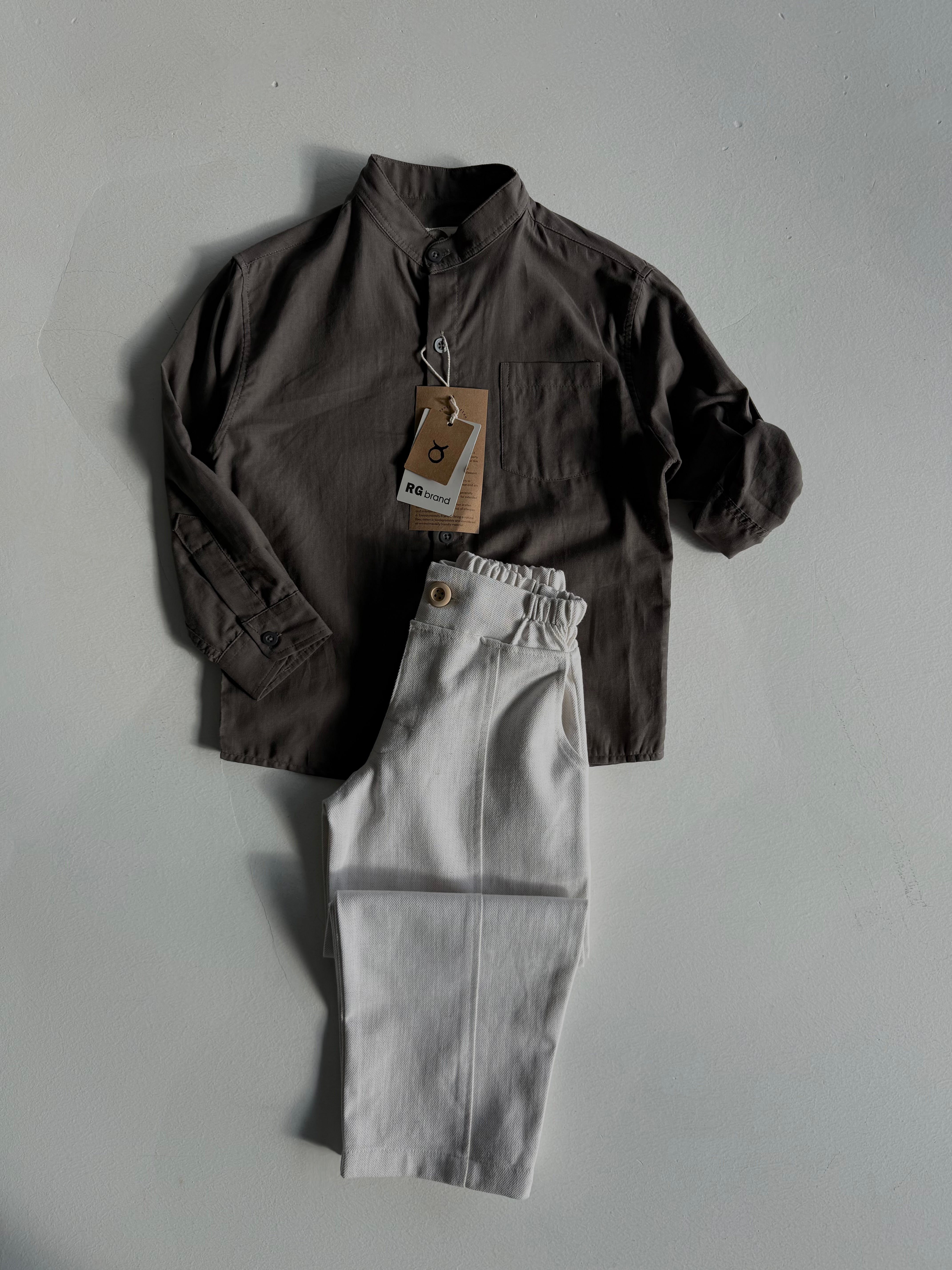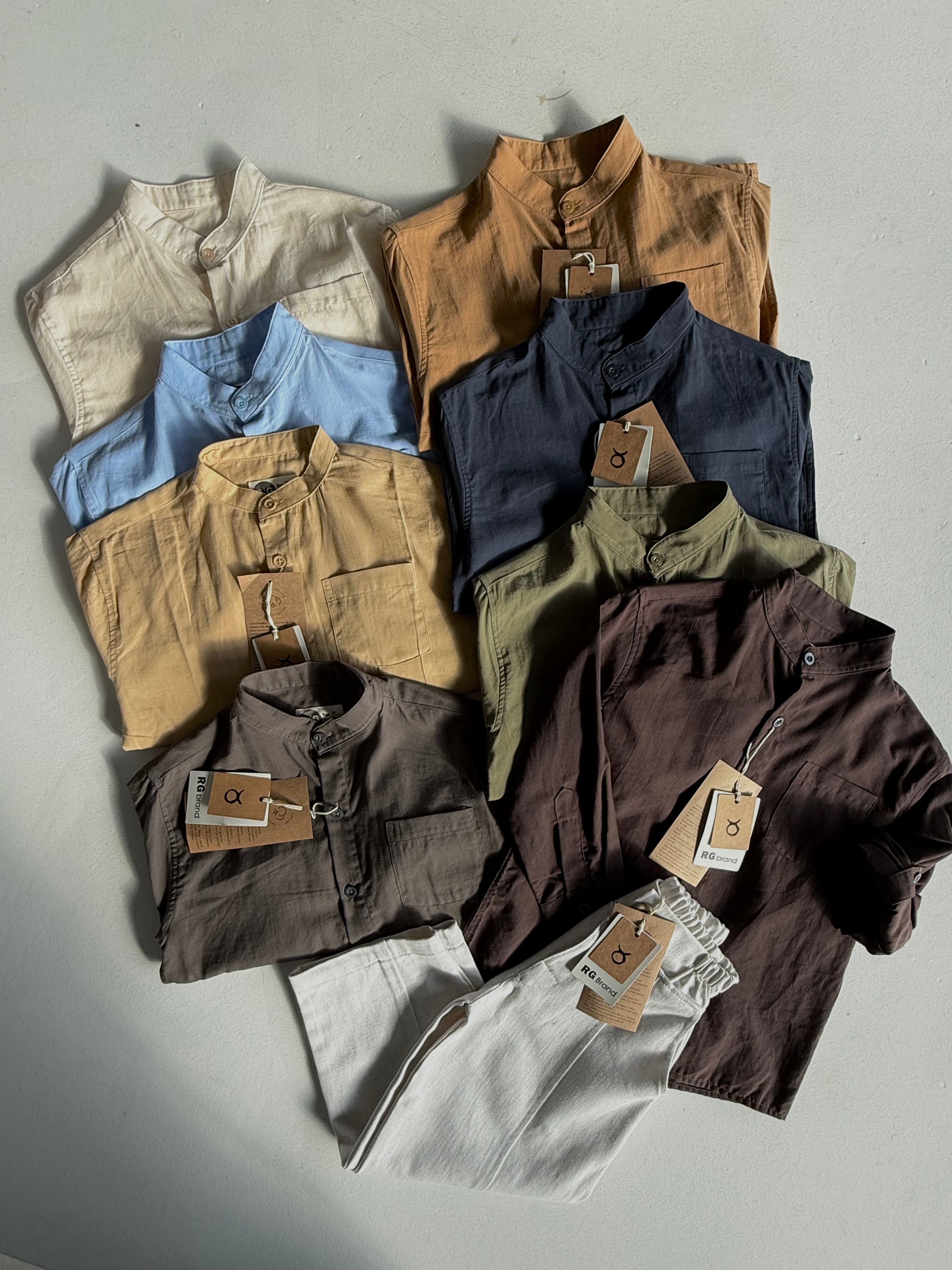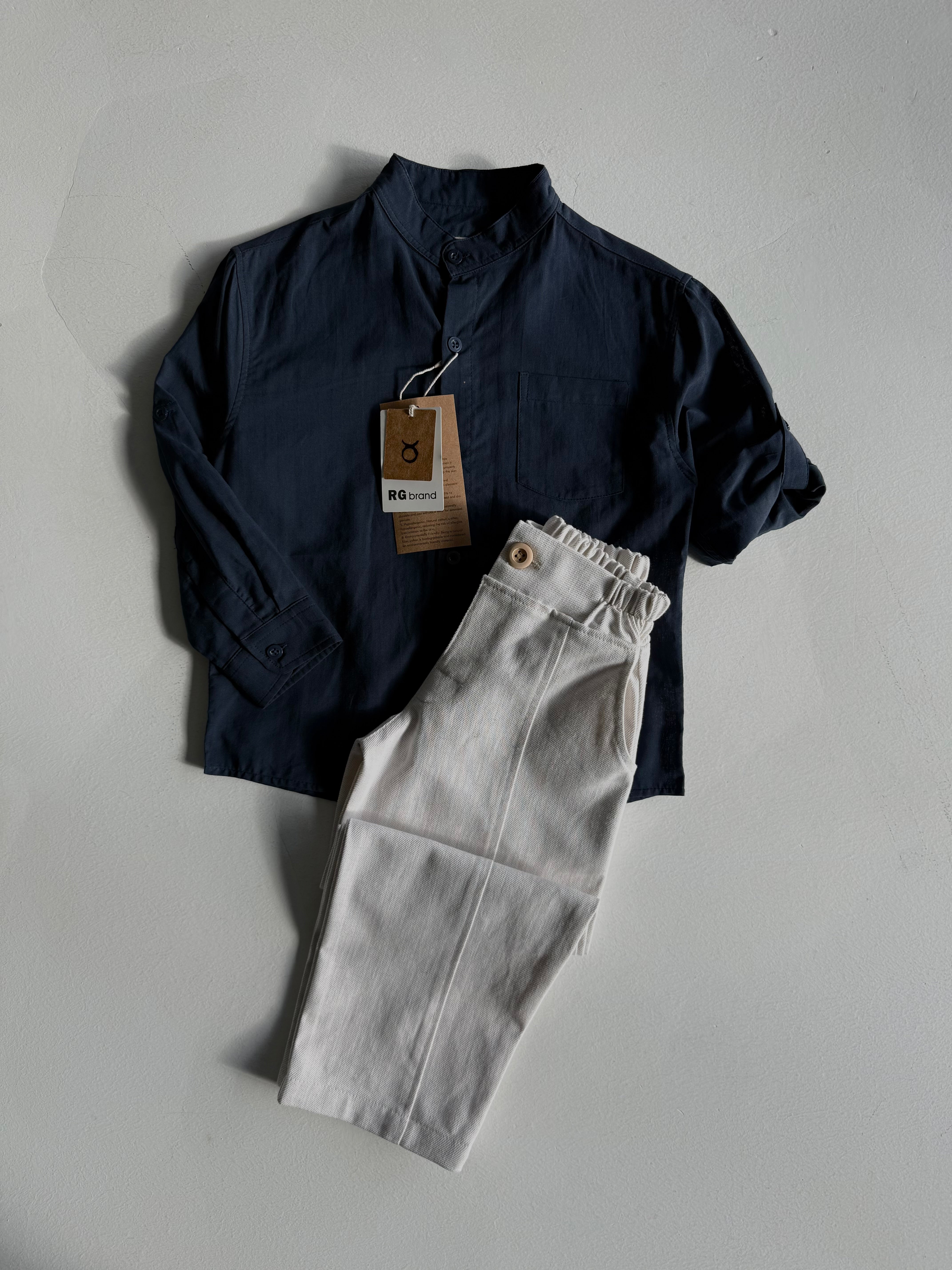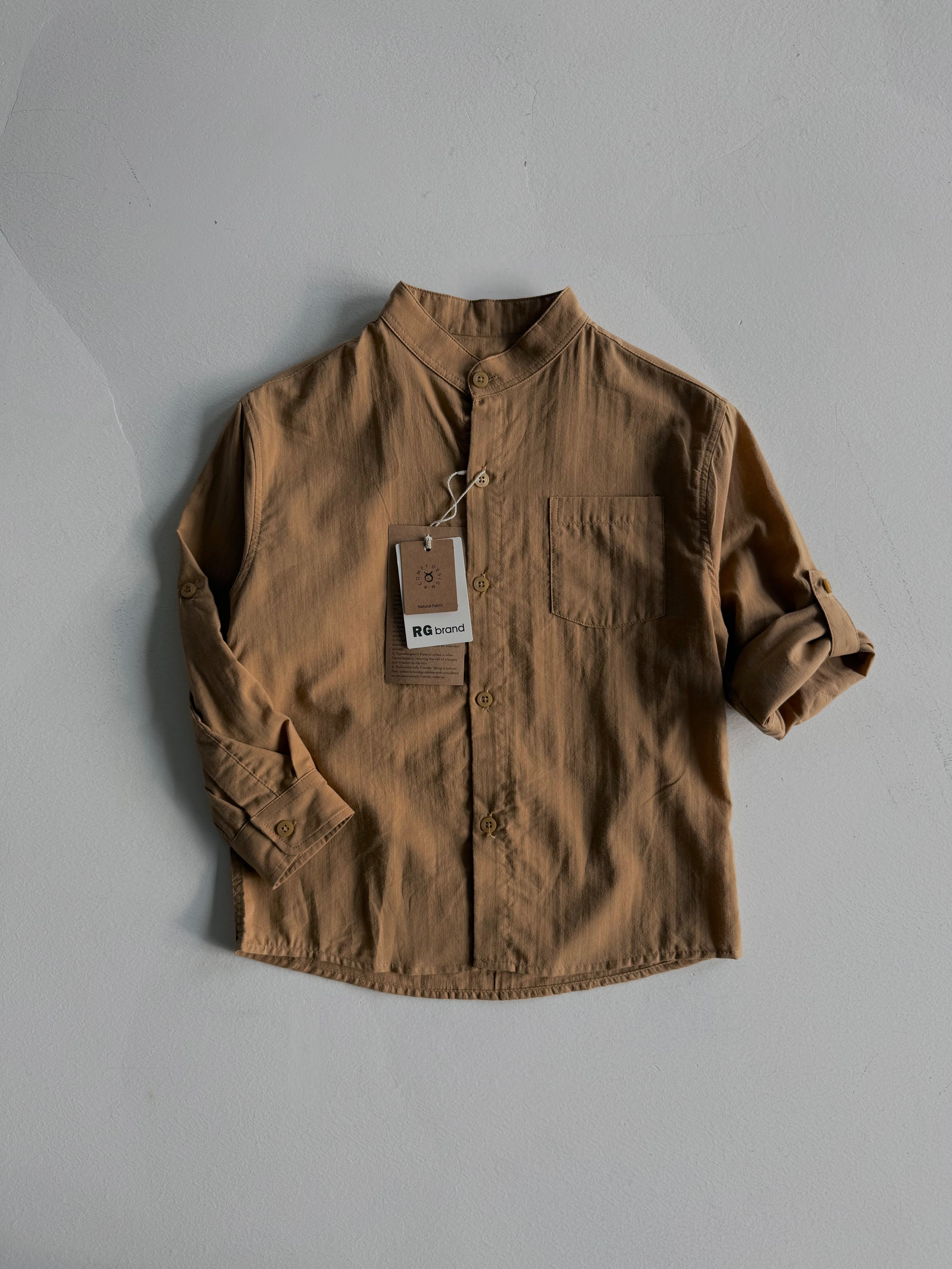Эта детская рубашка для мальчиков, отличающаяся минималистичным дизайном и воротником-стойкой, предназначена для детей от 3 до 9 лет. Изготовленная из 100% хлопка, она дышащая, мягкая и приятная на ощупь. Благодаря длинным рукавам и удобному крою, она станет комфортным вариантом как для повседневной носки, так и для особых случаев.