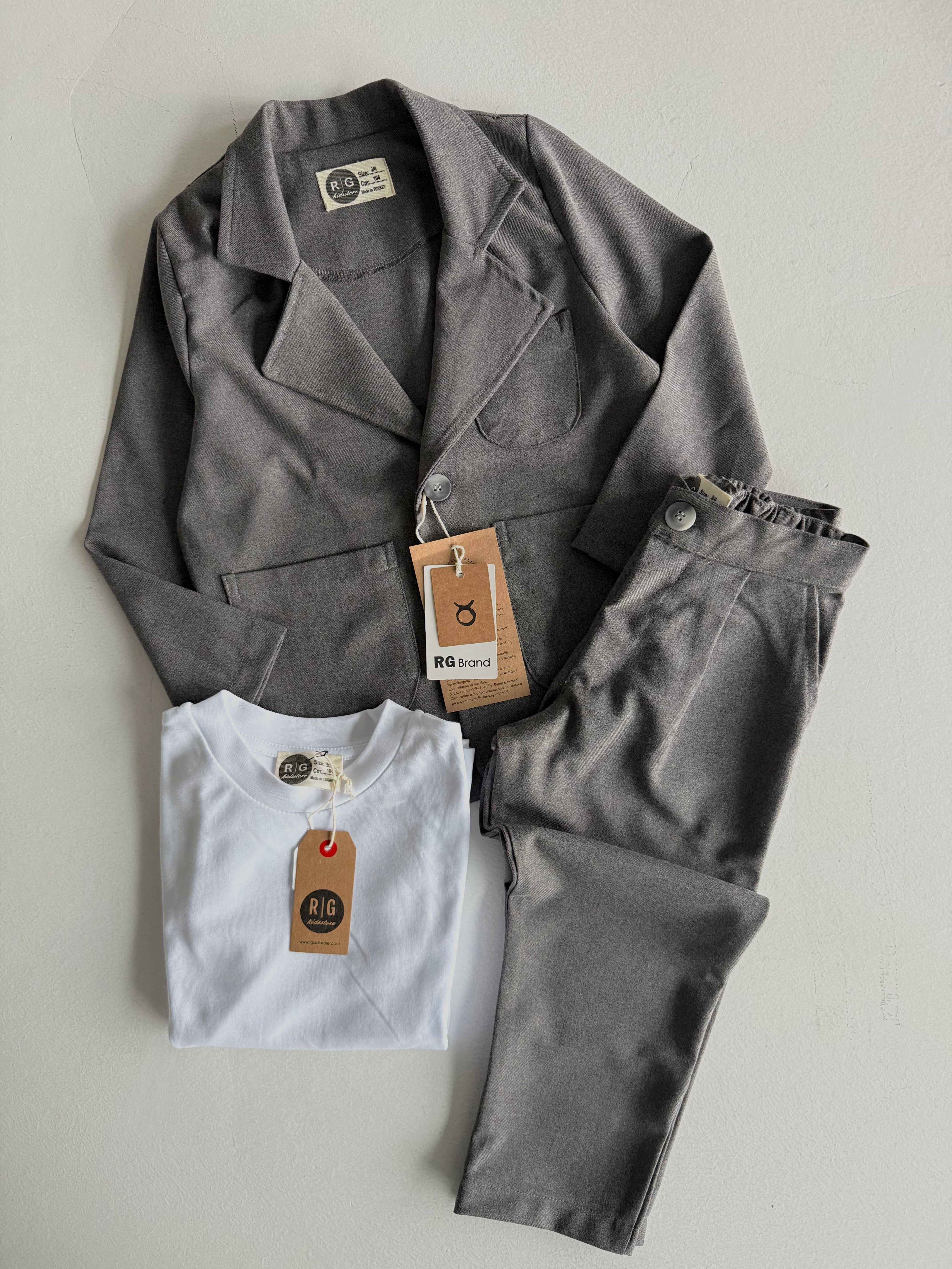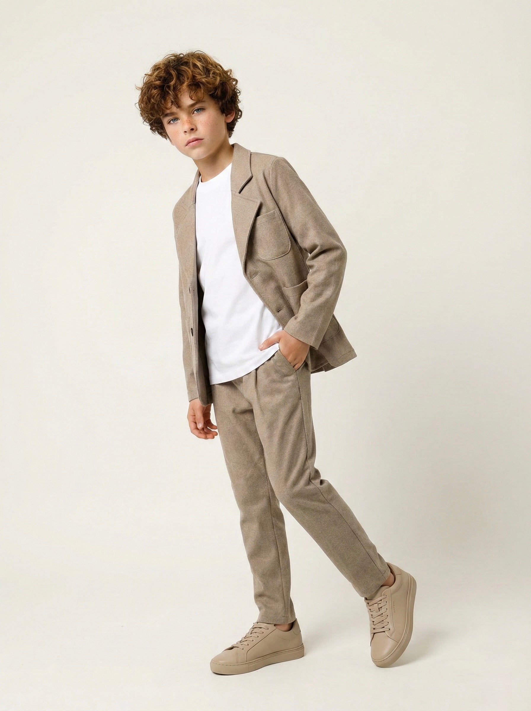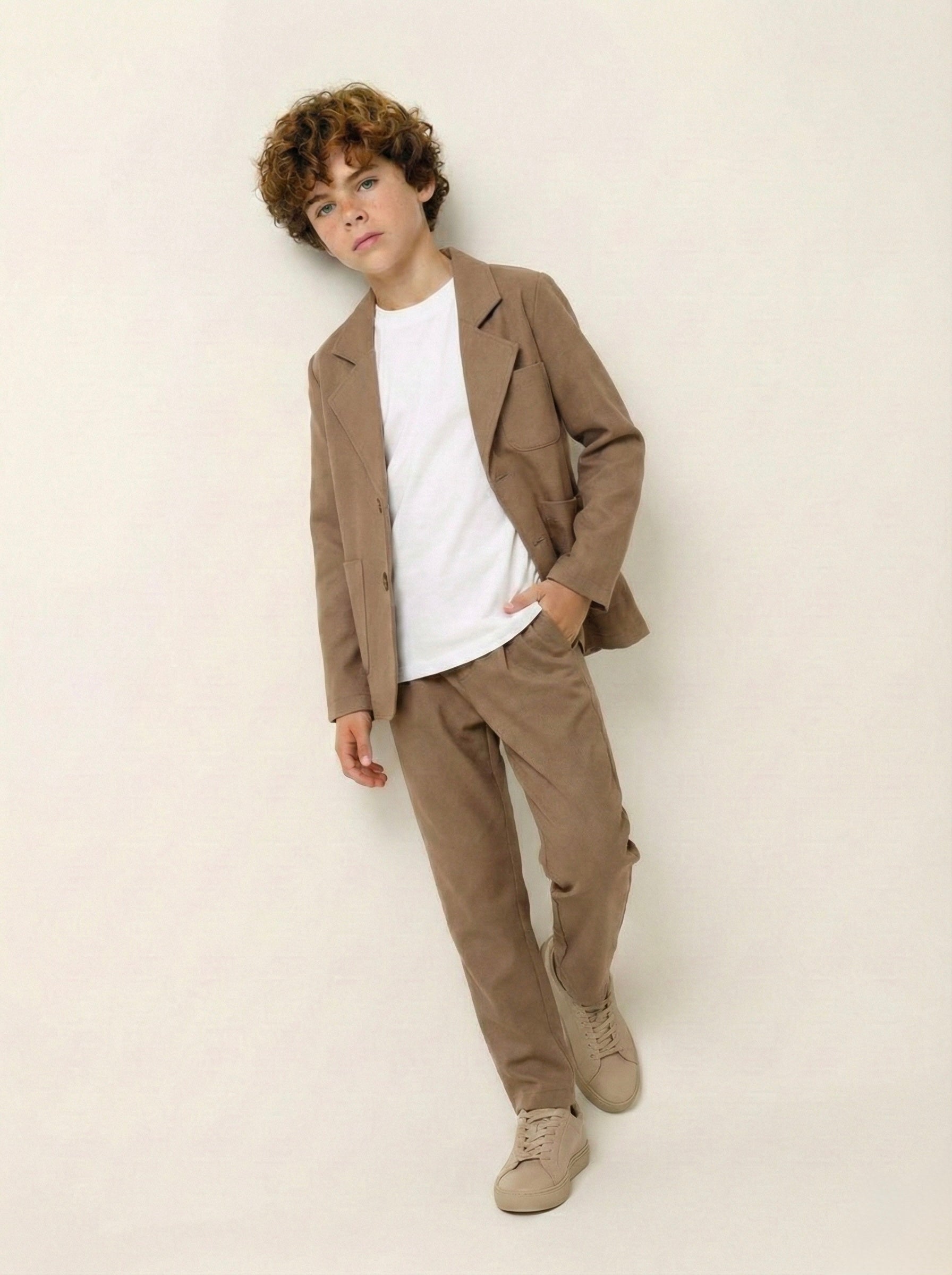 Этот детский костюм-тройка для мальчиков от 3 до 9 лет включает в себя пиджак, футболку и брюки. Изготовленный из вискозно-хлопковой ткани, он сочетает в себе стиль и комфорт для особых случаев. Закажите прямо сейчас!