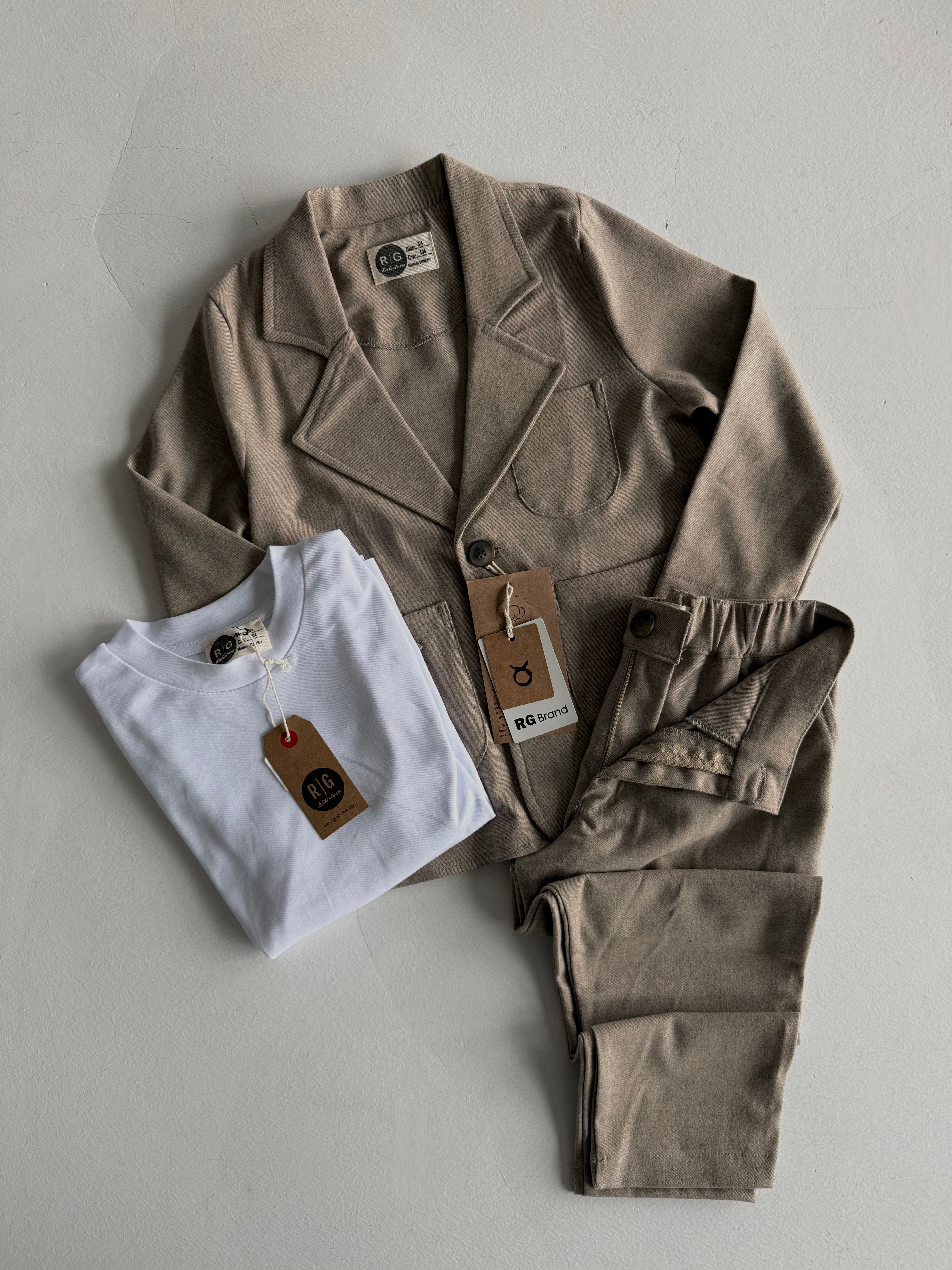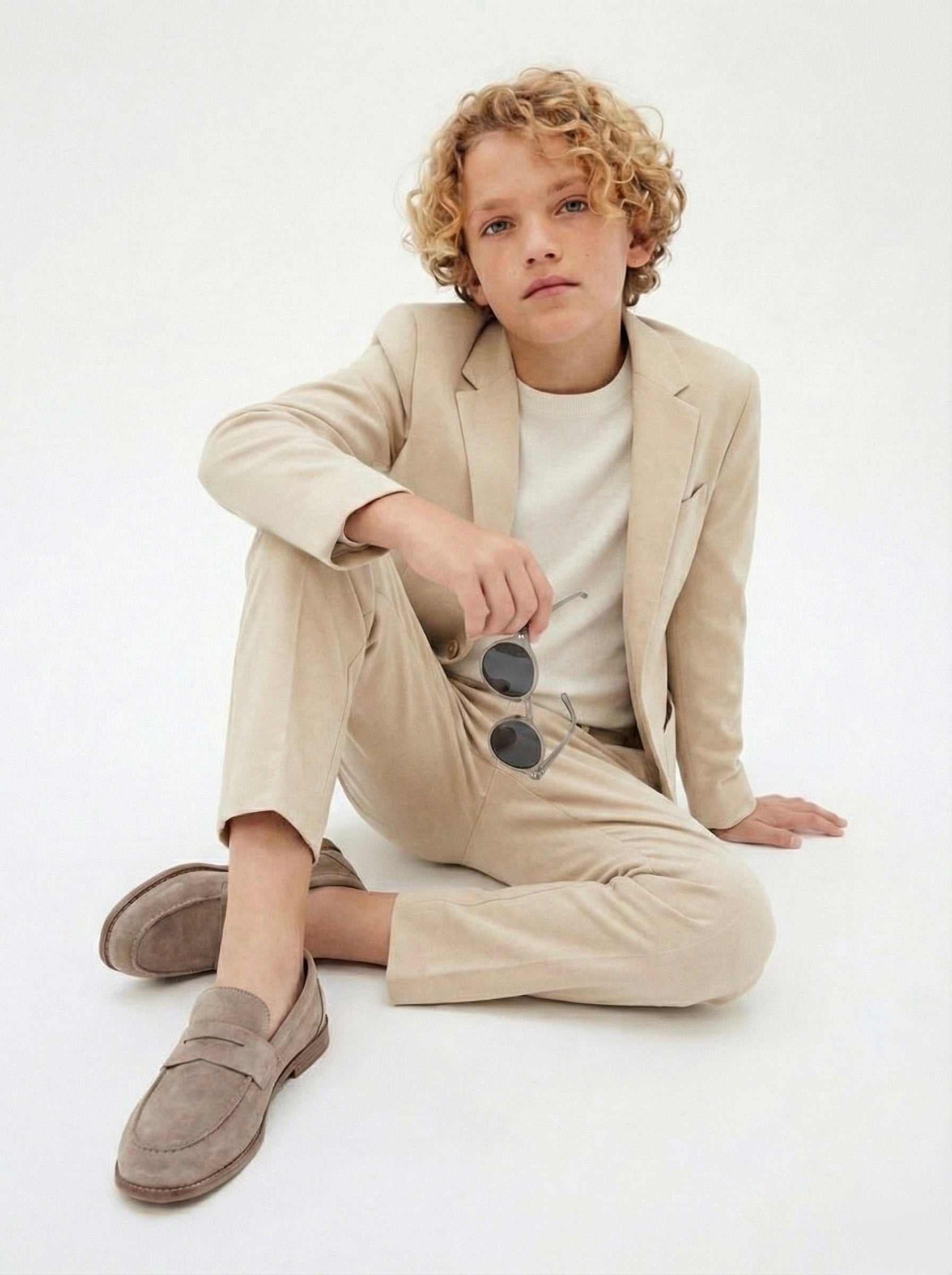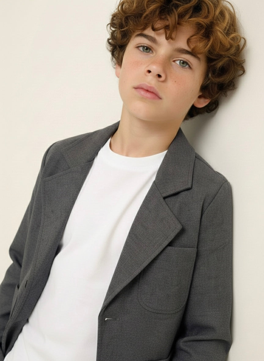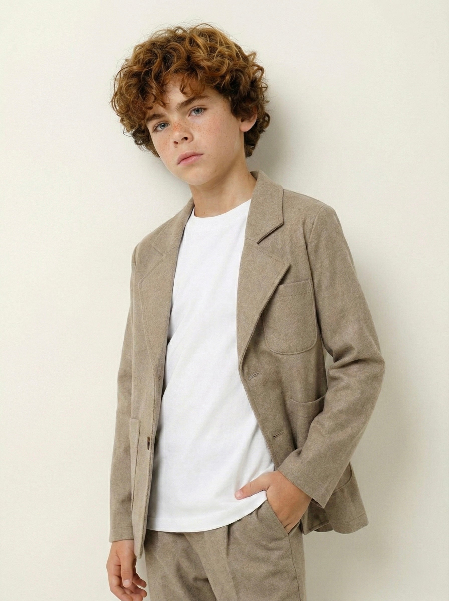 Этот детский костюм-тройка для мальчиков от 3 до 9 лет включает в себя пиджак, футболку и брюки. Изготовленный из вискозно-хлопковой ткани, он сочетает в себе стиль и комфорт для особых случаев. Закажите прямо сейчас!